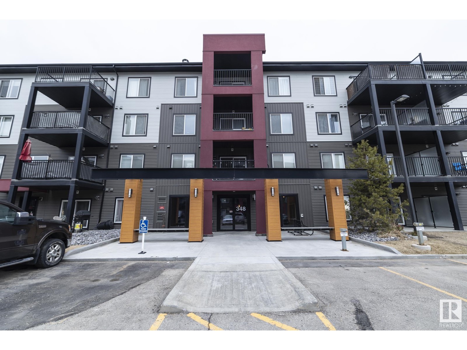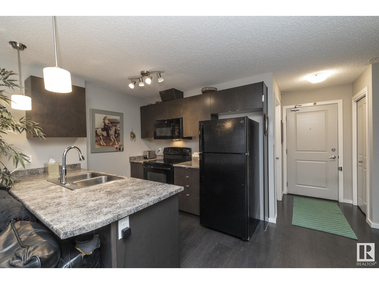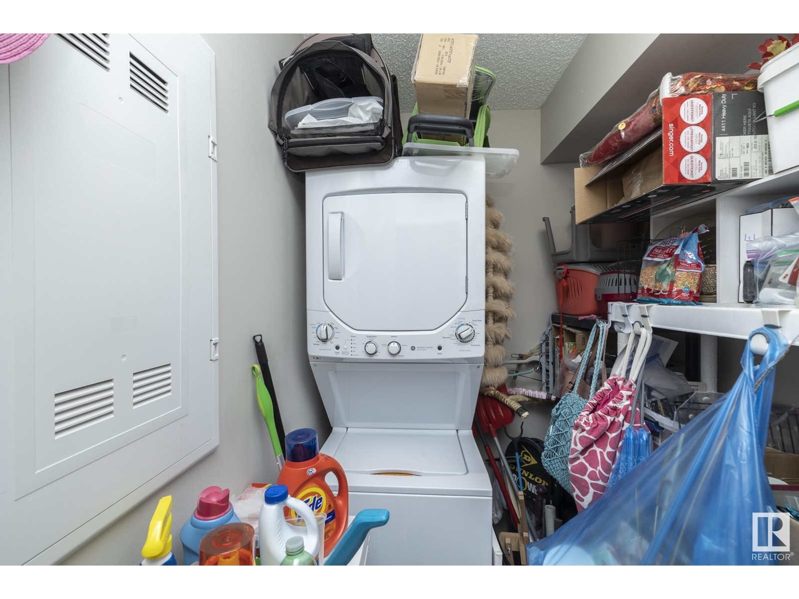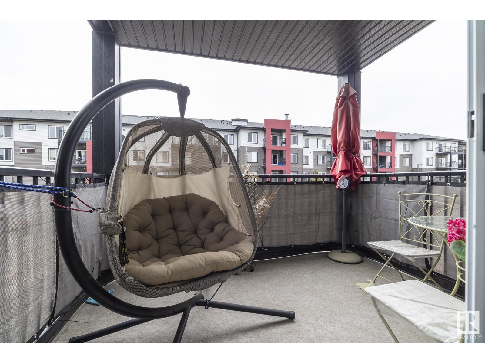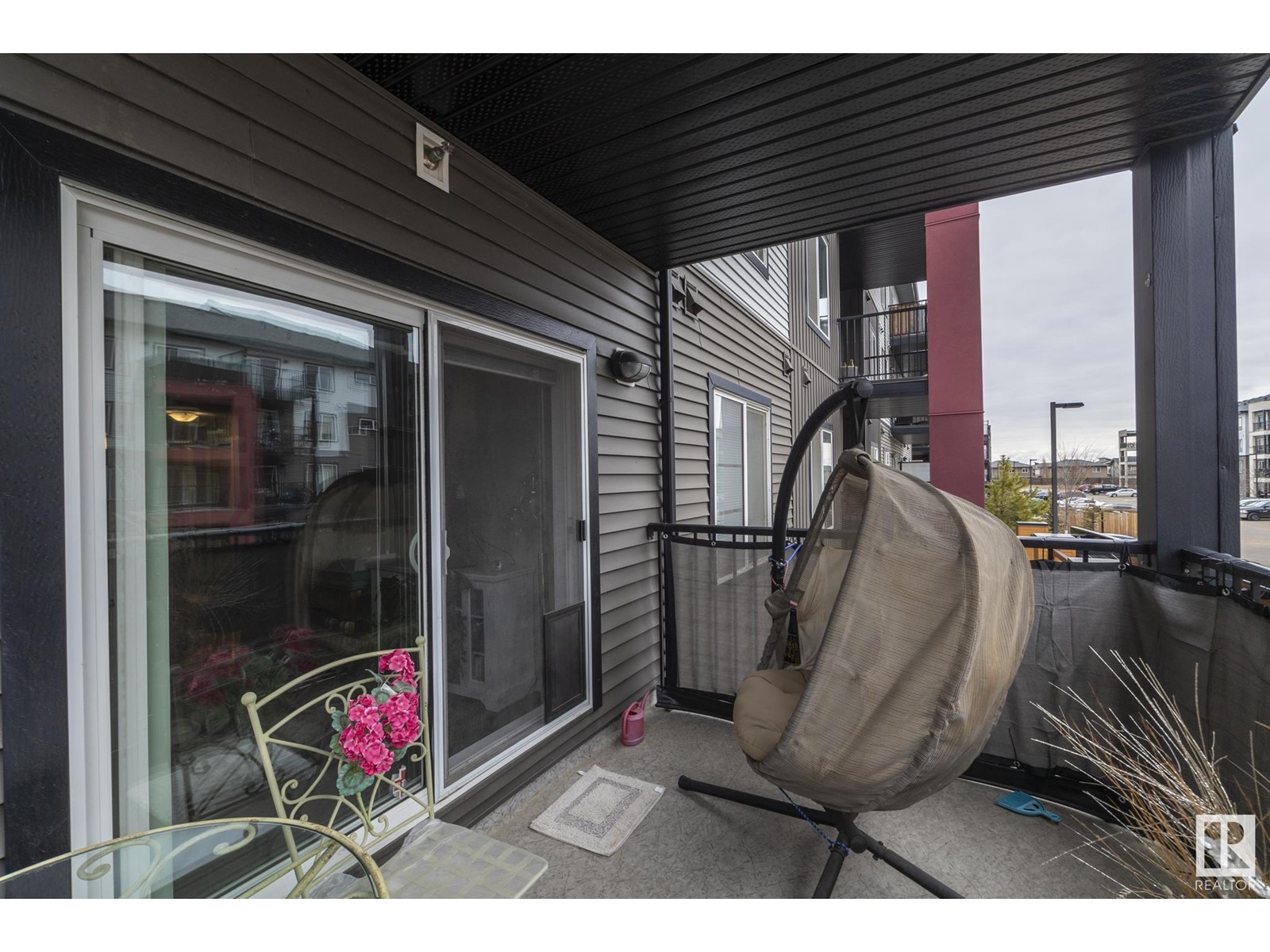 Spacious WINDERMERE 1 bedroom in the Elements at Windermere. Newer, pet friendly, and easy to care for. This 2nd floor unit faces east and has a big private balcony to enjoy the sun. Open concept living space includes, a well appointed kitchen with lots of counter space and storage. The large master bedroom hosts a 4 piece ensuite bath and a walk in closet. The living room is open to the kitchen and looks out on to the deck. The large storage room has new stacking washer and dryer and ample room for large items. This home is in like new condition with reinforced water hoses throughout, Hunter Douglas Blinds, as well as many more great updates. The clean modern foyer is very inviting. This condo has fees under 280.00. Parking stall is within view of the unit. Walking distance to shopping and entertainment. (id:22211)