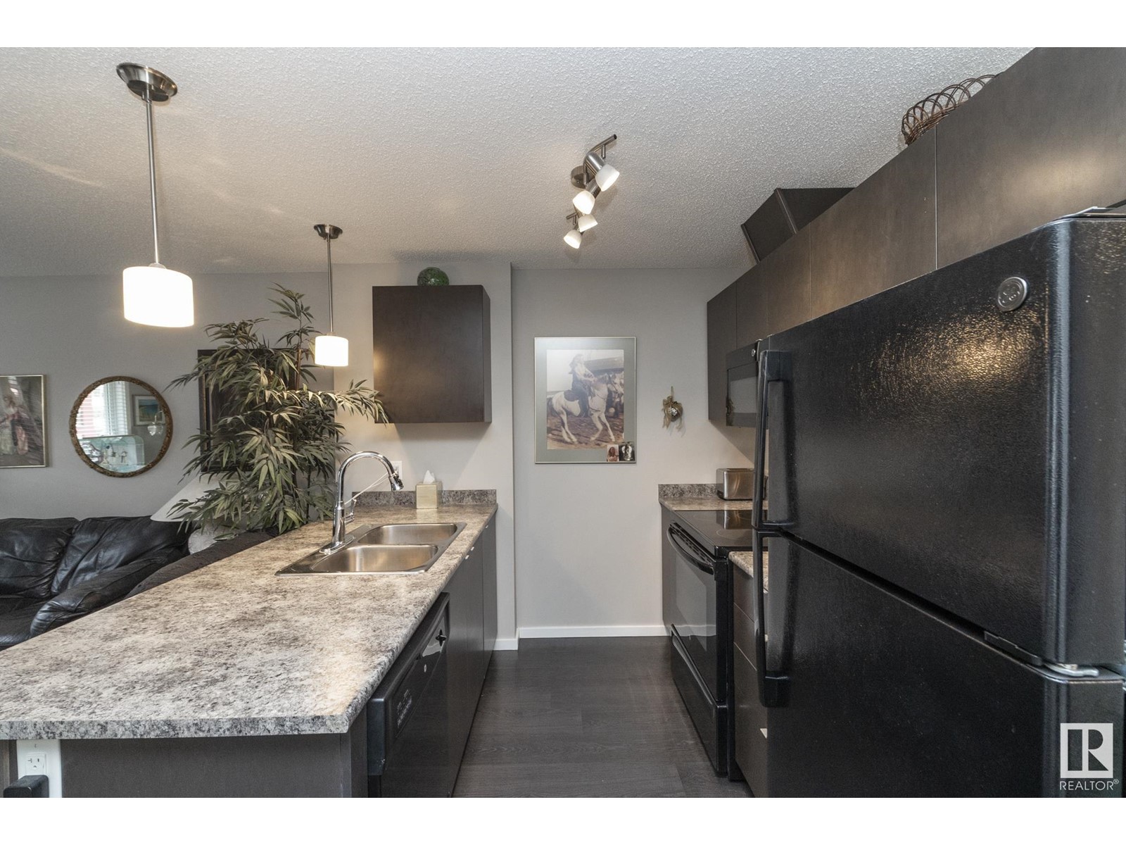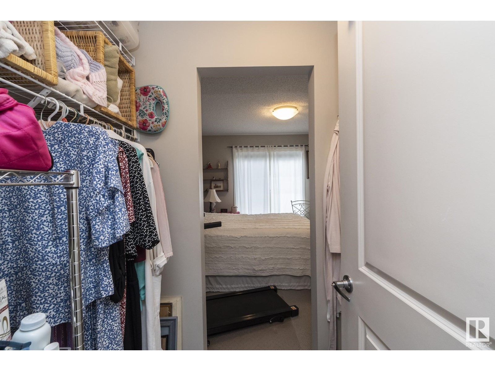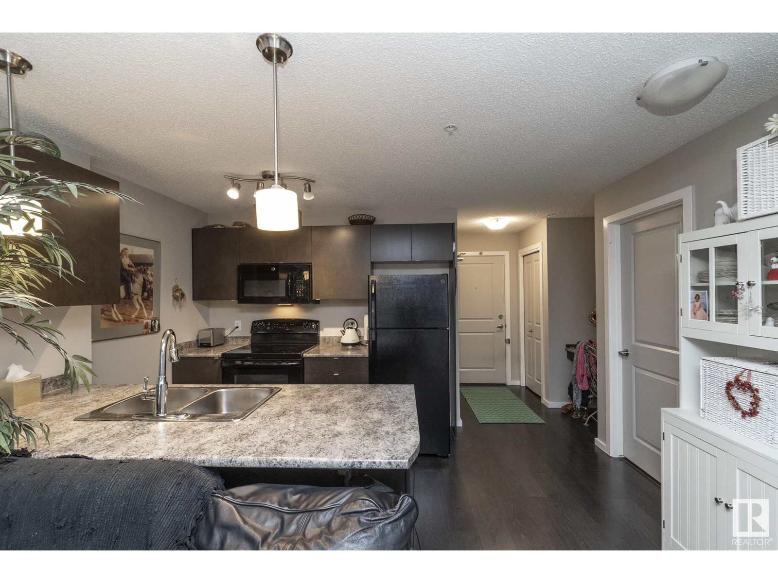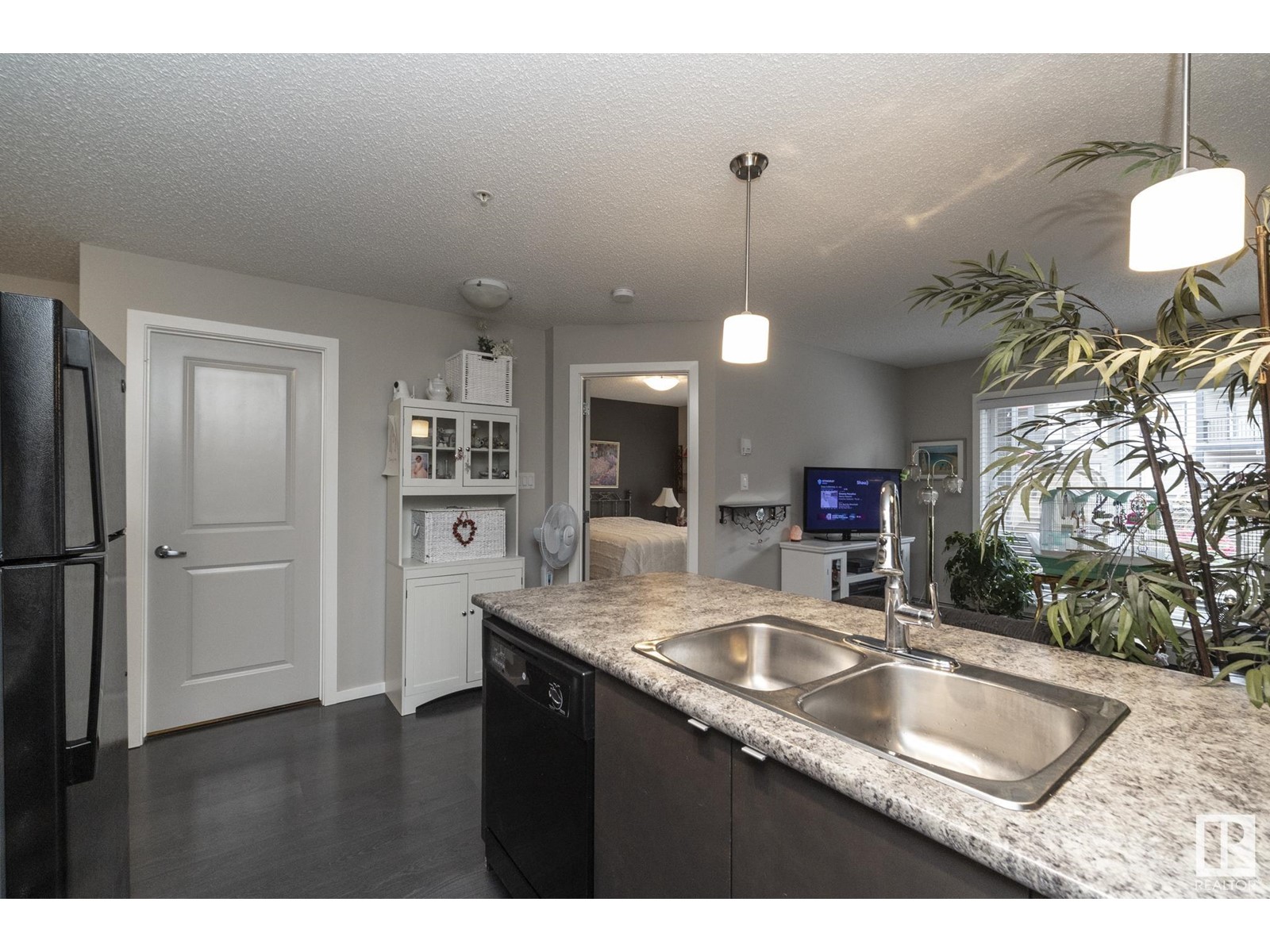 Spacious WINDERMERE 1 bedroom in the Elements at Windermere. Newer, pet friendly, and easy to care for. This 2nd floor unit faces east and has a big private balcony to enjoy the sun. Open concept living space includes, a well appointed kitchen with lots of counter space and storage. The large master bedroom hosts a 4 piece ensuite bath and a walk in closet. The living room is open to the kitchen and looks out on to the deck. The large storage room has new stacking washer and dryer and ample room for large items. This home is in like new condition with reinforced water hoses throughout, Hunter Douglas Blinds, as well as many more great updates. The clean modern foyer is very inviting. This condo has fees under 280.00. Parking stall is within view of the unit. Walking distance to shopping and entertainment. (id:22211)
