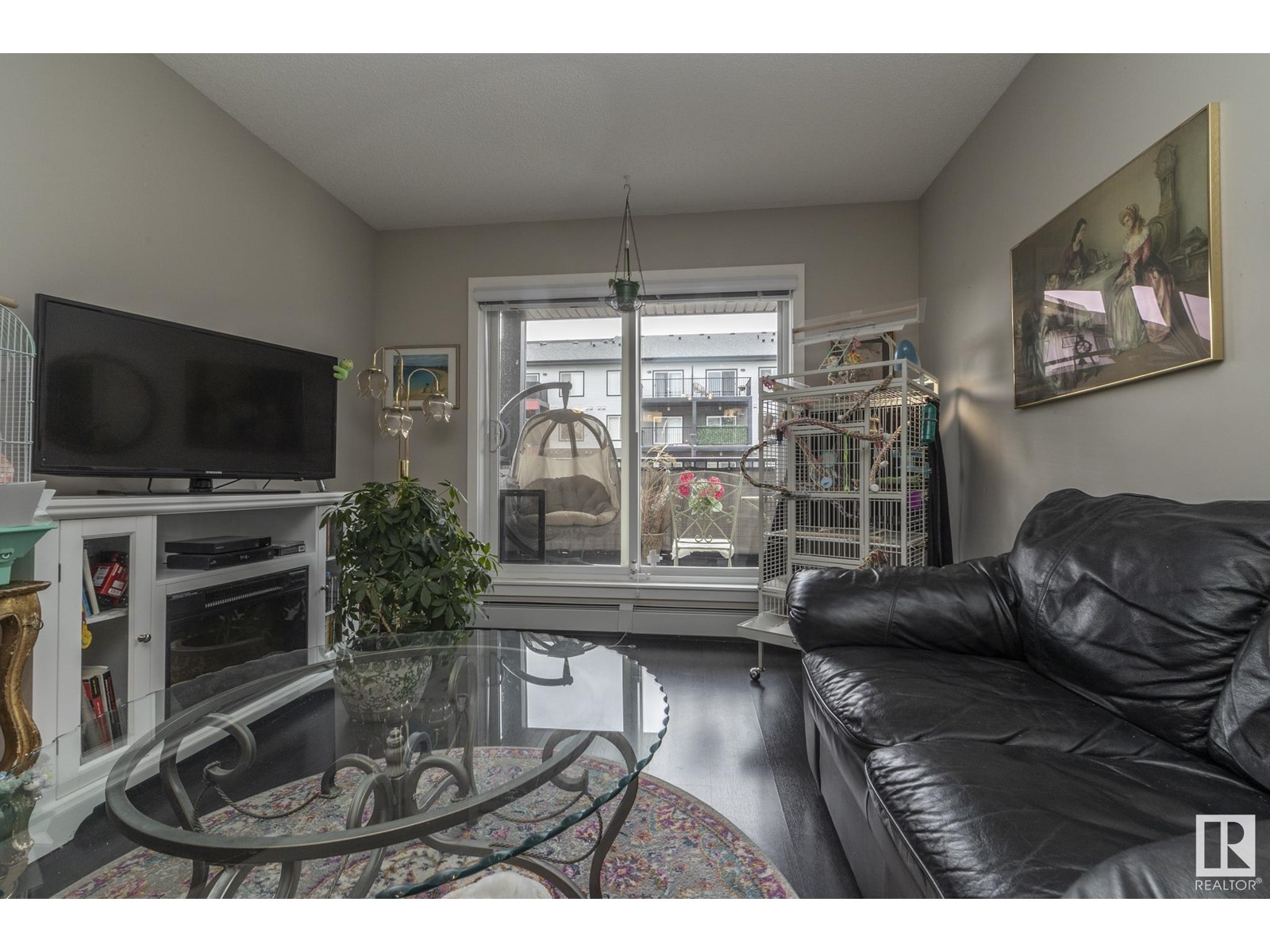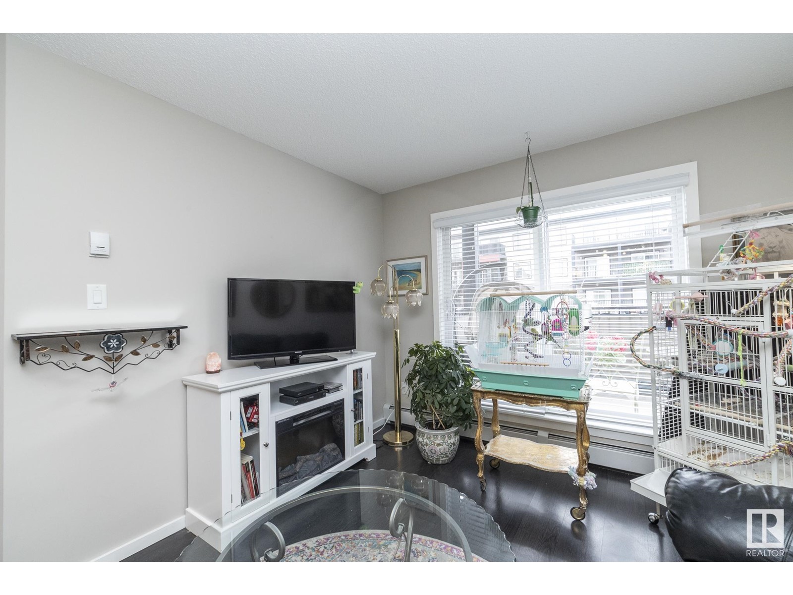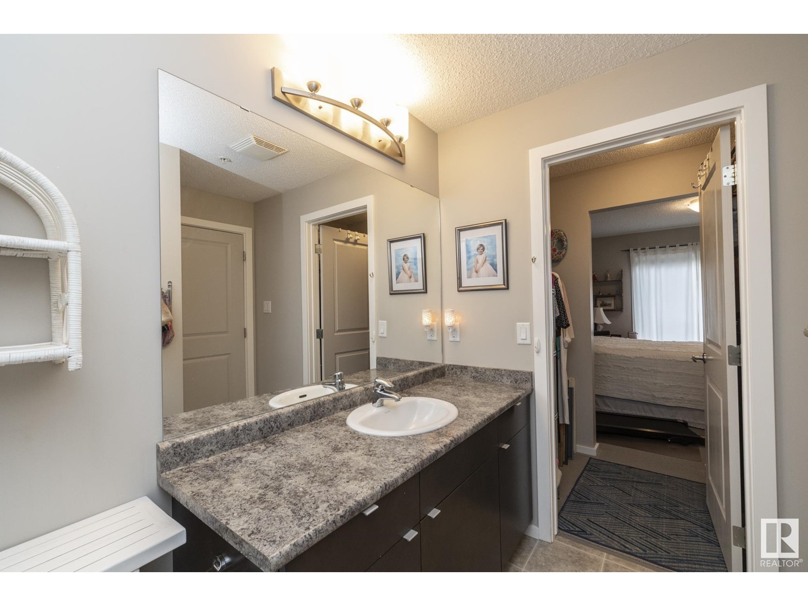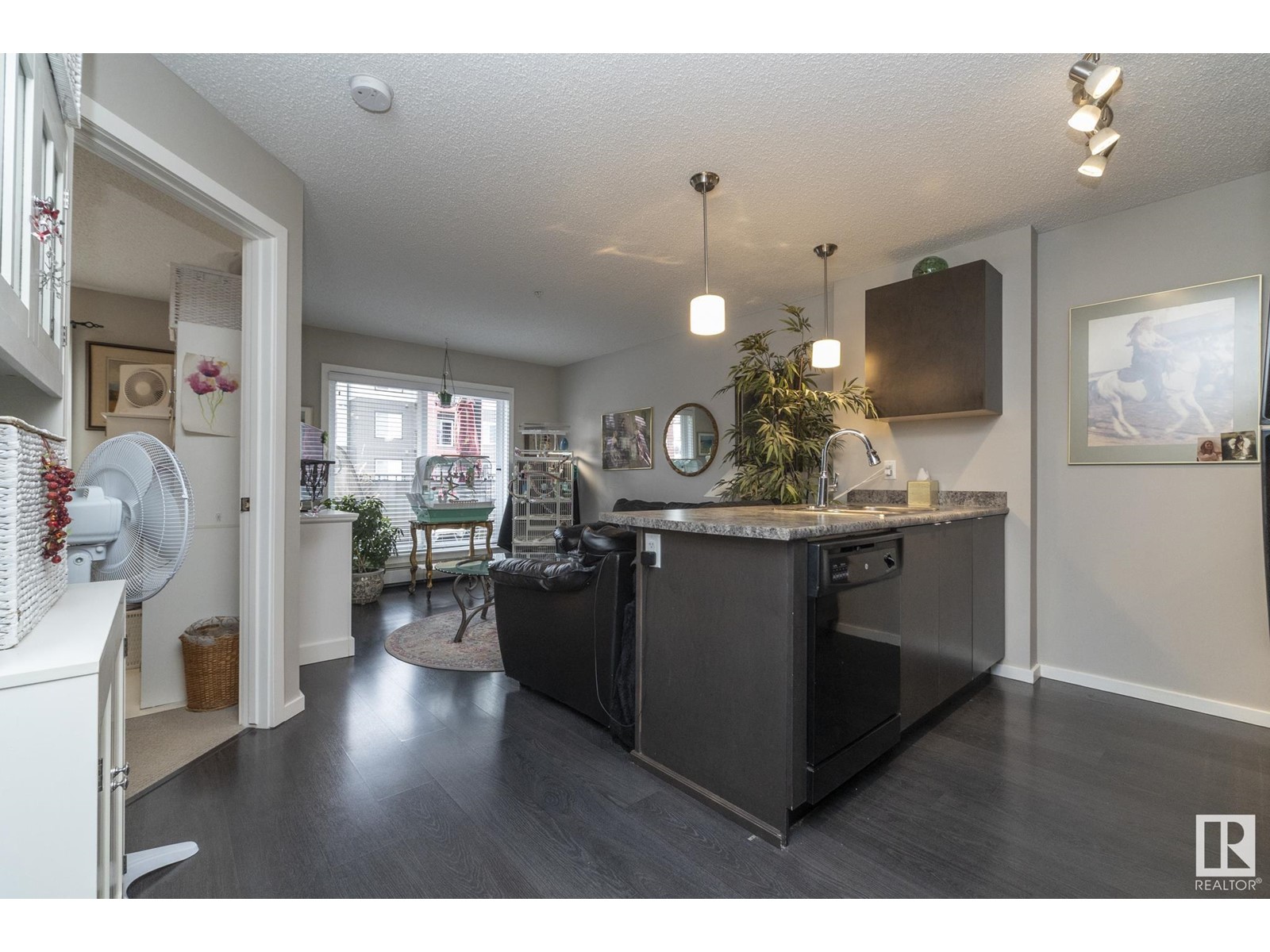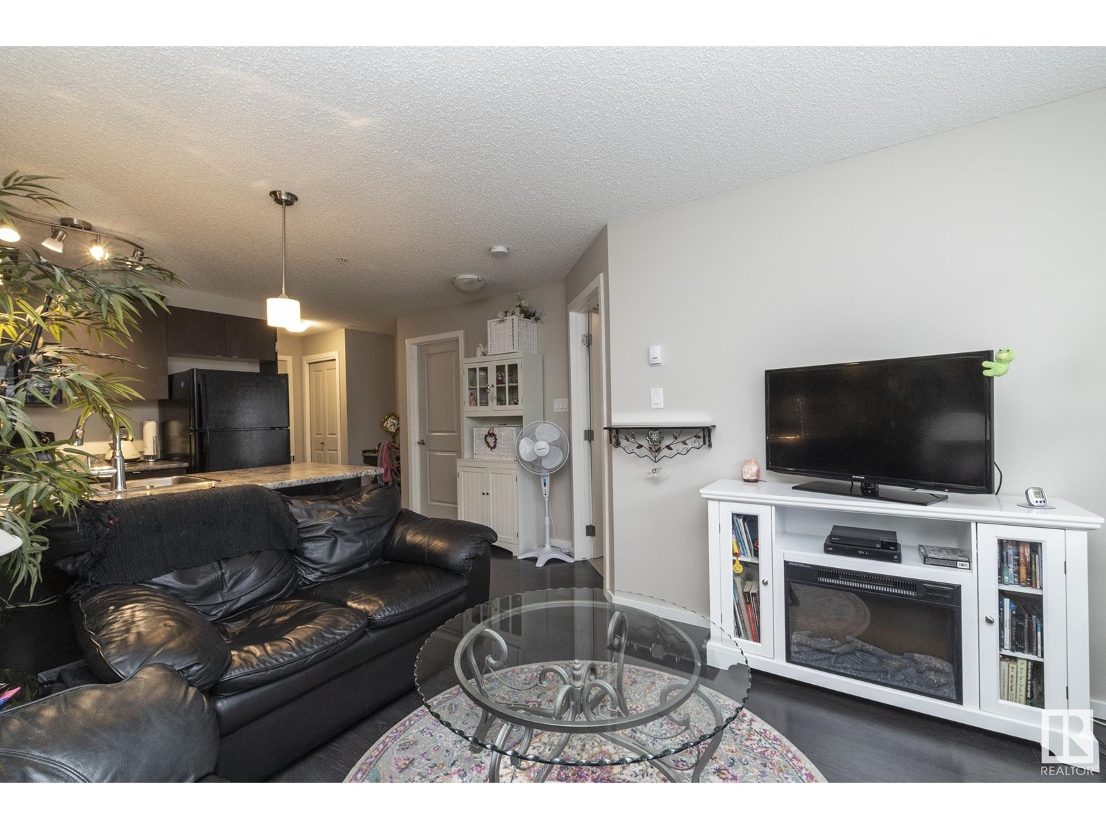 Spacious WINDERMERE 1 bedroom in the Elements at Windermere. Newer, pet friendly, and easy to care for. This 2nd floor unit faces east and has a big private balcony to enjoy the sun. Open concept living space includes, a well appointed kitchen with lots of counter space and storage. The large master bedroom hosts a 4 piece ensuite bath and a walk in closet. The living room is open to the kitchen and looks out on to the deck. The large storage room has new stacking washer and dryer and ample room for large items. This home is in like new condition with reinforced water hoses throughout, Hunter Douglas Blinds, as well as many more great updates. The clean modern foyer is very inviting. This condo has fees under 280.00. Parking stall is within view of the unit. Walking distance to shopping and entertainment. (id:22211)