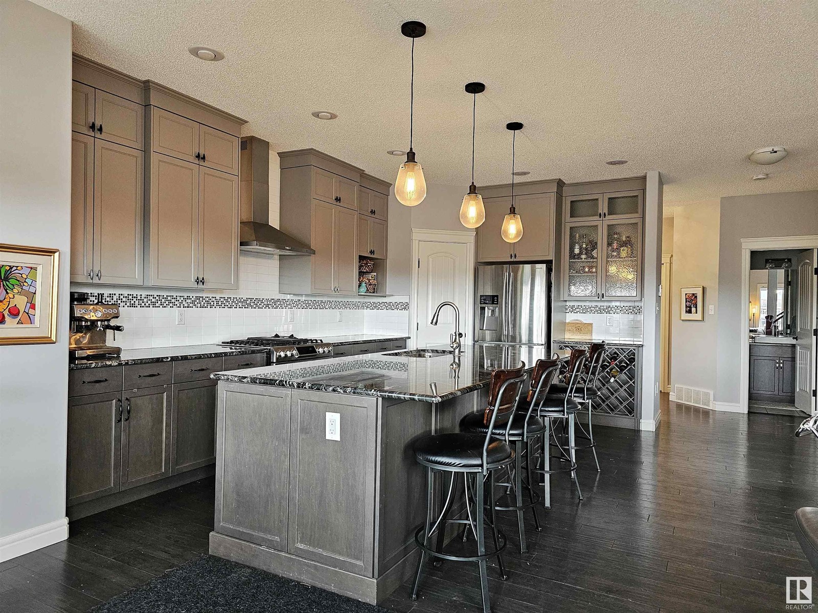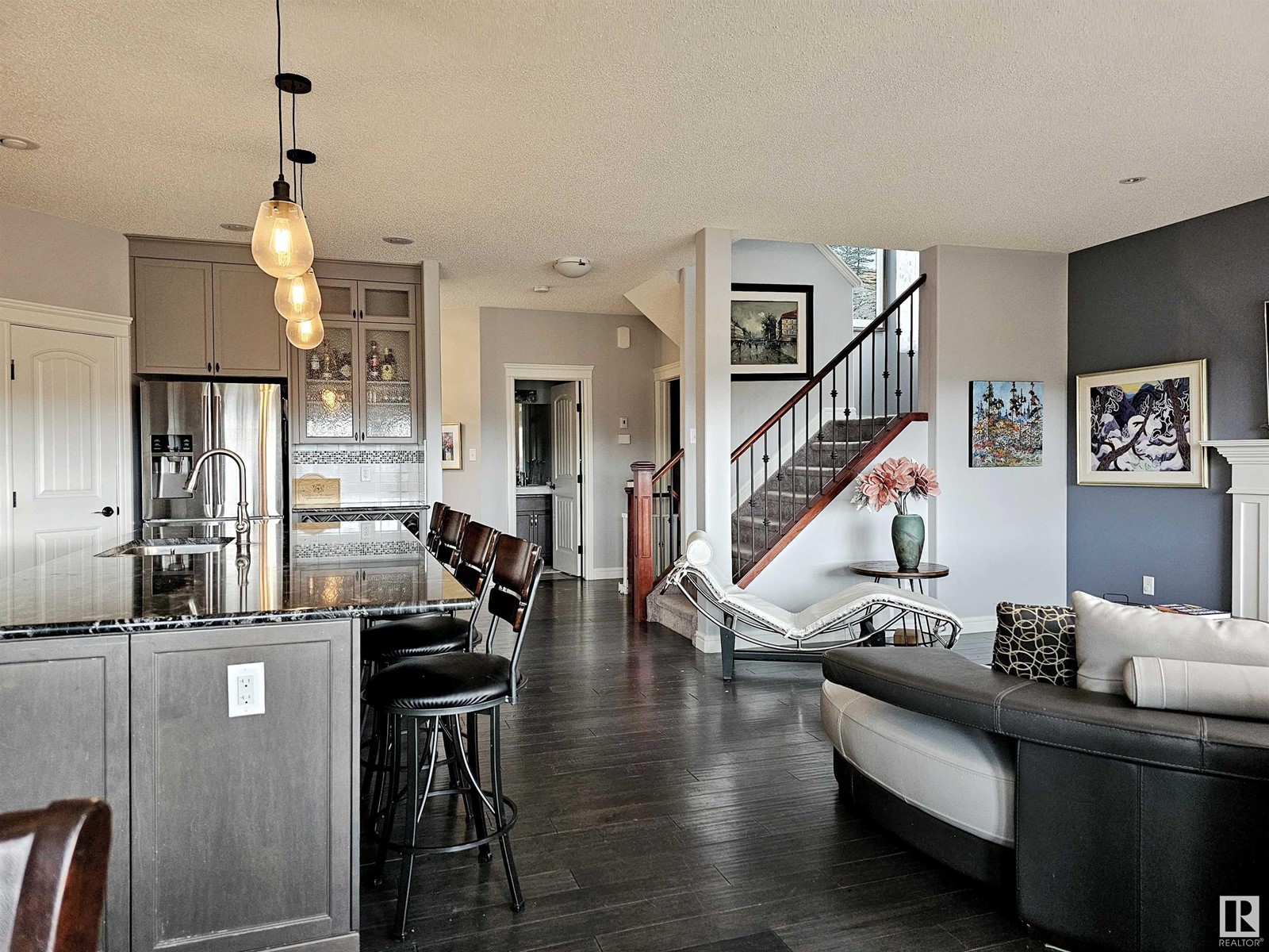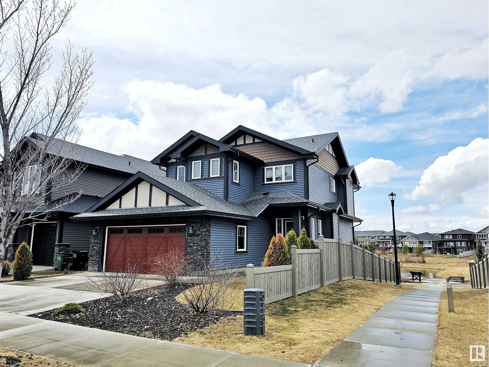 Sophisticated 3 bedroom/3 bathroom (with bonus room) WALKOUT two-story BACKING THE POND and SIDING THE WALKING TRAIL in the heart of the highly desirable central neighborhood of Griesbach. Spacious 2,014+ sq ft floor plan boasts an abundance of natural light and is gorgeously appointed with handscraped espresso hardwood flooring and crisp neutral paint tones throughout. Expanded sun-swept front foyer welcomes you upon approach and gives way to expansive oversized custom DREAM KITCHEN appointed with full height dual tone shaker cabinetry, walk-in pantry, S/S appliances, and extended granite island that overlooks impressive dining and living room space. Patio doors just off to the side leads to second story patio space offering dreamy views of waterfront and yard. Upstairs includes VAULTED BONUS ROOM, 4 pc bath, and three generous bedrooms including impressive primary w/ 5 pc ensuite and walk-in closet. Add'l amenities include A/C, mudroom, fully landscaped yardspace, and exceptional walkability. (id:22211)