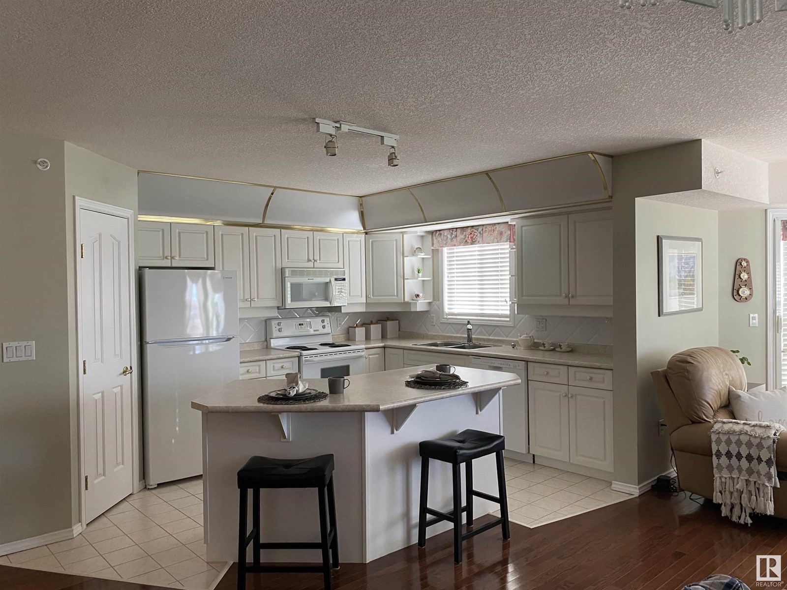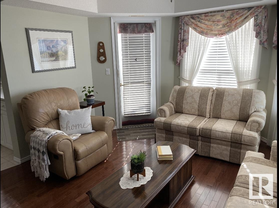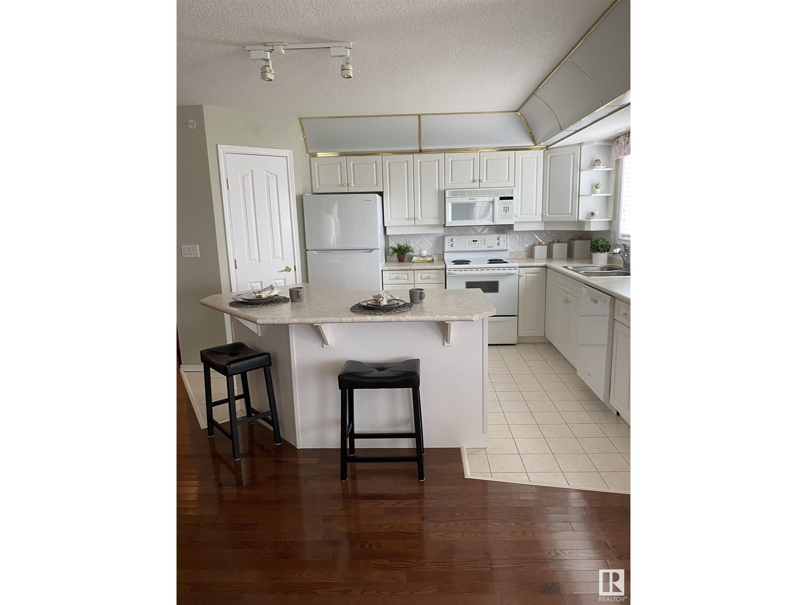 This 1,192 sq' 2Bdrm/ 2 Bath 4th level top floor 50+ adult condo is bright & open with tons of natural light. Features a large open kitchen with pantry, dining & family room w/upgraded tile & hardwood flooring , gas fireplace w/tile surround, oversized balcony, 2 large bedrooms w/ walk through closet & 4 pce ensuite off primary bedroom as well as a 3 pce main bath. Complete w/ in suite laundry room, air conditioning, heated underground parking, carwash, & separate storage unit. Enjoy the numerous amenities including exercise room, games/ Recreation room, library, workshop area, as well as a party/meeting room with a double kitchen hosting bingo nights, pizza parties & many other functions. Conveniently located near shopping, and all amenities with easy access to Whitemud & Anthony Henday Freeways. (id:22211)