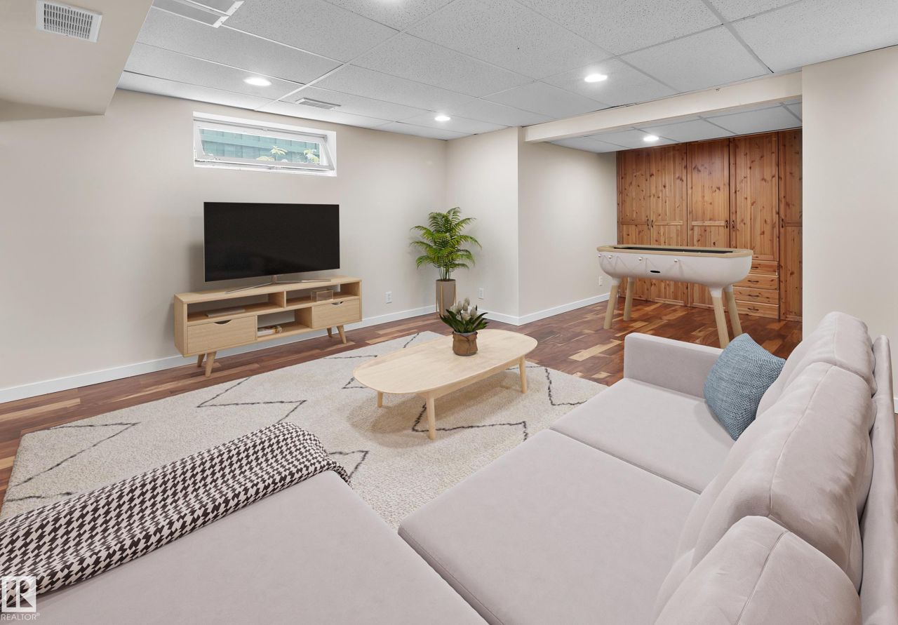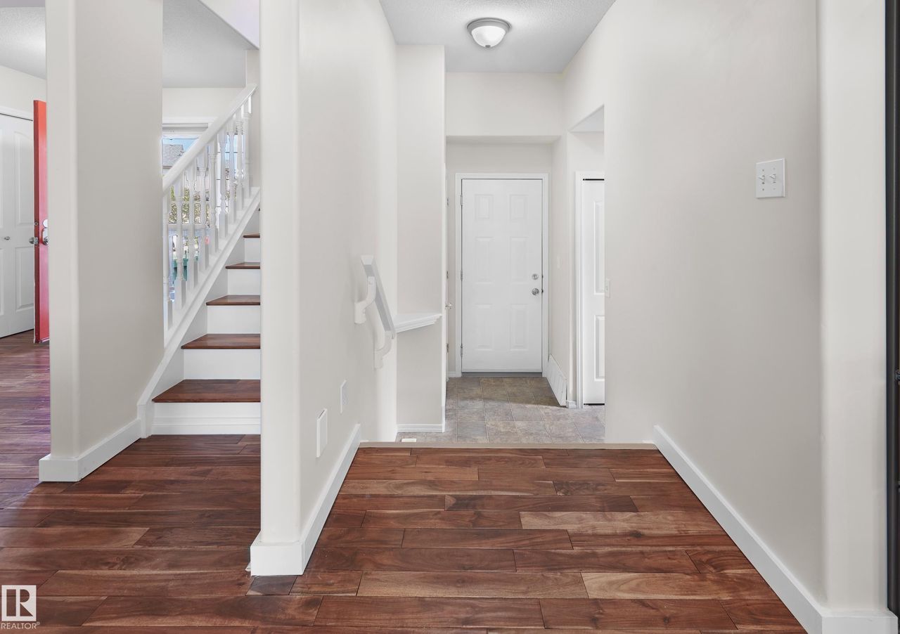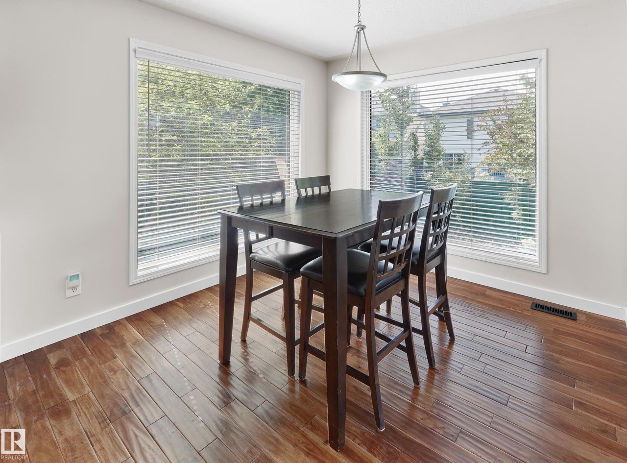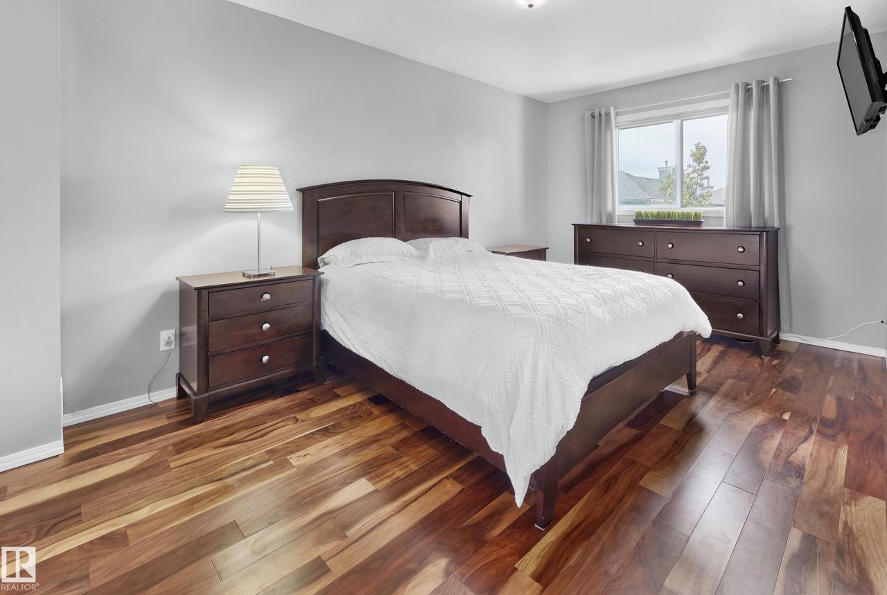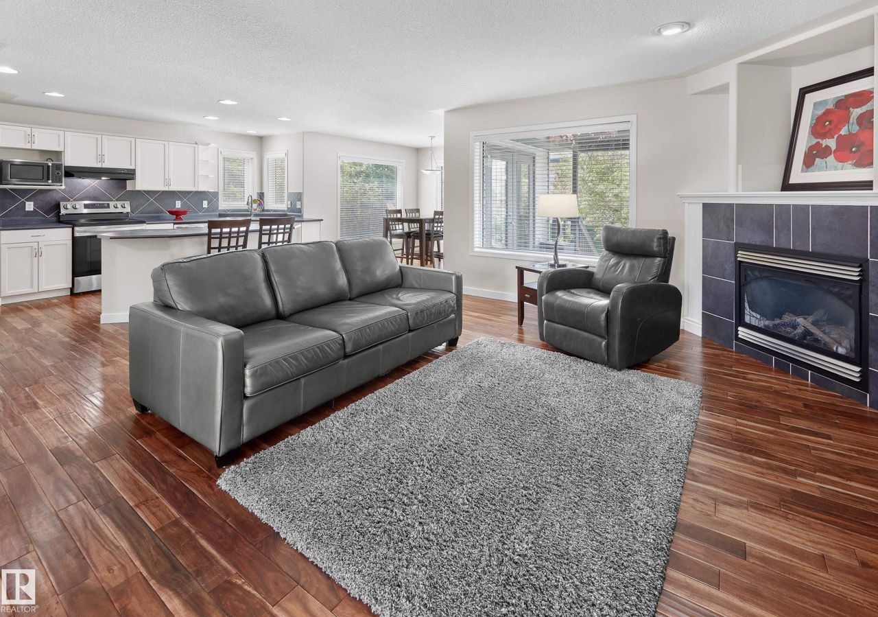 Welcome to Haddow, where warmth and sophistication define this extensively pretty two-storey home. With four bedrooms, three and a half bathrooms, and a fully finished basement, this home offers exceptional space and good value! The main floor features an inviting open-concept design with a white island kitchen flowing into the great room with a corner gas fireplace. The warm-toned hardwood floors add richness throughout the main and upper levels. Upstairs, you'll find three spacious bedrooms plus a flexible fourth bedroom—large enough to serve as a bonus room, home office, or playroom. The serene primary suite includes an ensuite with shower and generous closet space. Downstairs, the finished basement offers even more living space with a family room, full bath, and potential 5th bedroom. Enjoy the south facing backyard oasis with deck, new hot water tank and new washer and dryer!