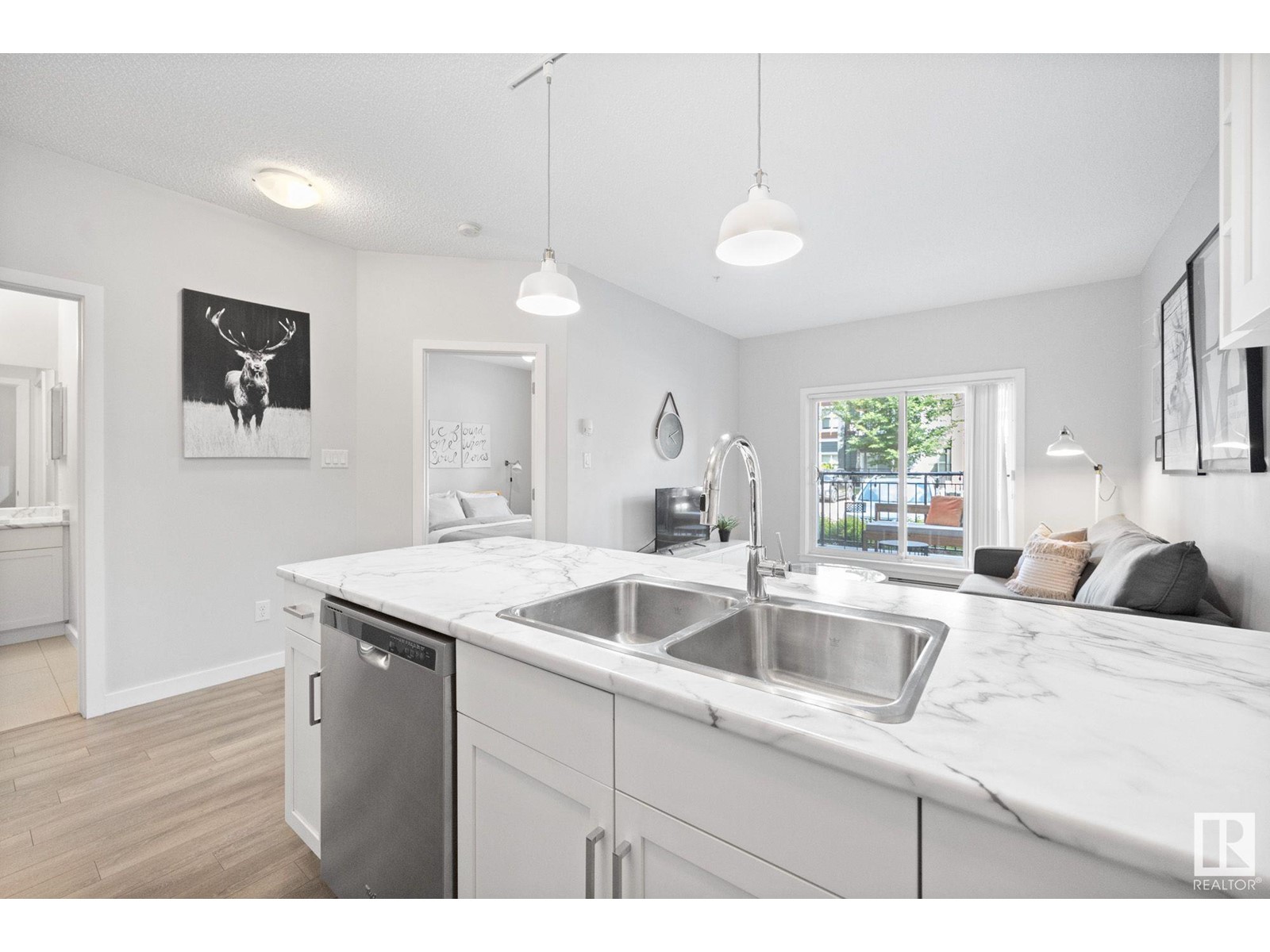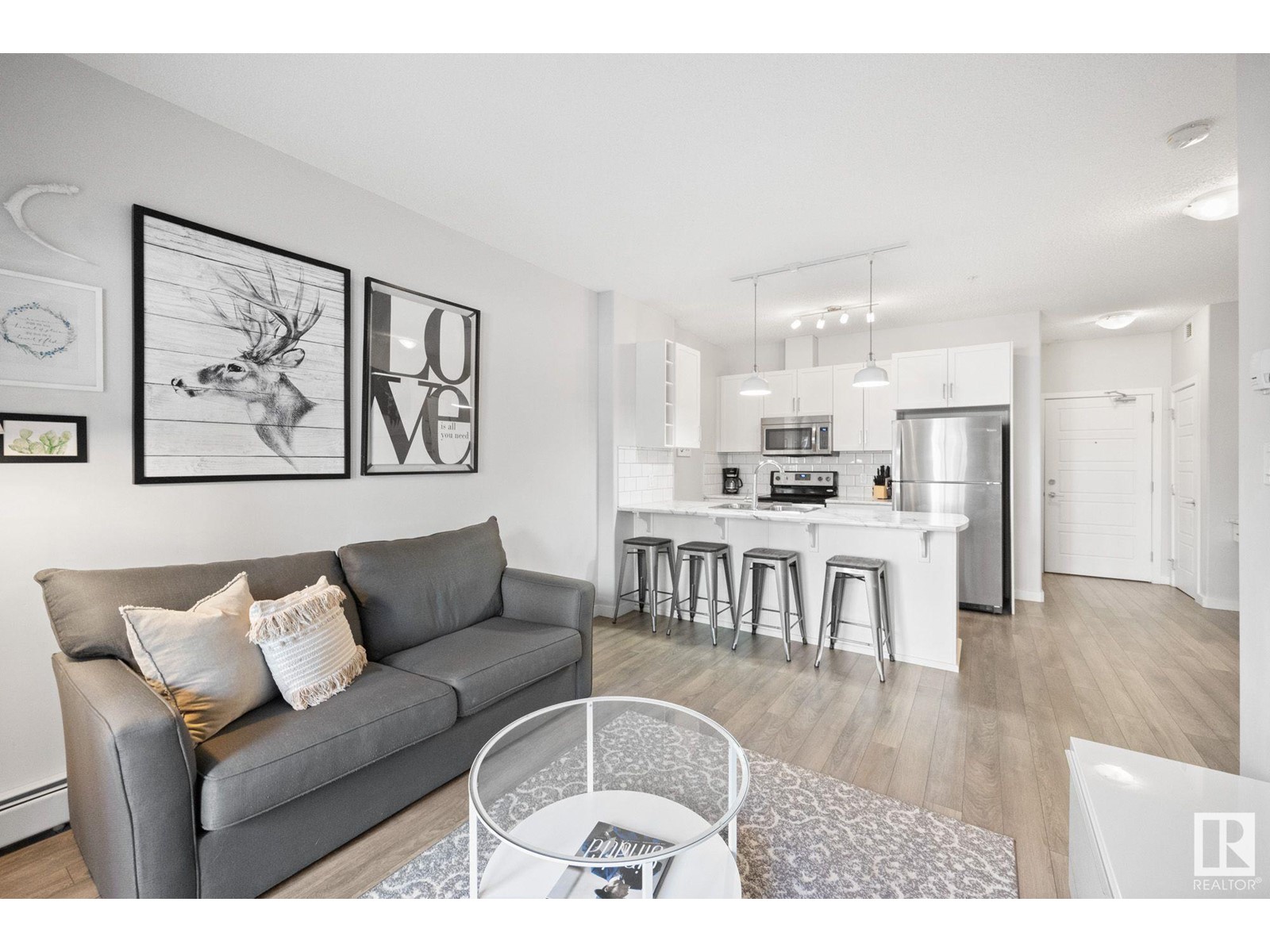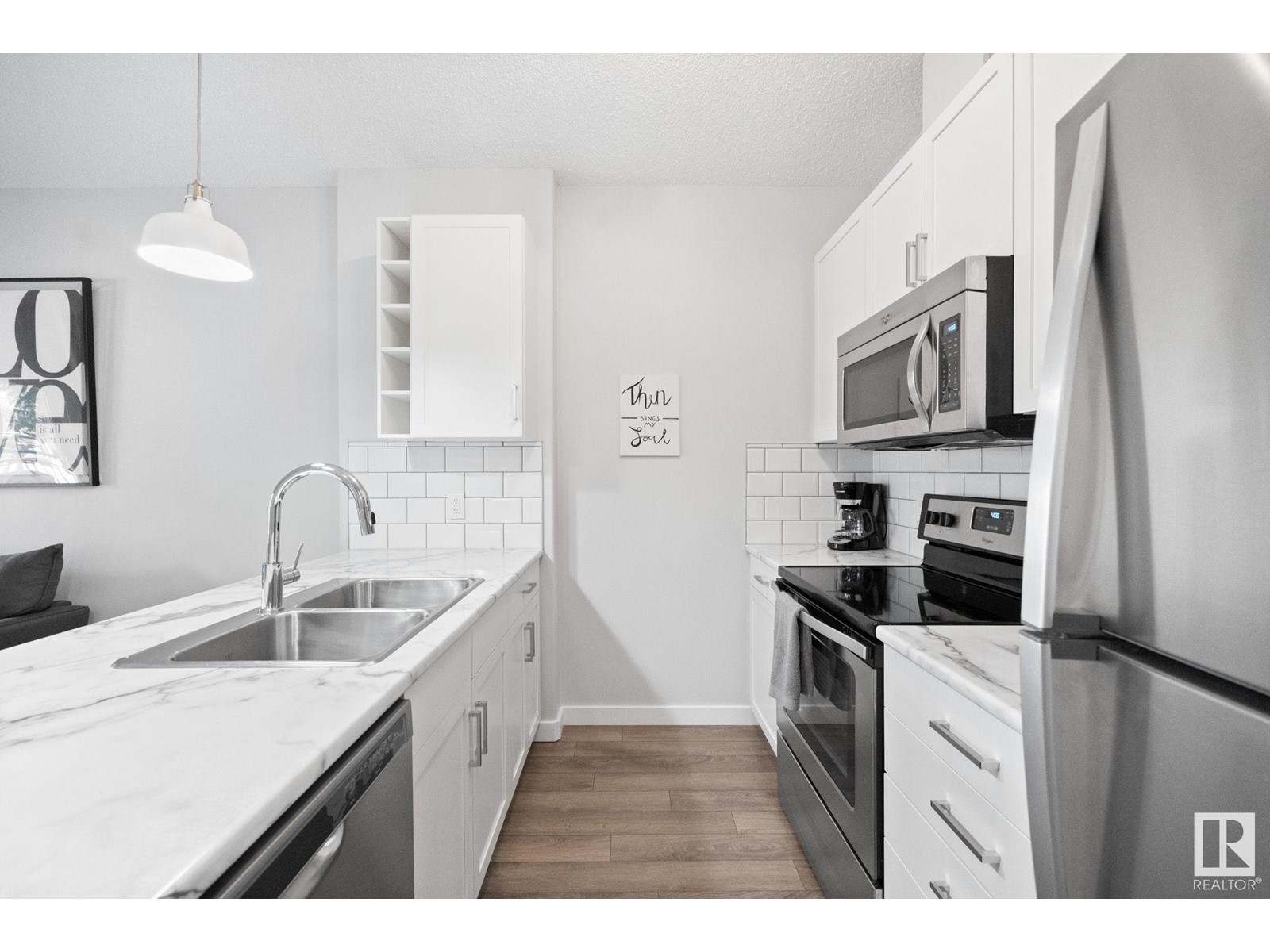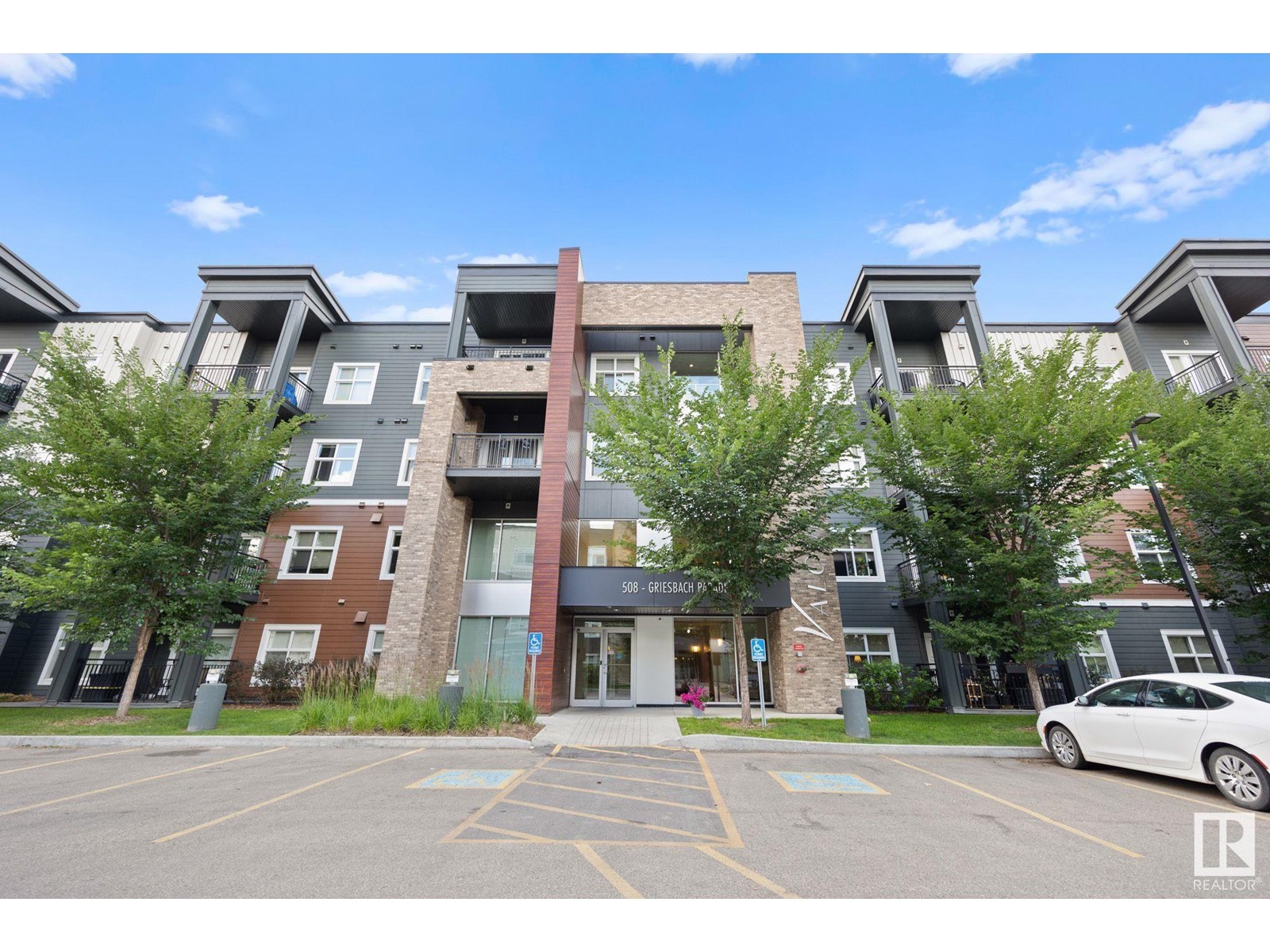 Why look to rent when you can OWN this gorgeous condo? UNDERGROUND, heated parking & IN-SUITE Laundry checks all of the boxes right? Built in 2016 with modern finishings, this is the perfect home for you! Like right out of a magazine, this one-bedroom condo is an eye-catcher with 9' Ceilings & a stunning kitchen boasting white cabinets & countertops & stainless steel appliances. Plank laminate flooring is in the kitchen & in the spacious living room where you have access out onto a covered patio. The large master bedroom includes a walk-in closet. The elegant full bathroom features a large vanity & tile flooring. You will be impressed with the large storage area with full front loading washer & dryer. Amenities incl: exercise & games rooms. Condo fees incl. heat & water! Great location in the growing, new neighbourhood of Griesbach - close to Yellowhead; Anthony Henday; shopping, schools, restaurants & downtown. Don't miss out on this gem that you will love to show off to your friends & family (id:22211)