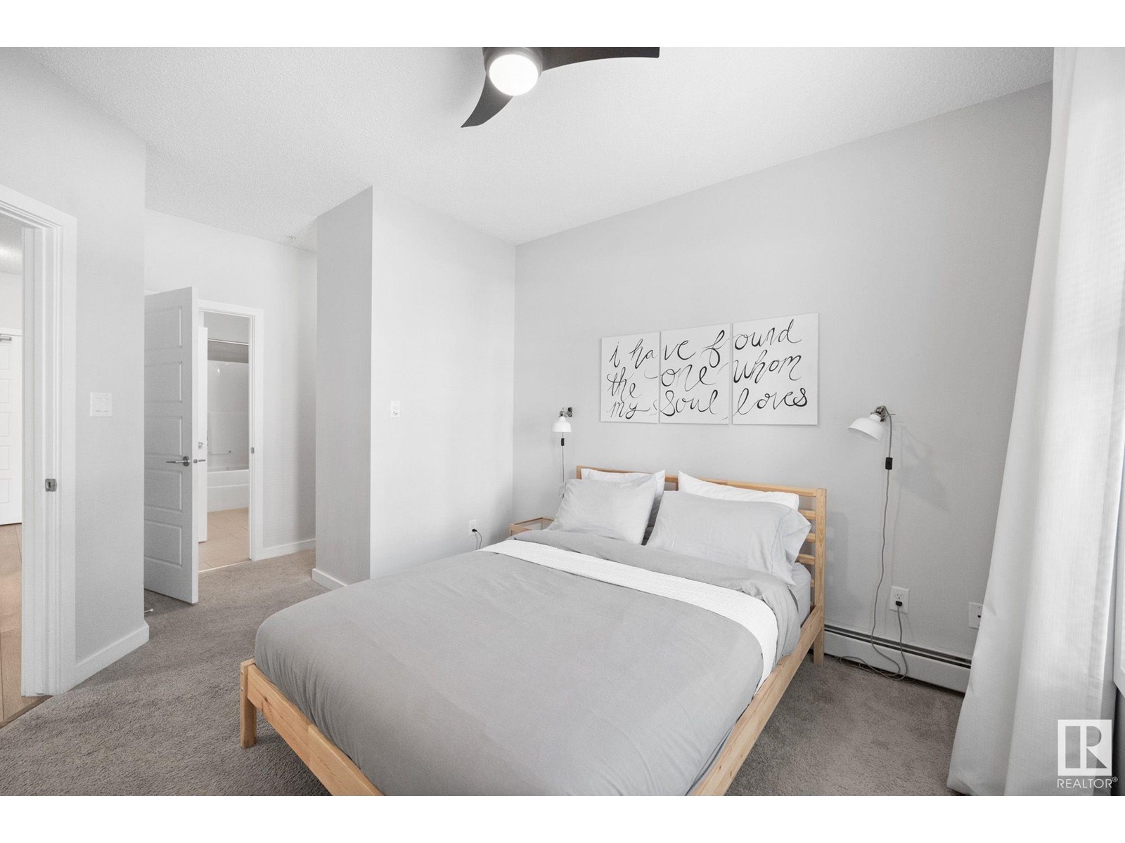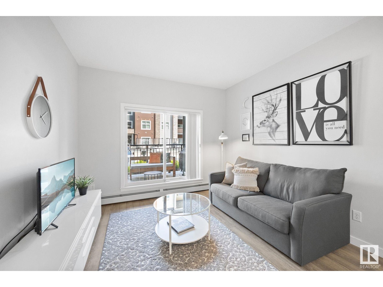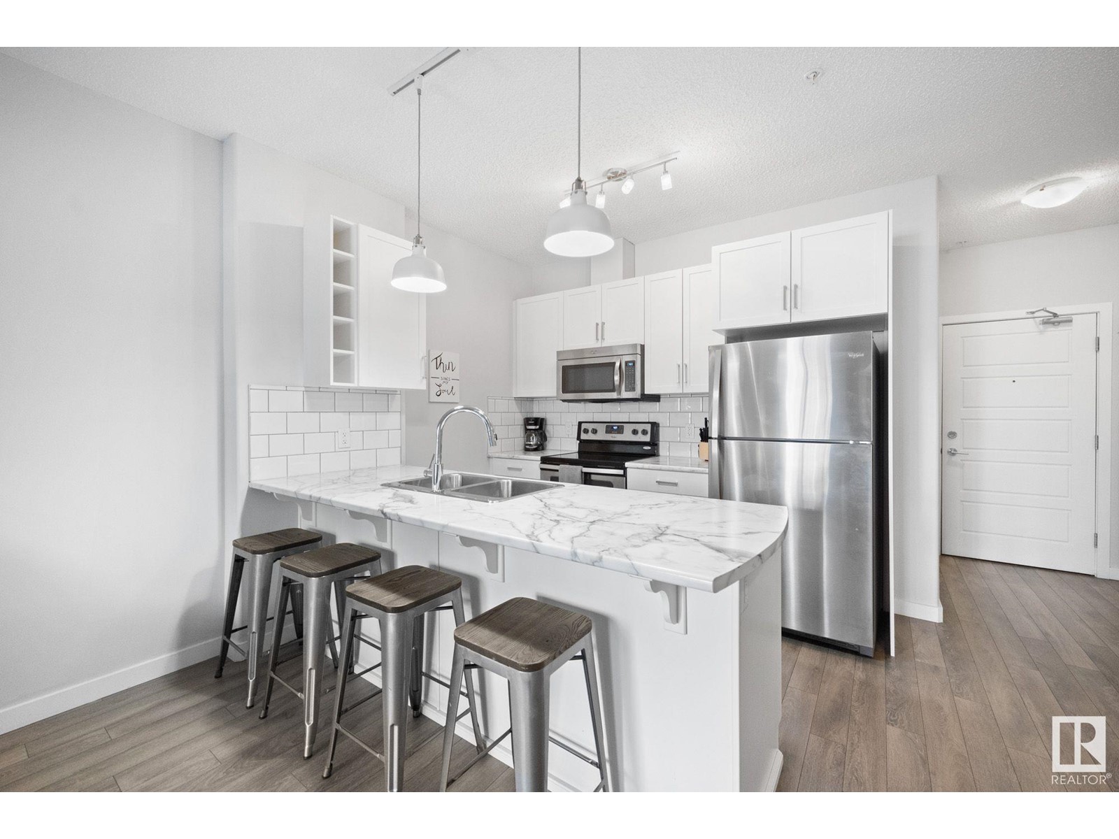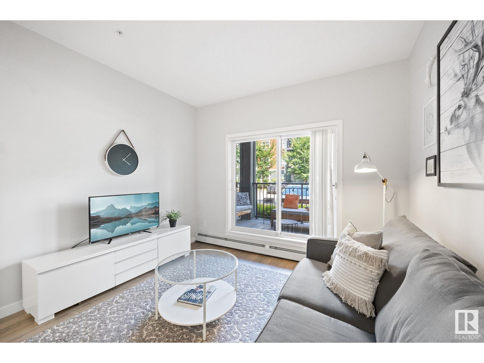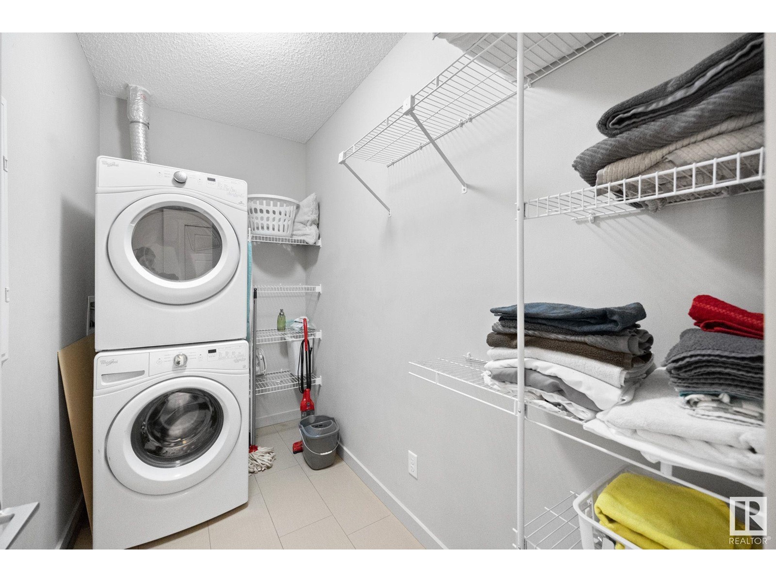 Why look to rent when you can OWN this gorgeous condo? UNDERGROUND, heated parking & IN-SUITE Laundry checks all of the boxes right? Built in 2016 with modern finishings, this is the perfect home for you! Like right out of a magazine, this one-bedroom condo is an eye-catcher with 9' Ceilings & a stunning kitchen boasting white cabinets & countertops & stainless steel appliances. Plank laminate flooring is in the kitchen & in the spacious living room where you have access out onto a covered patio. The large master bedroom includes a walk-in closet. The elegant full bathroom features a large vanity & tile flooring. You will be impressed with the large storage area with full front loading washer & dryer. Amenities incl: exercise & games rooms. Condo fees incl. heat & water! Great location in the growing, new neighbourhood of Griesbach - close to Yellowhead; Anthony Henday; shopping, schools, restaurants & downtown. Don't miss out on this gem that you will love to show off to your friends & family (id:22211)