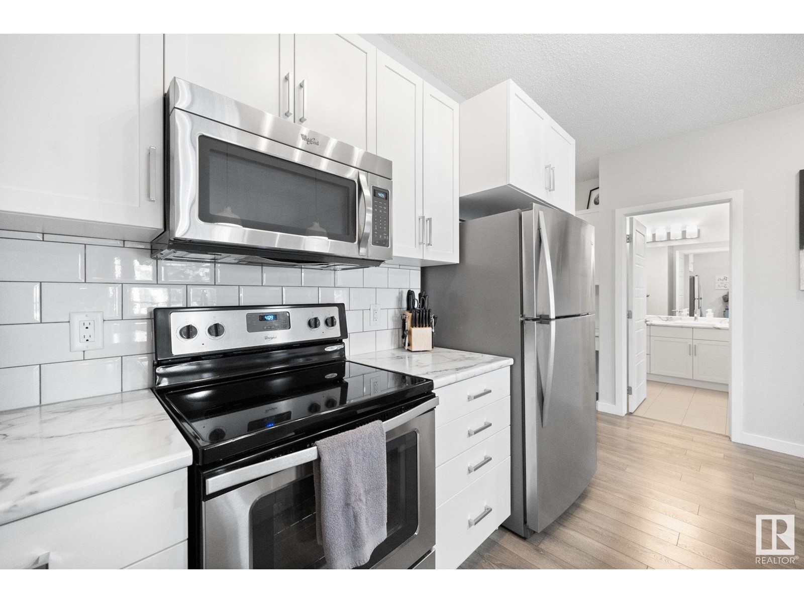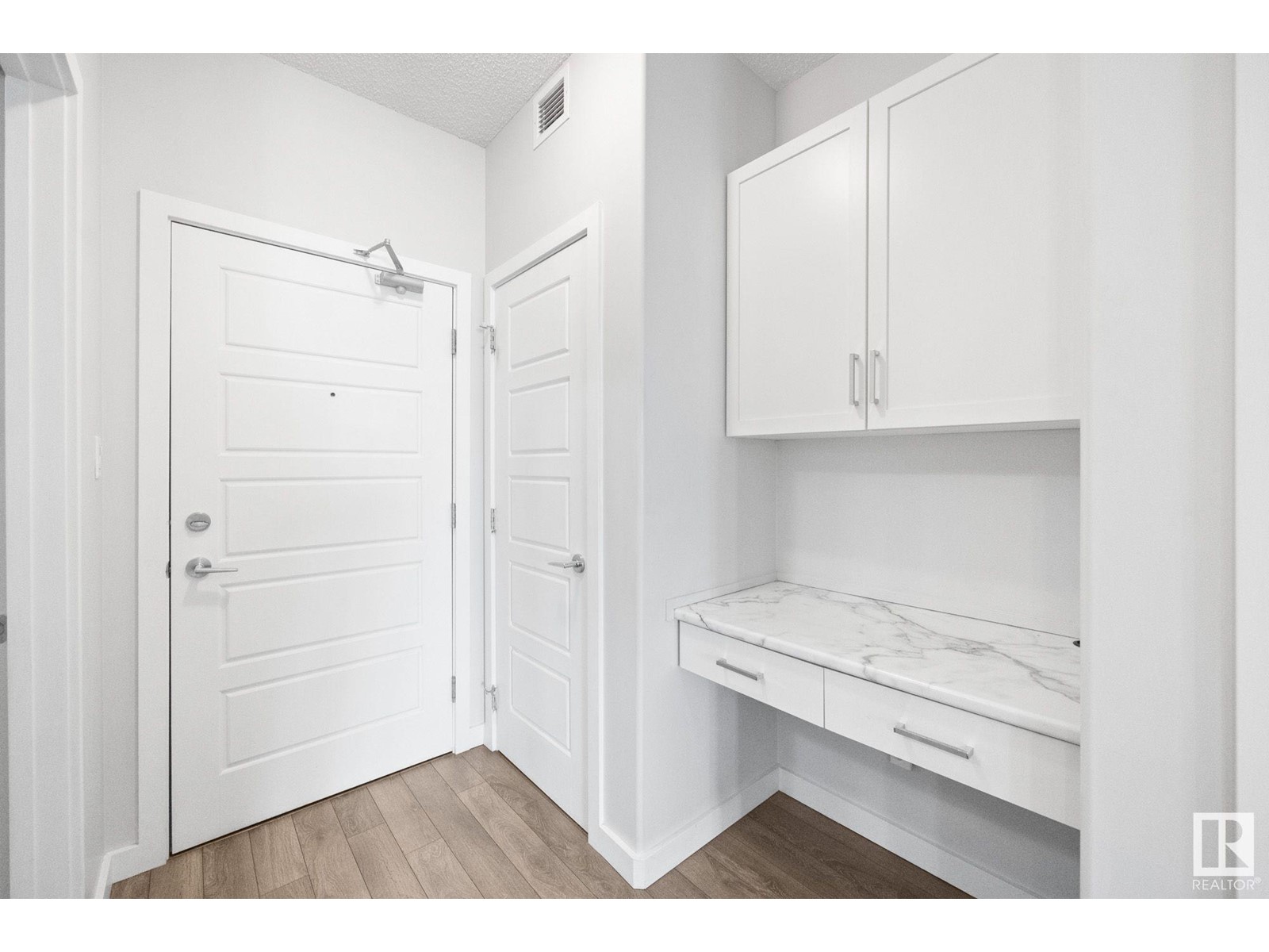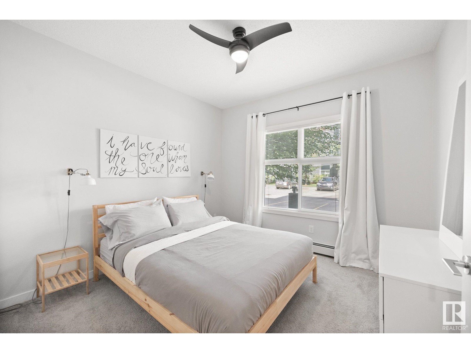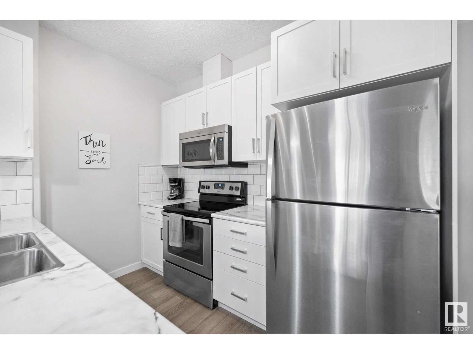 Why look to rent when you can OWN this gorgeous condo? UNDERGROUND, heated parking & IN-SUITE Laundry checks all of the boxes right? Built in 2016 with modern finishings, this is the perfect home for you! Like right out of a magazine, this one-bedroom condo is an eye-catcher with 9' Ceilings & a stunning kitchen boasting white cabinets & countertops & stainless steel appliances. Plank laminate flooring is in the kitchen & in the spacious living room where you have access out onto a covered patio. The large master bedroom includes a walk-in closet. The elegant full bathroom features a large vanity & tile flooring. You will be impressed with the large storage area with full front loading washer & dryer. Amenities incl: exercise & games rooms. Condo fees incl. heat & water! Great location in the growing, new neighbourhood of Griesbach - close to Yellowhead; Anthony Henday; shopping, schools, restaurants & downtown. Don't miss out on this gem that you will love to show off to your friends & family (id:22211)