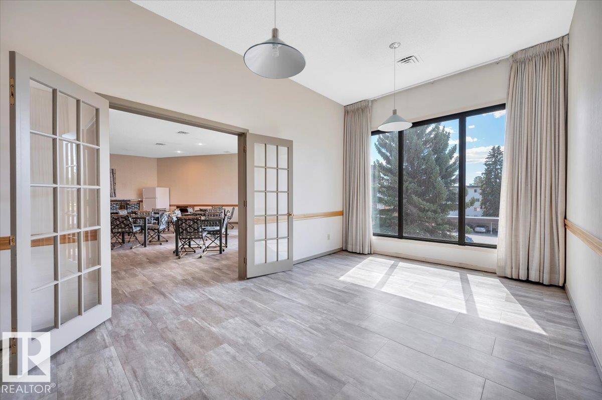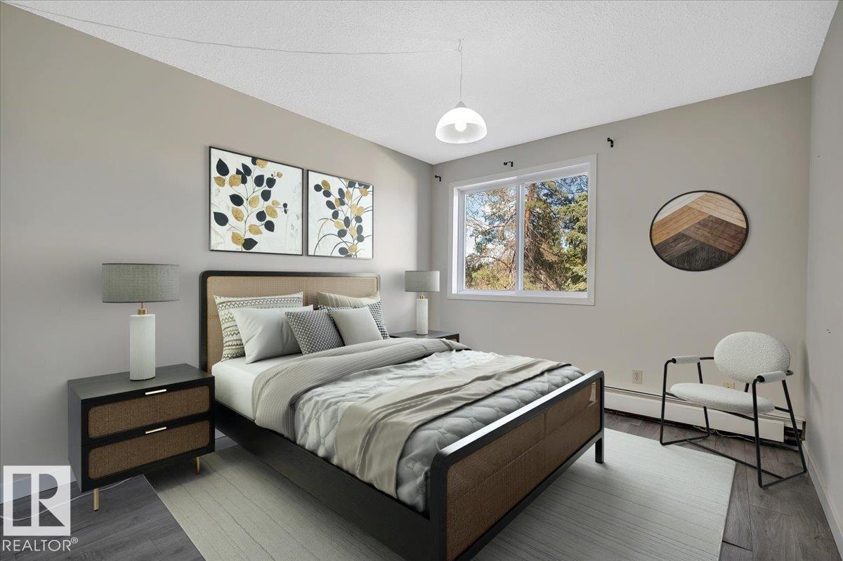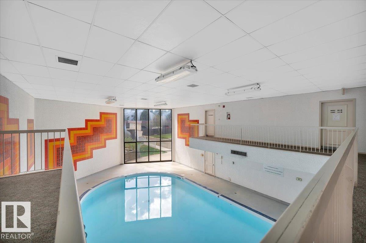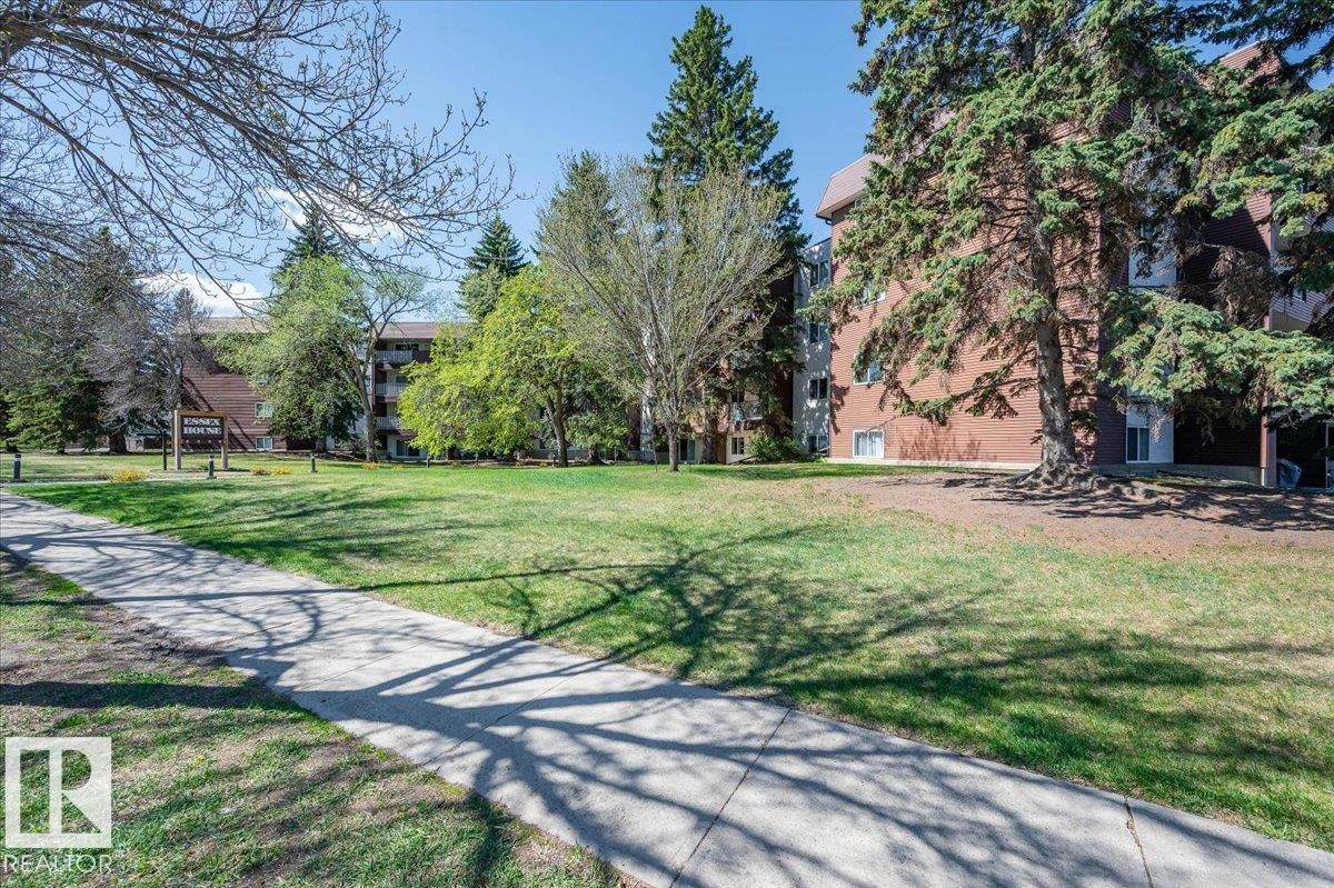 Welcome to ESSEX HOUSE located in Brander Gardens, a beautiful community near the river valley & wilderness trails, Fort Edmonton Park & Nature Centre with easy access to Whitemud Freeway. This adult (18+) pet free building overlooks a huge green space of school playing fields, tennis courts & community garden & is steps from the local shopping centre with medical & dental offices, a pharmacy & several shops. Good bus service to the U of A or just cycle there. This spacious two bedroom unit has a large living/dining room with patio doors opening onto a huge balcony & kitchen with walk-in pantry. The primary bedroom has a 3 pce ensuite & there is a 4 pce guest bathroom. This well maintained building has a swimming pool, hot tub, exercise room, social room & roof top deck. The condo fees INCLUDE ELECTRICITY, HEAT, WATER, SEWER, GARBAGE, INTERNET, FREE LAUNDRY & THE USE OF THE AMAZING SALT WATER INDOOR POOL & HOT TUB. A perfect home for university students or retirees.