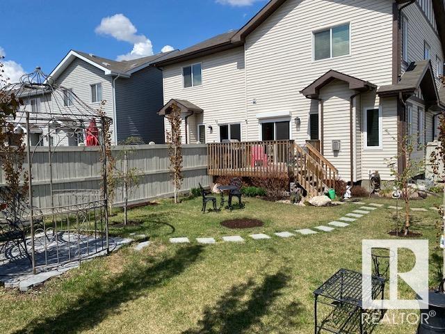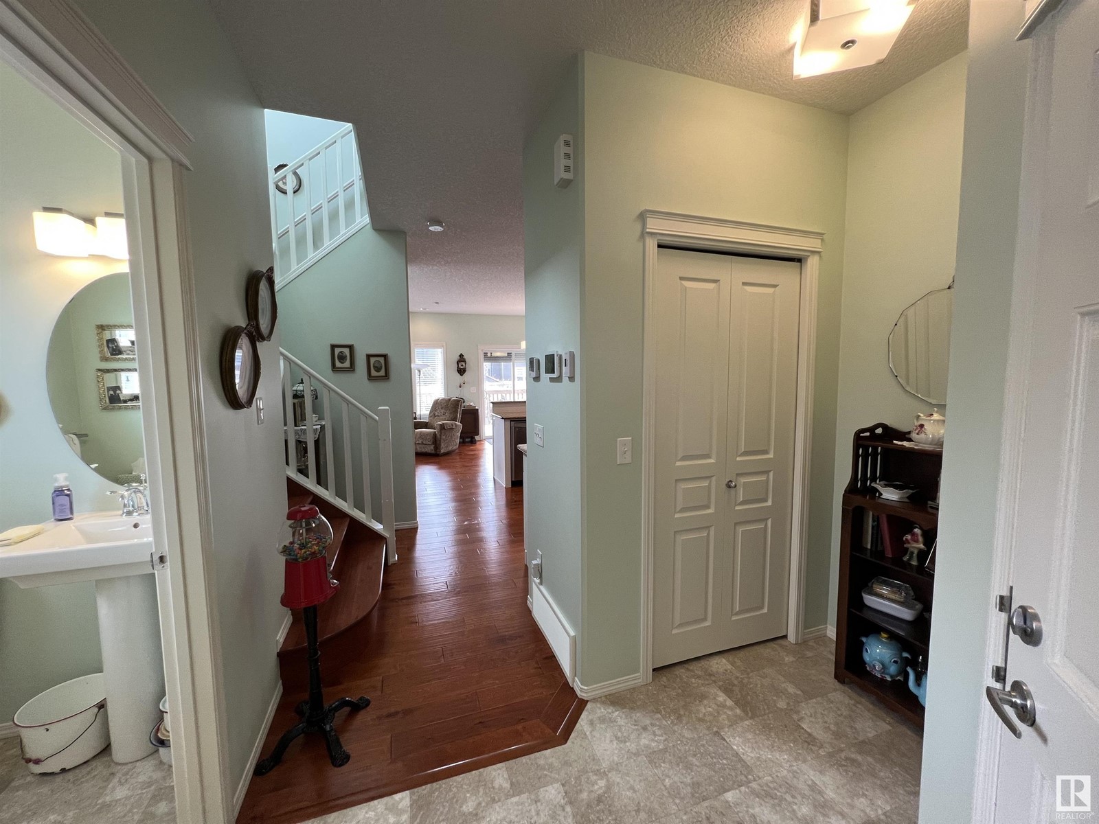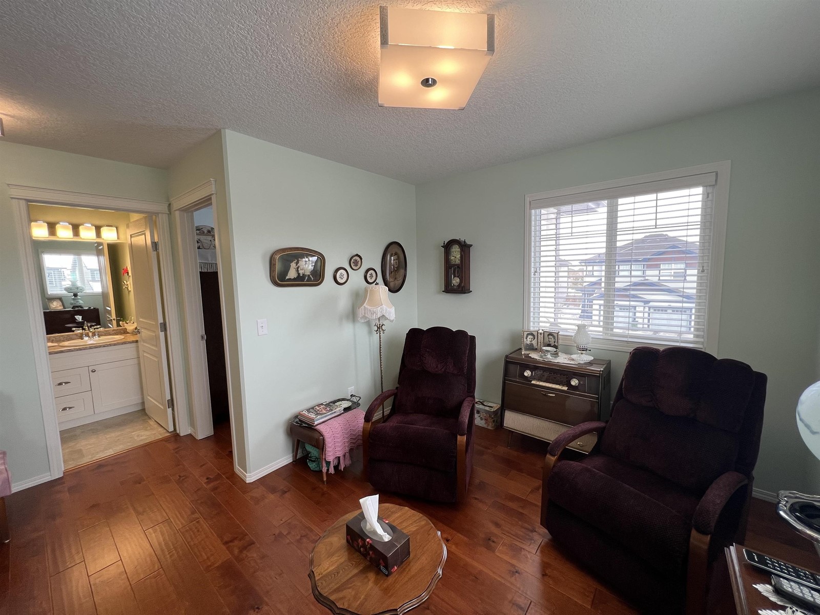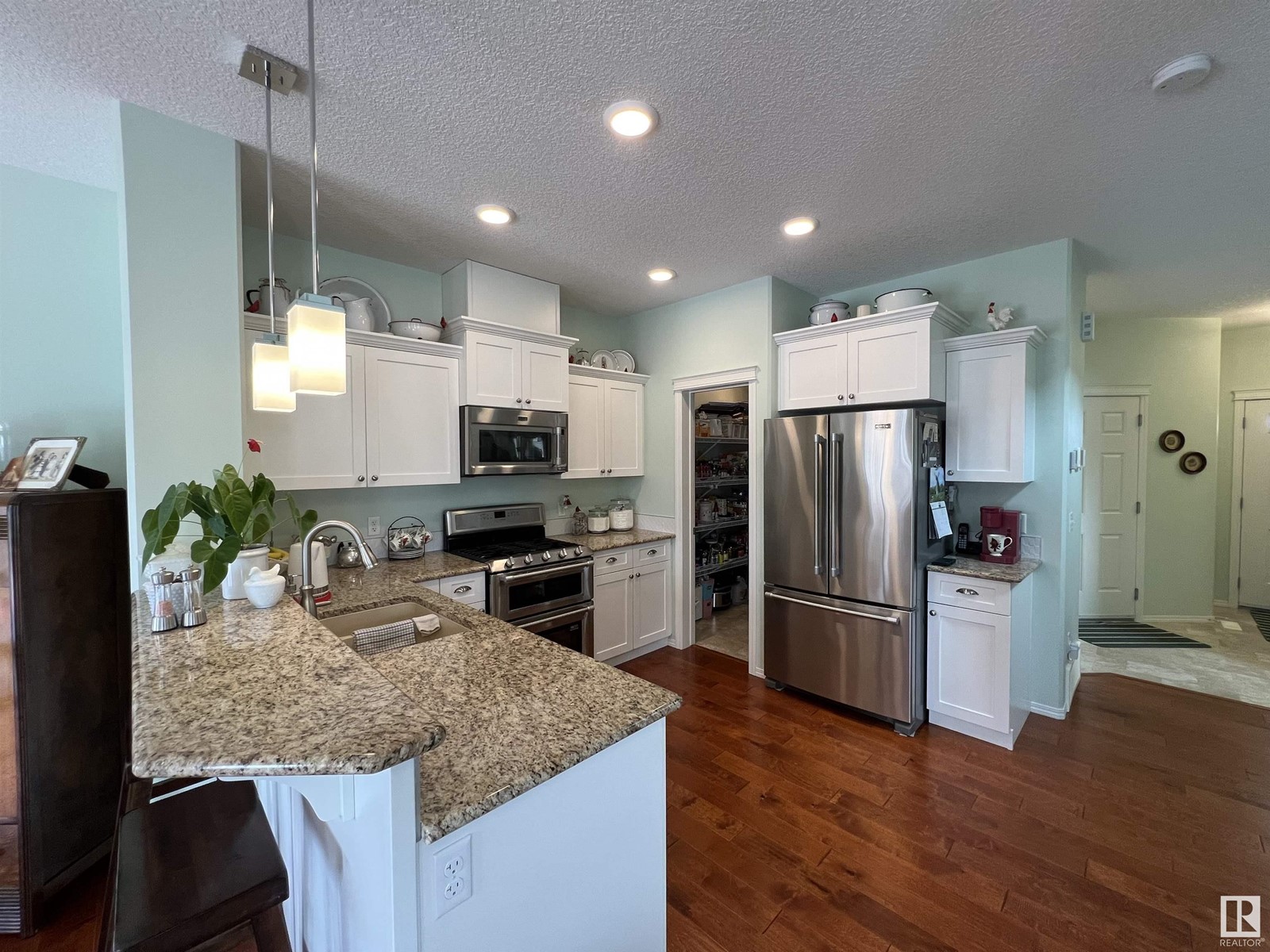 A truly wonderful home that was customized and upgraded for the homeowner with attention to detail. This is super clean and well kept with 9 foot ceilings, beautiful rich hardwood floors on the upper and main floor. California knock down ceilings, open and bright kitchen with granite counter tops and large walk in pantry. Patio doors with roll shutters lead to a large sundeck and magnificent landscaped backyard. Great room has a gas fireplace and many windows that flood the room with sun light. 2nd floor laundry, large master bedroom with 4pce ensuite and walkin closet. Spacious second bedroom with third bedroom that was converted into a den area. Basement has lino flooring, 4 pce bathroom, all development completed by Sterling Homes. (id:22211)