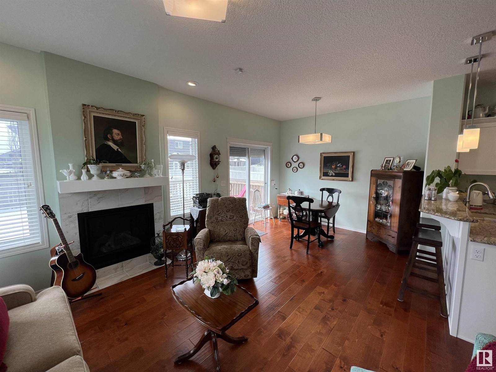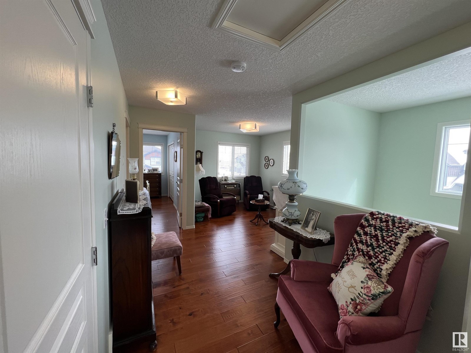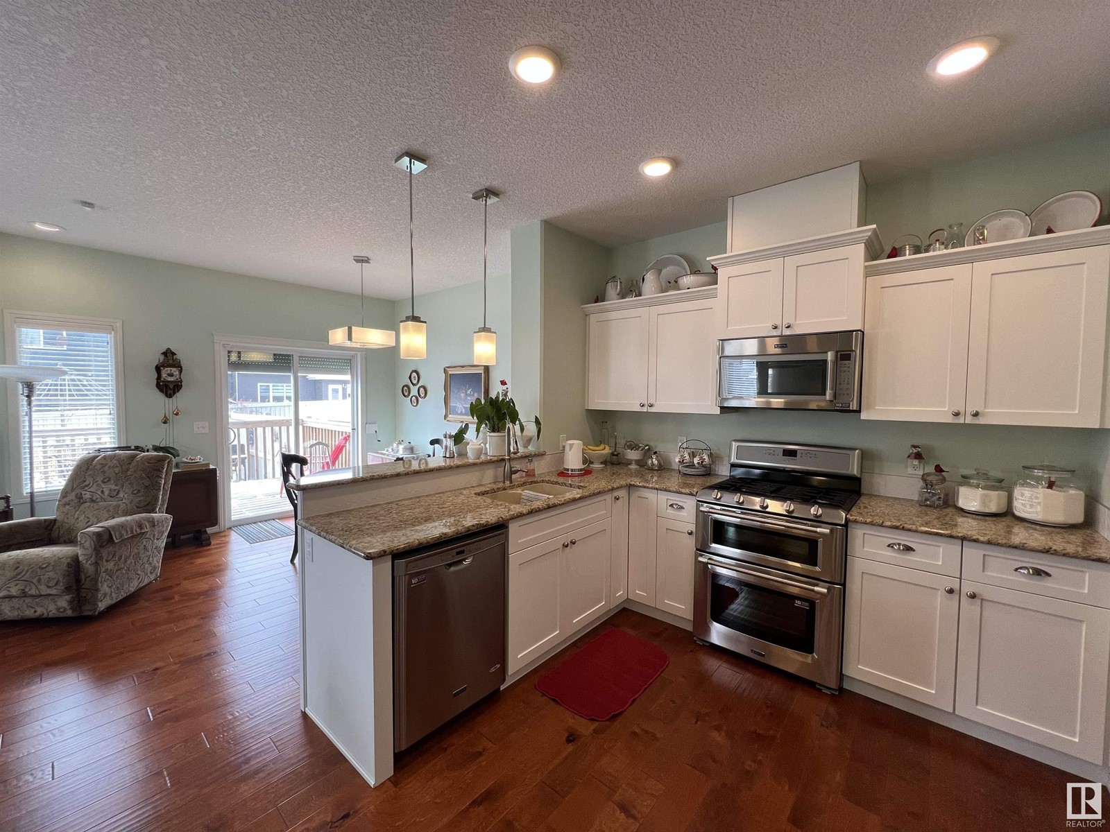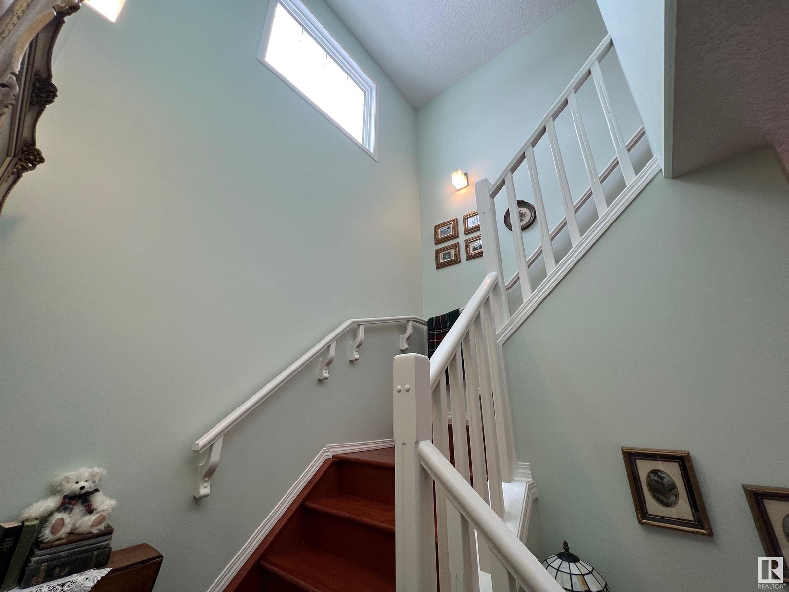 A truly wonderful home that was customized and upgraded for the homeowner with attention to detail. This is super clean and well kept with 9 foot ceilings, beautiful rich hardwood floors on the upper and main floor. California knock down ceilings, open and bright kitchen with granite counter tops and large walk in pantry. Patio doors with roll shutters lead to a large sundeck and magnificent landscaped backyard. Great room has a gas fireplace and many windows that flood the room with sun light. 2nd floor laundry, large master bedroom with 4pce ensuite and walkin closet. Spacious second bedroom with third bedroom that was converted into a den area. Basement has lino flooring, 4 pce bathroom, all development completed by Sterling Homes. (id:22211)