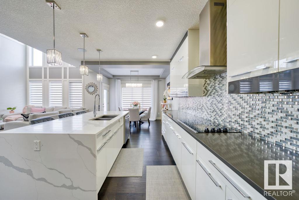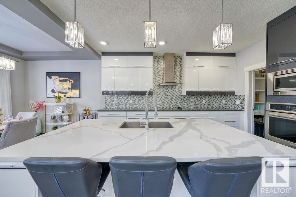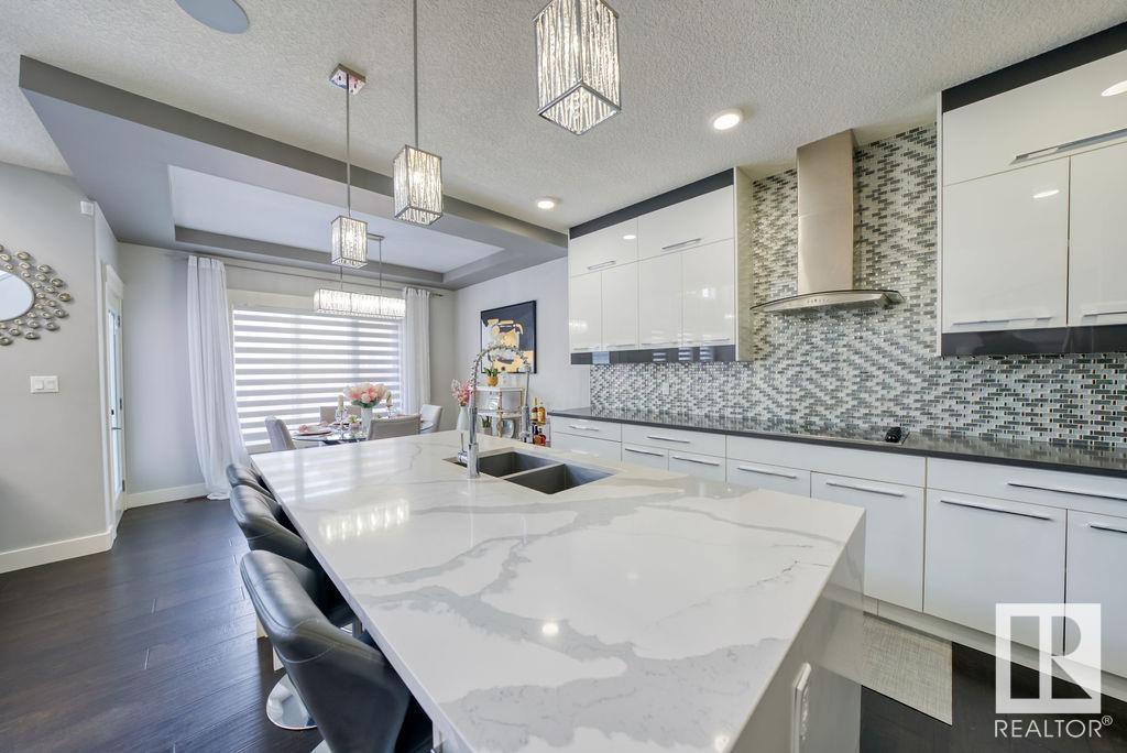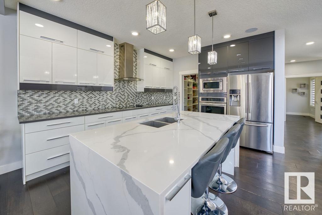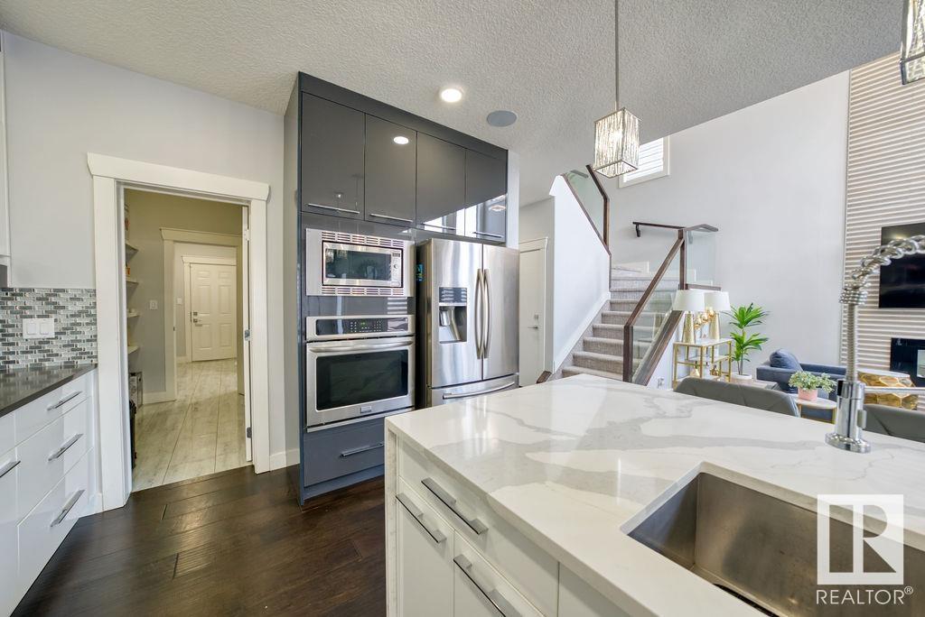This Schonsee home is move-in ready and absolutely stunning! High end finishes and an abundance of living space combine with a total of 7 bedrooms (4 up, 1 on the main, and 2 in the basement), 4 bathrooms and over 2500 sq ft of above grade living space. The basement offers a 2 bedroom legal suite and separate yard entrance - perfect to use for income generation or house multi-generational families. You'll immediately be impressed with the details in this home, gorgeous high ceilings on the main floor, stunning hardwood floors throughout, as well as the show stopping stone work on the kitchen island, stunning cabinetry, the walk-through pantry and check out the fireplace. The low maintenance backyard (professionally landscaped with paving stones) means less time doing yard work and more time spent simply enjoying your surroundings. The location of this home is unbeatable - close to schools, shopping and with great access to Anthony Henday! Your morning commute will be a breeze! Plus, it comes with AC! (id:22211)