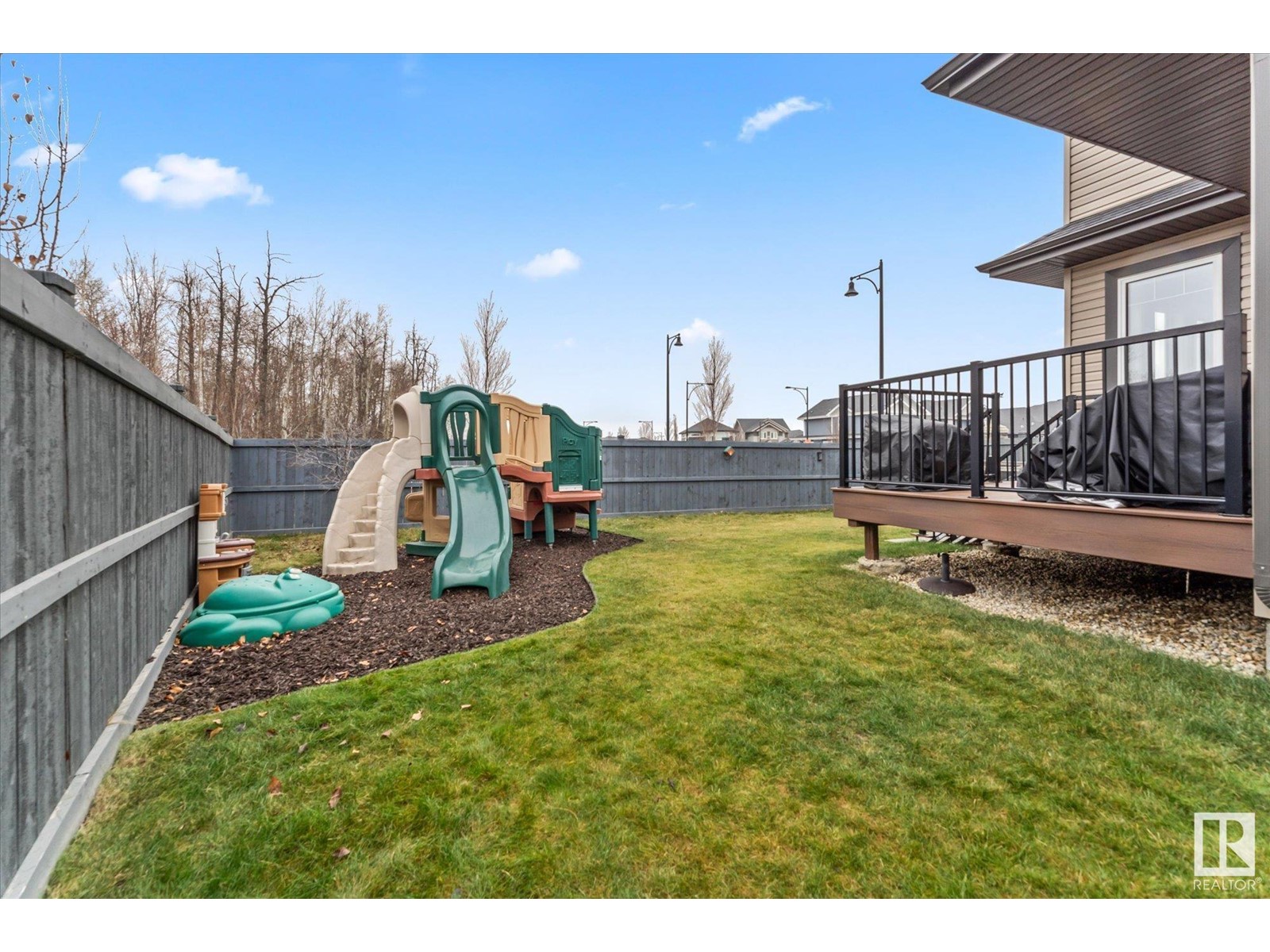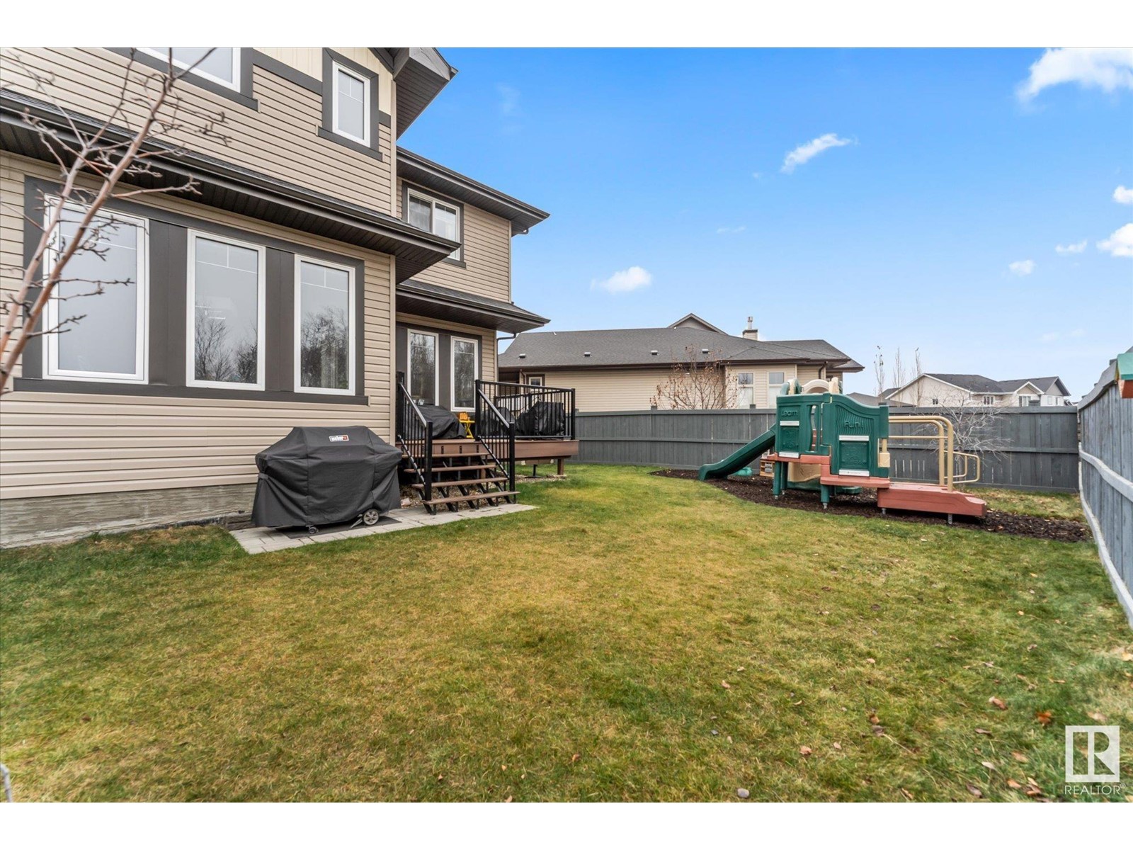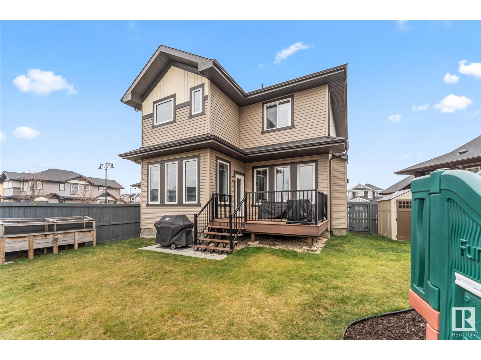 Welcome home to West Edmonton where your family will have room to grow for years to come. This beautiful 3 bedroom, 2.5 bath home located in the desirable neighbourhood of Granville features hardwood floors, a gas FP, quartz countertops, SS appliances and large windows that welcome natural light throughout. The den with double doors on the main floor is perfect for a home office. With upstairs laundry and large bonus room, the functional layout is perfect for a growing family with more opportunity to expand living space in the basement. Your low maintenance composite deck leads to a spacious backyard, including a large play structure over rubberized chips and additional storage shed! With no rear neighbours and only steps to Kim Hung School with fast access to Whitemud and Henday, this home is ideally located. (id:22211)