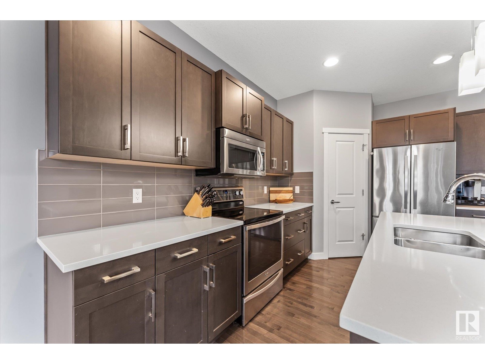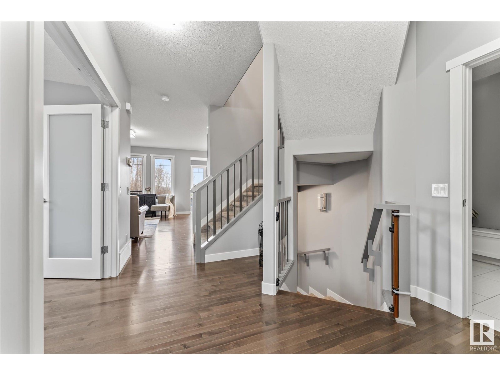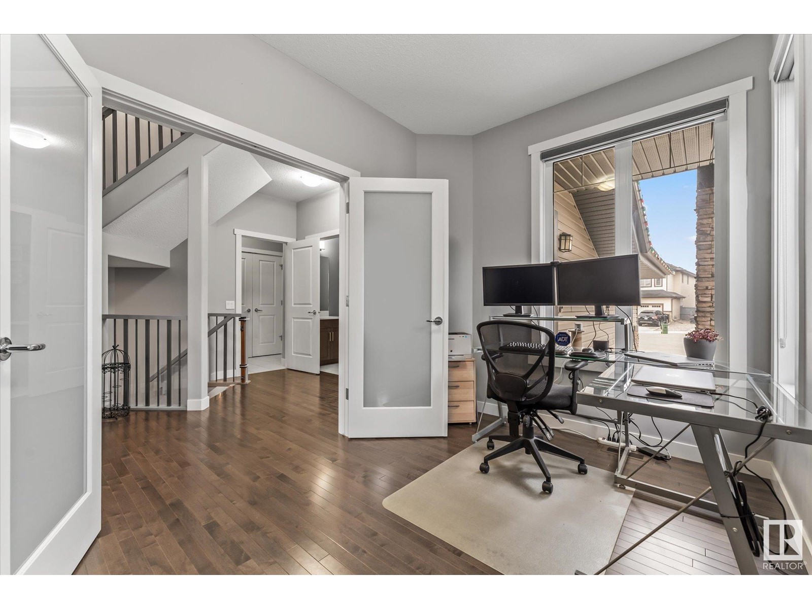 Welcome home to West Edmonton where your family will have room to grow for years to come. This beautiful 3 bedroom, 2.5 bath home located in the desirable neighbourhood of Granville features hardwood floors, a gas FP, quartz countertops, SS appliances and large windows that welcome natural light throughout. The den with double doors on the main floor is perfect for a home office. With upstairs laundry and large bonus room, the functional layout is perfect for a growing family with more opportunity to expand living space in the basement. Your low maintenance composite deck leads to a spacious backyard, including a large play structure over rubberized chips and additional storage shed! With no rear neighbours and only steps to Kim Hung School with fast access to Whitemud and Henday, this home is ideally located. (id:22211)