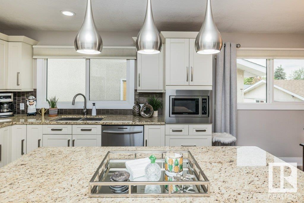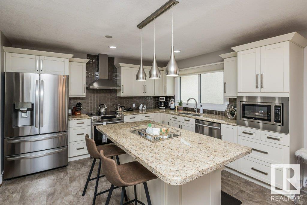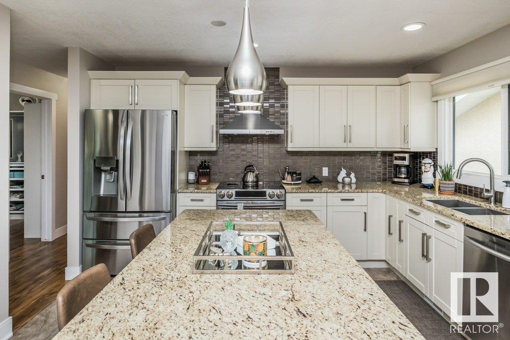 With breathtaking curb appeal, this custom bi-level has been renovated top to bottom with a craftsmans eye for detail & quality. The dream kitchen features granite counters, custom cabinetry, premium fixtures & a DR with a walk-in pantry. Enjoy the LR with a gas fireplace with stone mantle. Meticulous quality continues with the 3+1 bedrooms with custom designed closets. The primary 5-piece bath features a make-up table, Riobel fixtures, rainfall shower & a linen closet with built-in lighting. The 24x35 garage is one of a kind with 840sf of space, lounge area, integrated storage & cabinetry area, & polymer-protected floors. Outside you are greeted with an oasis including a stone bar with lighting, firepit, dining space & a custom sugar shack shed complete with sink, fridge, cooking area & built in TV. The basement features large windows, full kitchen, bedroom with ensuite, two LR/den areas, & lots of hidden storage. The home boasts upgraded mechanical (HWT, Furnace: 2019), new windows, new roof & more. (id:22211)