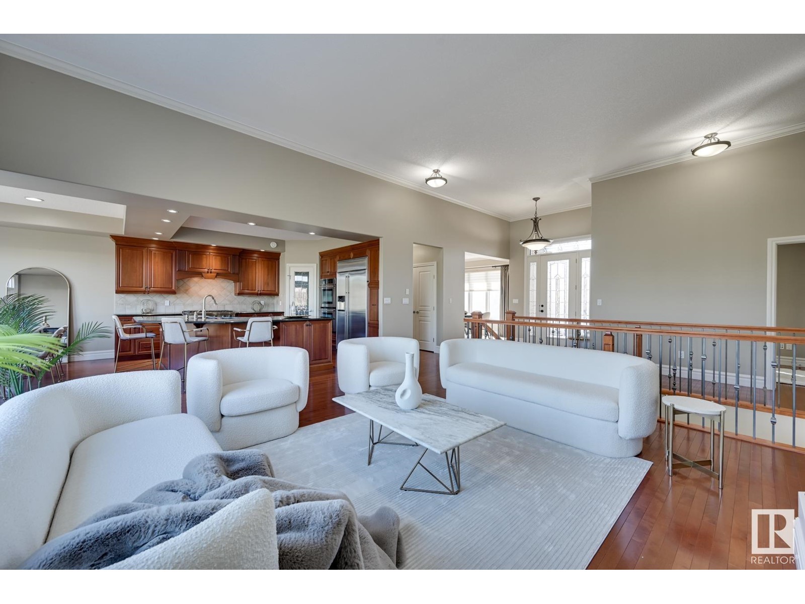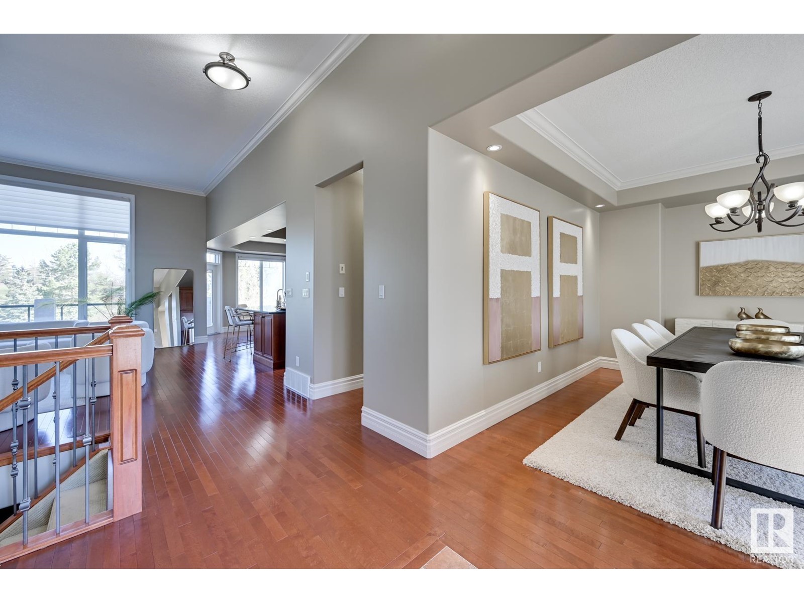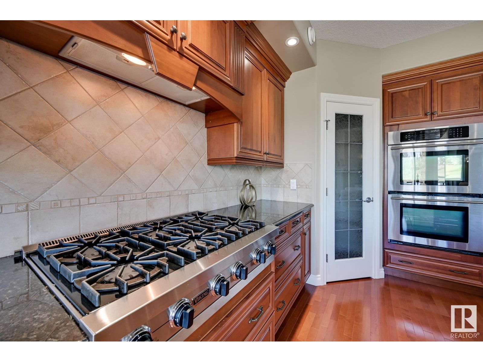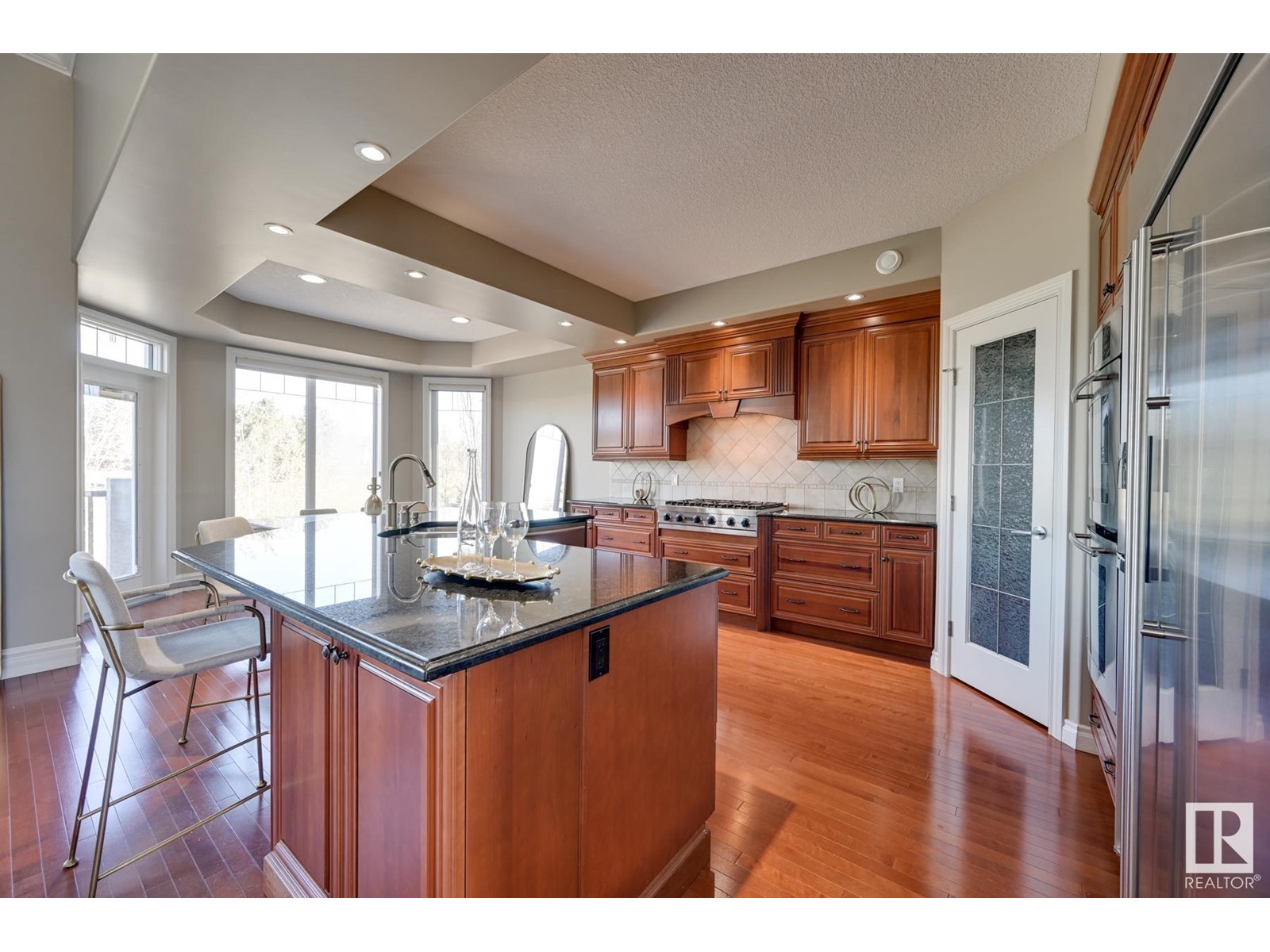 Immaculate Walkout bungalow by Perry Built Homes in Magrath Summit backing onto greenspace/tranquil stream. Steps to ponds & ravine. Fantastic curb appeal w/aggregate driveway & triple garage. 12' ceilings with an open floorplan & naturally lit throughout. Gleaming hardwood welcomes you through a sunny formal dining room, great room with a beautiful fireplace feature wall. Kitchen boasts upgraded appliances, prep island, corner pantry & a dining nook with direct access to a privatebalcony. Main floor den is perfect for a home office or library. Primary bedroom will fit a king sized set & features a 5pc spa ensuite complete with 10mil glass shower, soaker tub & dual faucets. Walk-in closet with custom built-in organizers. Walkout level is perfect for entertaining. Wet bar, patio & dual lounge recreational space will accommodate any seating arrangement. Additional 2 bedrooms & 5pc bathroom for extended guest stays. Generous sized hobby rooms. Immediate possession available. **4 Virtually staged photos** (id:22211)