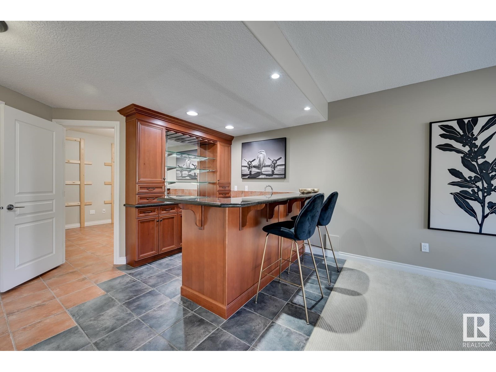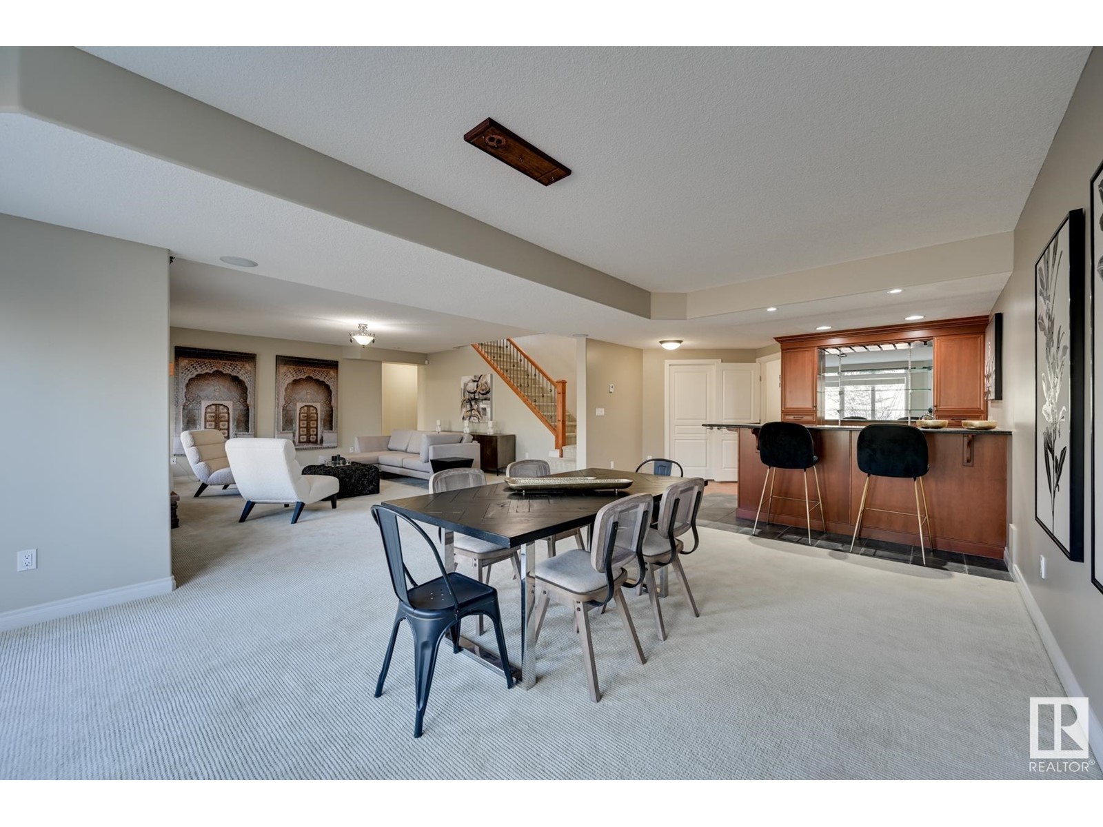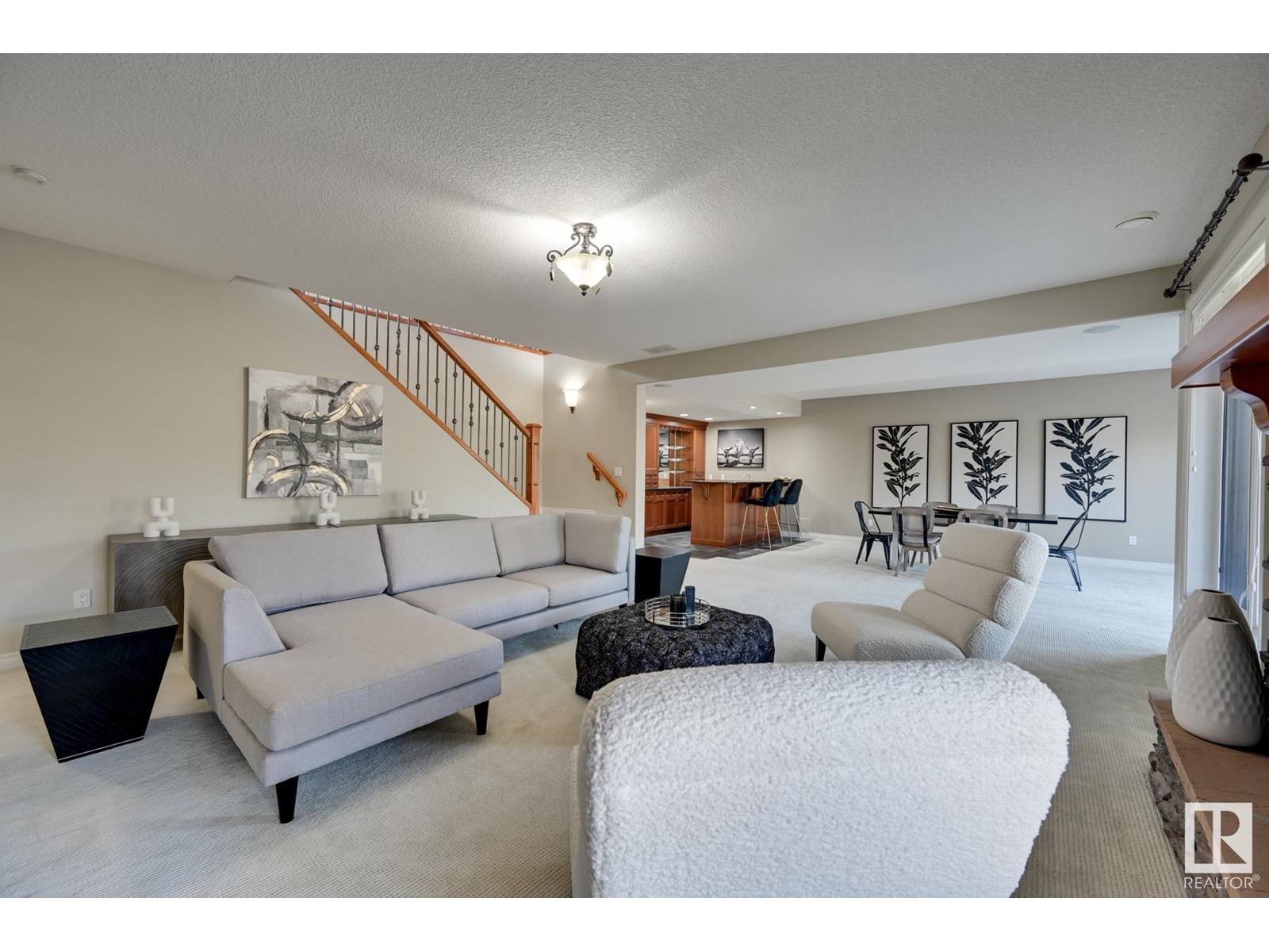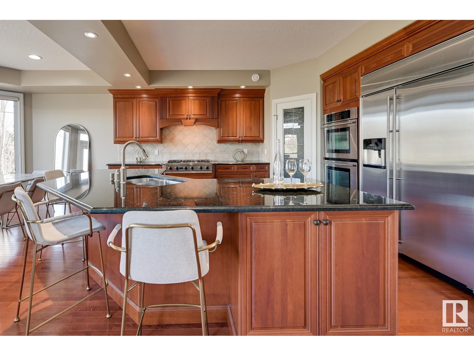 Immaculate Walkout bungalow by Perry Built Homes in Magrath Summit backing onto greenspace/tranquil stream. Steps to ponds & ravine. Fantastic curb appeal w/aggregate driveway & triple garage. 12' ceilings with an open floorplan & naturally lit throughout. Gleaming hardwood welcomes you through a sunny formal dining room, great room with a beautiful fireplace feature wall. Kitchen boasts upgraded appliances, prep island, corner pantry & a dining nook with direct access to a privatebalcony. Main floor den is perfect for a home office or library. Primary bedroom will fit a king sized set & features a 5pc spa ensuite complete with 10mil glass shower, soaker tub & dual faucets. Walk-in closet with custom built-in organizers. Walkout level is perfect for entertaining. Wet bar, patio & dual lounge recreational space will accommodate any seating arrangement. Additional 2 bedrooms & 5pc bathroom for extended guest stays. Generous sized hobby rooms. Immediate possession available. **4 Virtually staged photos** (id:22211)