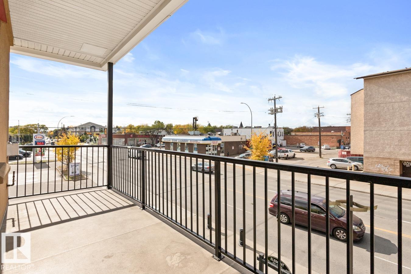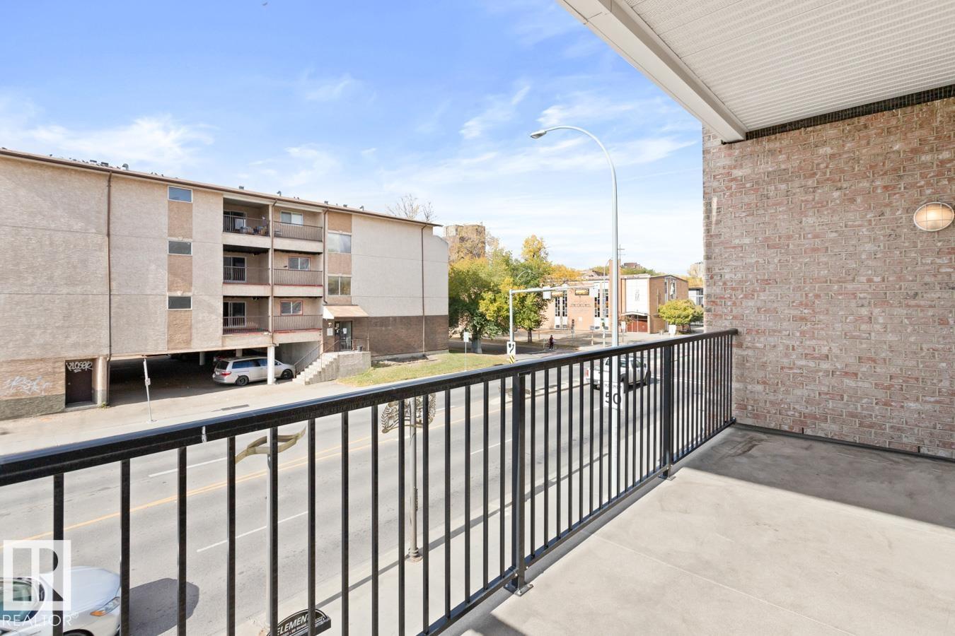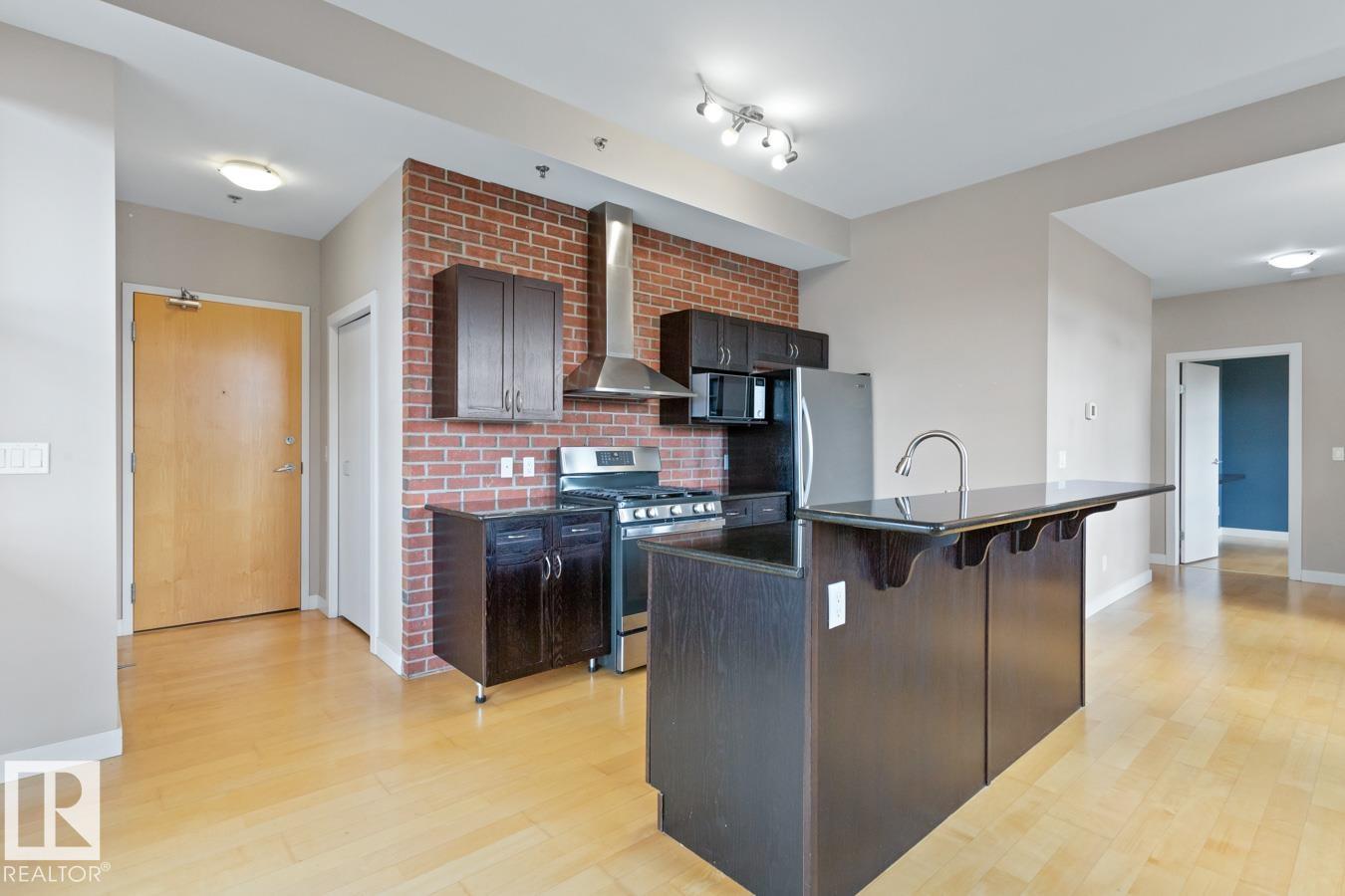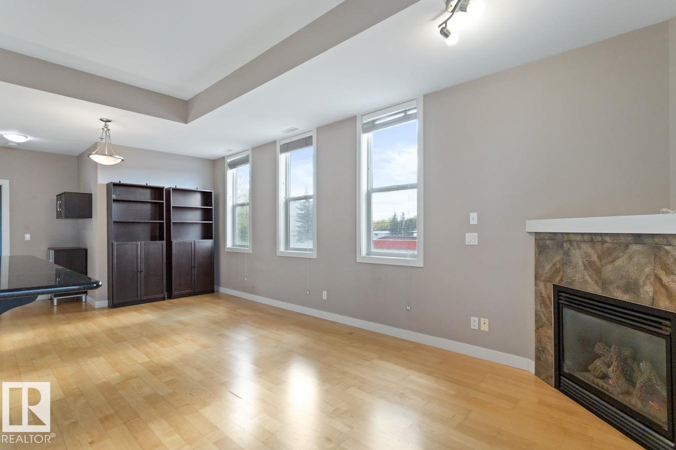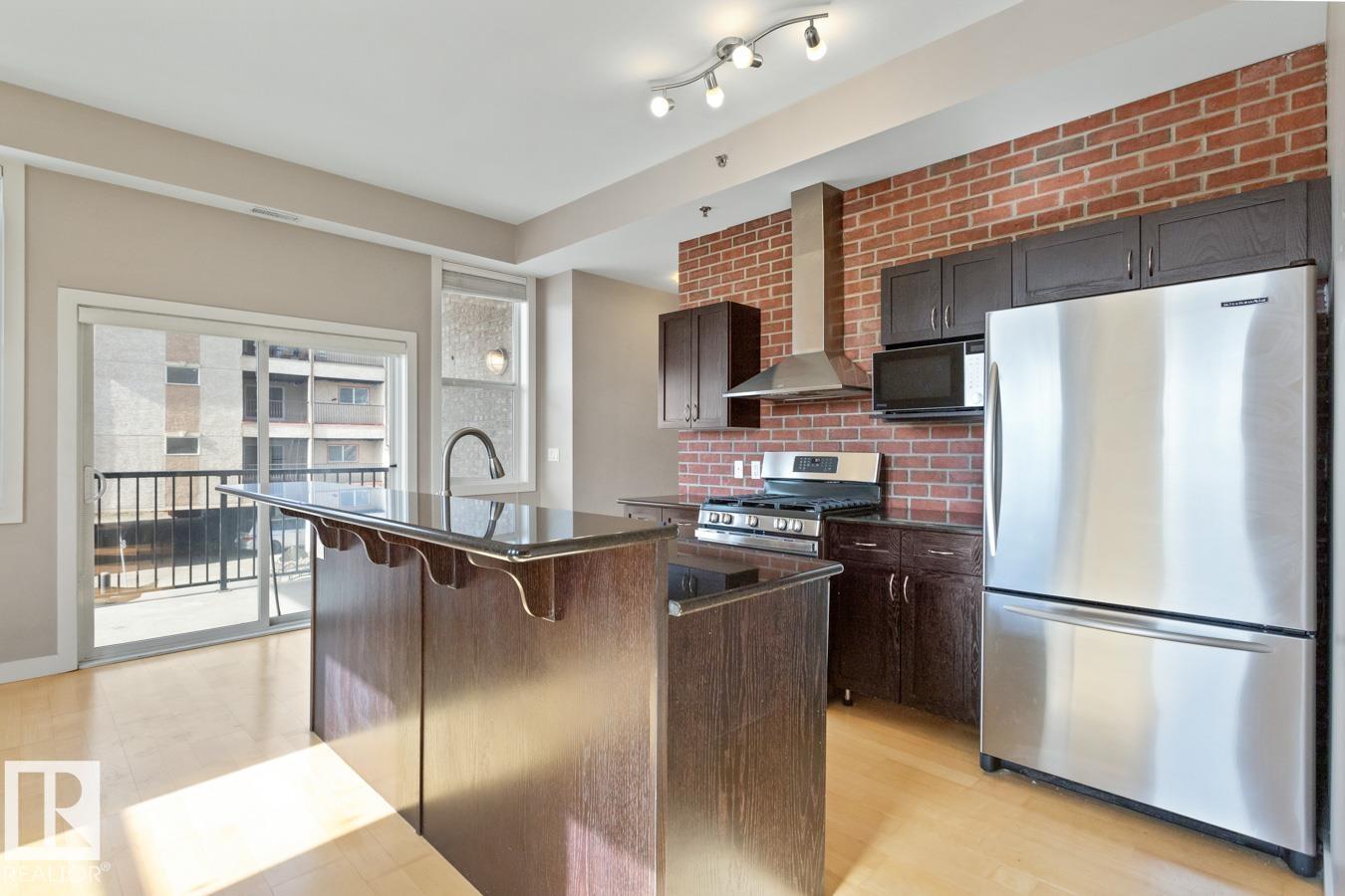 Welcome to this fantastic 1-bedroom condo in Strathcona! This contemporary building has only 14 units, offering a safe and comfortable feel. The suite has a spacious, open layout featuring 10ft ceilings and large windows that let in tons of natural light. The kitchen is bright and stylish, featuring a brick backsplash, stainless steel appliances, a professional-grade gas stove, and granite countertops. Enjoy the cozy gas fireplace in the winter months and the large, sunny west-facing balcony in the summer. The bedroom includes a spacious walk-in closet, while the generous in-suite laundry room offers additional storage space for your convenience. Plus, enjoy the added perks of a separate storage locker and your own titled, heated underground parking spot. Conveniently located just steps from Whyte Avenue, near the River Valley, University of Alberta, public transit, restaurants, shopping, and more!