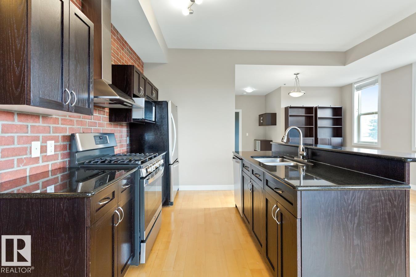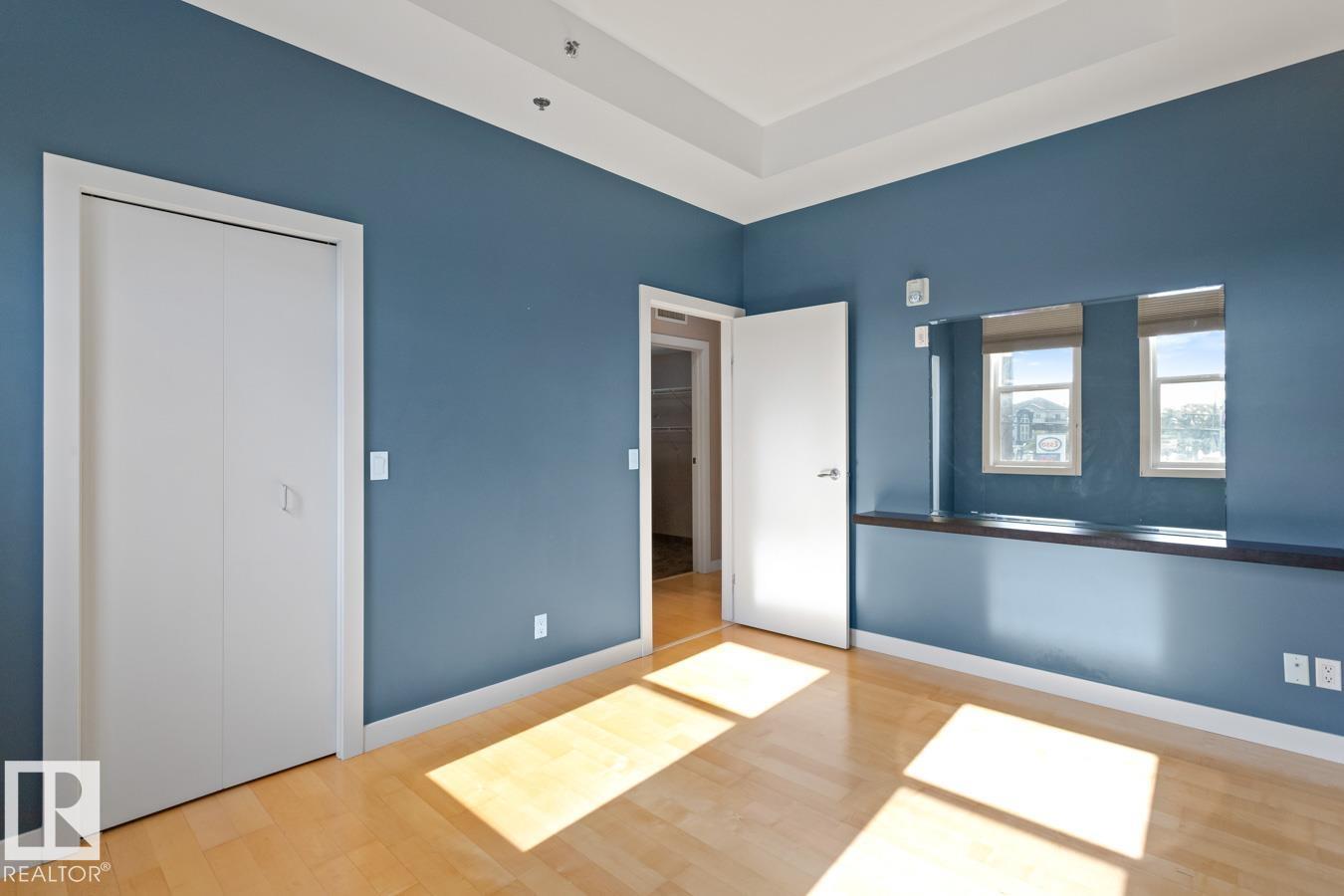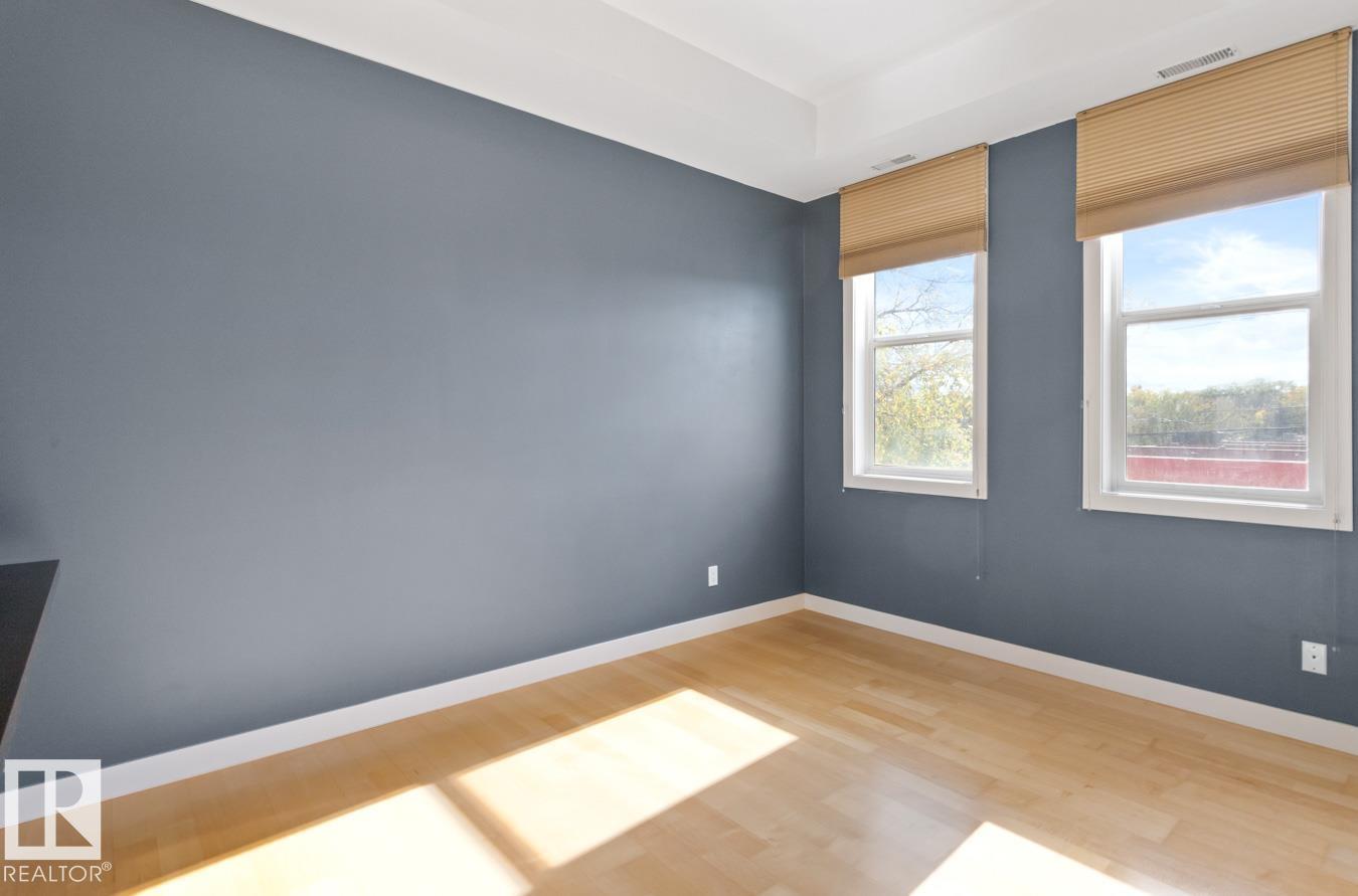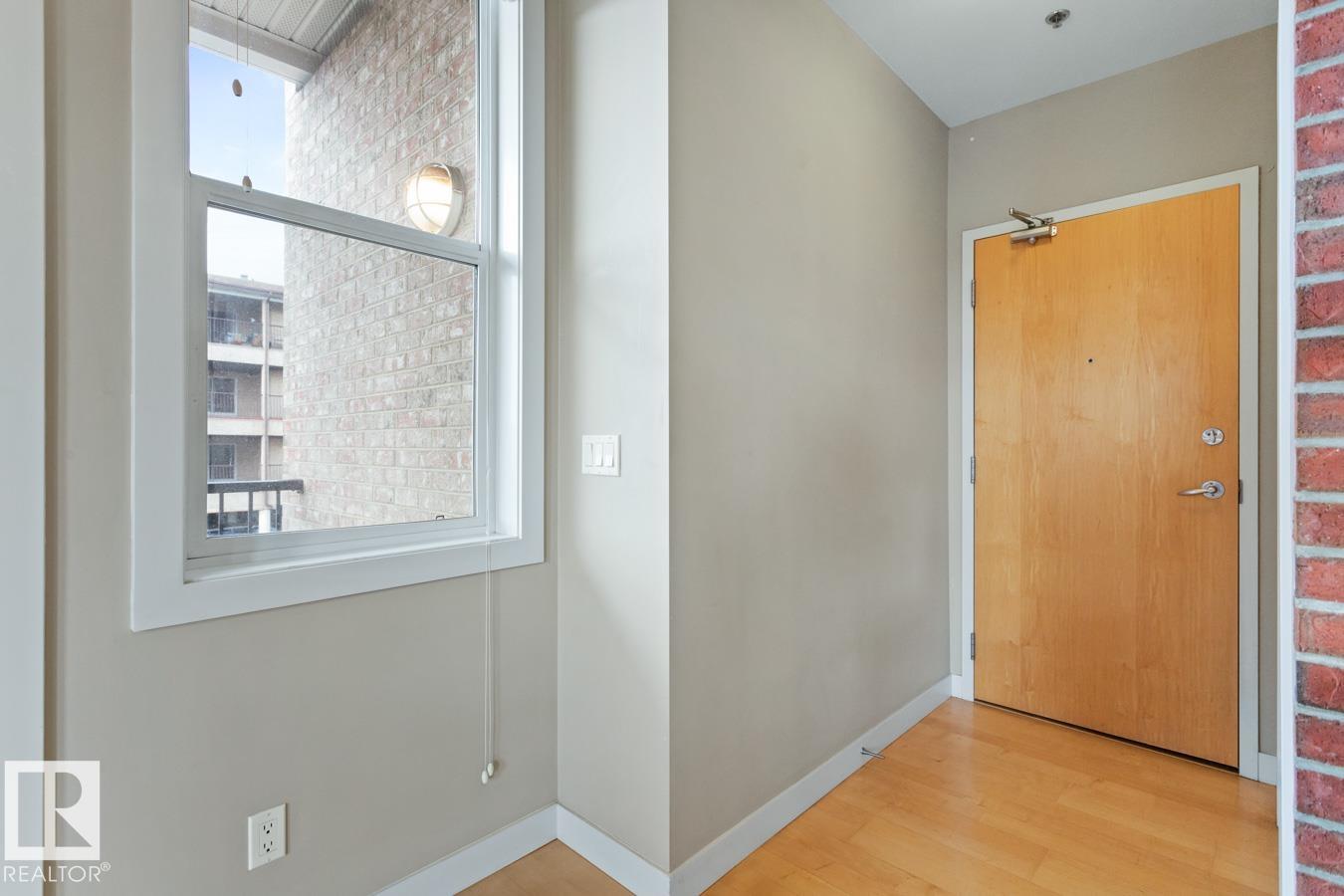 Welcome to this fantastic 1-bedroom condo in Strathcona! This contemporary building has only 14 units, offering a safe and comfortable feel. The suite has a spacious, open layout featuring 10ft ceilings and large windows that let in tons of natural light. The kitchen is bright and stylish, featuring a brick backsplash, stainless steel appliances, a professional-grade gas stove, and granite countertops. Enjoy the cozy gas fireplace in the winter months and the large, sunny west-facing balcony in the summer. The bedroom includes a spacious walk-in closet, while the generous in-suite laundry room offers additional storage space for your convenience. Plus, enjoy the added perks of a separate storage locker and your own titled, heated underground parking spot. Conveniently located just steps from Whyte Avenue, near the River Valley, University of Alberta, public transit, restaurants, shopping, and more!
