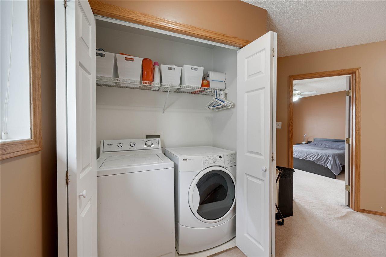 Bright and spacious 2-storey HALF DUPLEX with an EXCELLENT FLOOR PLAN in Belle Rive. The living room is OPEN and INVITING with MANY WINDOWS and a CORNER GAS FIREPLACE. It leads into the u-shaped kitchen with a dining area and AMPLE COUNTER/CUPBOARD space. Off to the side is a built-in desk area ideal for daily homework or as home office space. Enjoy the outdoors with a back sliding patio door that leads to your PRIVATE DECK. Upstairs are generous sized bedrooms, a full bath, and laundry. The master bedroom is complete with an en-suite and walk-in closet. Other features include NEW ROOF, A/C, and a large MUDROOM/STORAGE area on the lower level when entering from the double attached garage. Living in Belle Rive means you are a short distance from schools, shopping, and near by amenities. Easy access to transit and Henday provides quick access around the city. (id:22211)