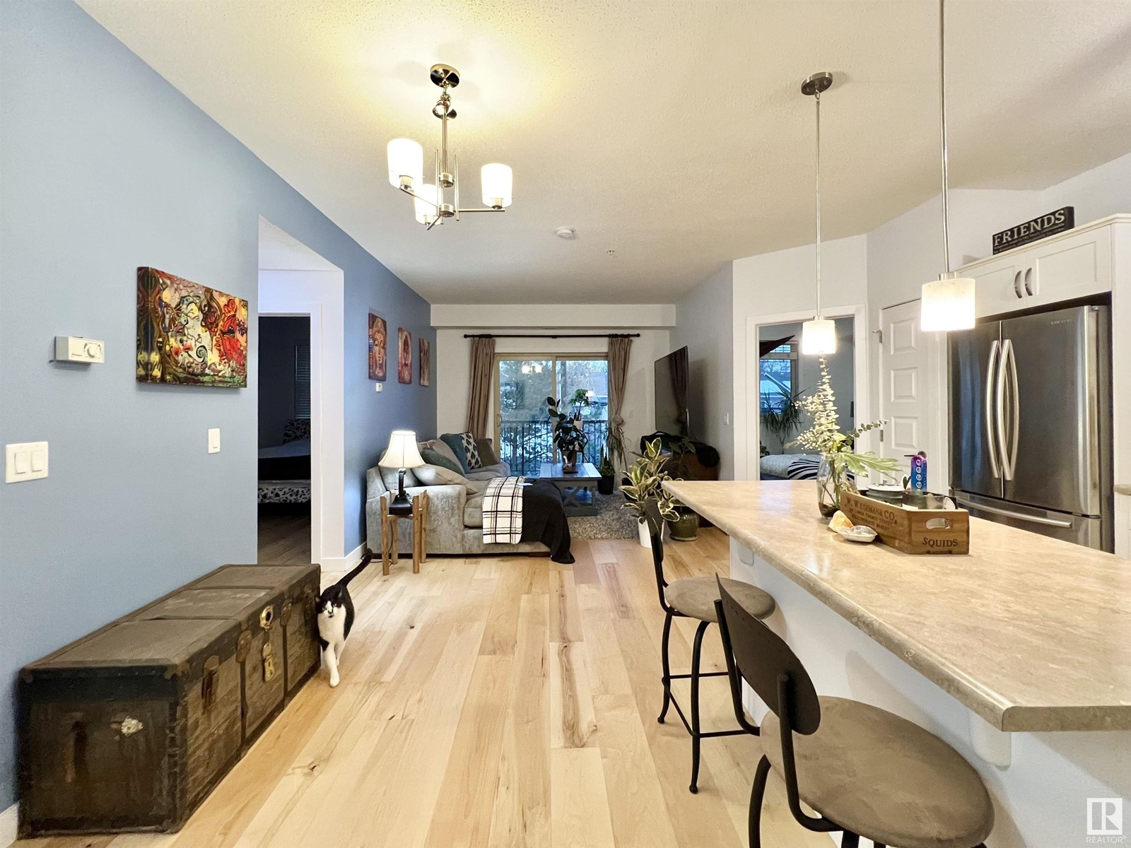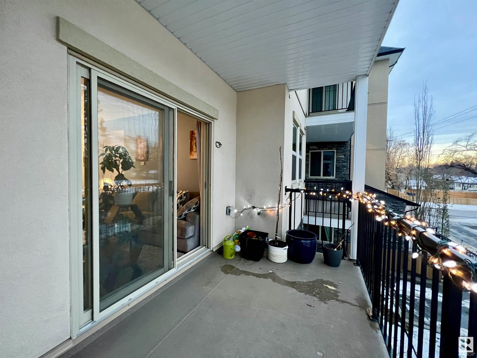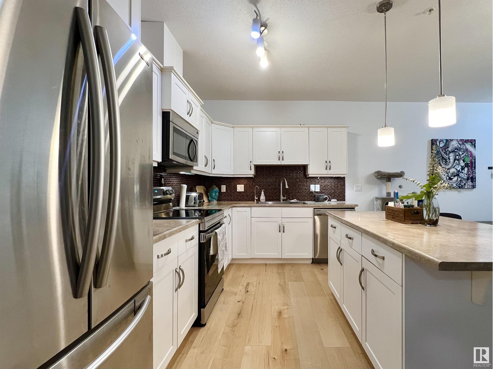 Welcome to the spacious luxury condos in the picturesque community of Bonnie Doon! This bright, open concept with tall ceiling unit is in perfect condition with pride and care throughout which has created beautiful, innovative living spaces. Offers 9 ft ceilings, 2 bedroom & 2 full baths, one assigned U/G parking (#60), A/C-central and In suite Laundry & storage. Open & spacious floor plan with white cabinetery, ss appliances, huge island with eating bar, glass backslash, porcelain tile floors & so much more. 2 larger sized bedrooms with plank flooring through out separated by the living room with own privacy. Patio doors just off the living room lead to a generous balcony with outlet. The ultimate in comfort and function, high-end developments feature thoughtful touches designed to make you feel at home. Walking distance to Whyte Avenue, Bonnie Doon Mall, Millcreek Ravine, and the future Bonnie Doon LRT Station. Minutes away from the University, River Valley, and Downtown. (id:22211)