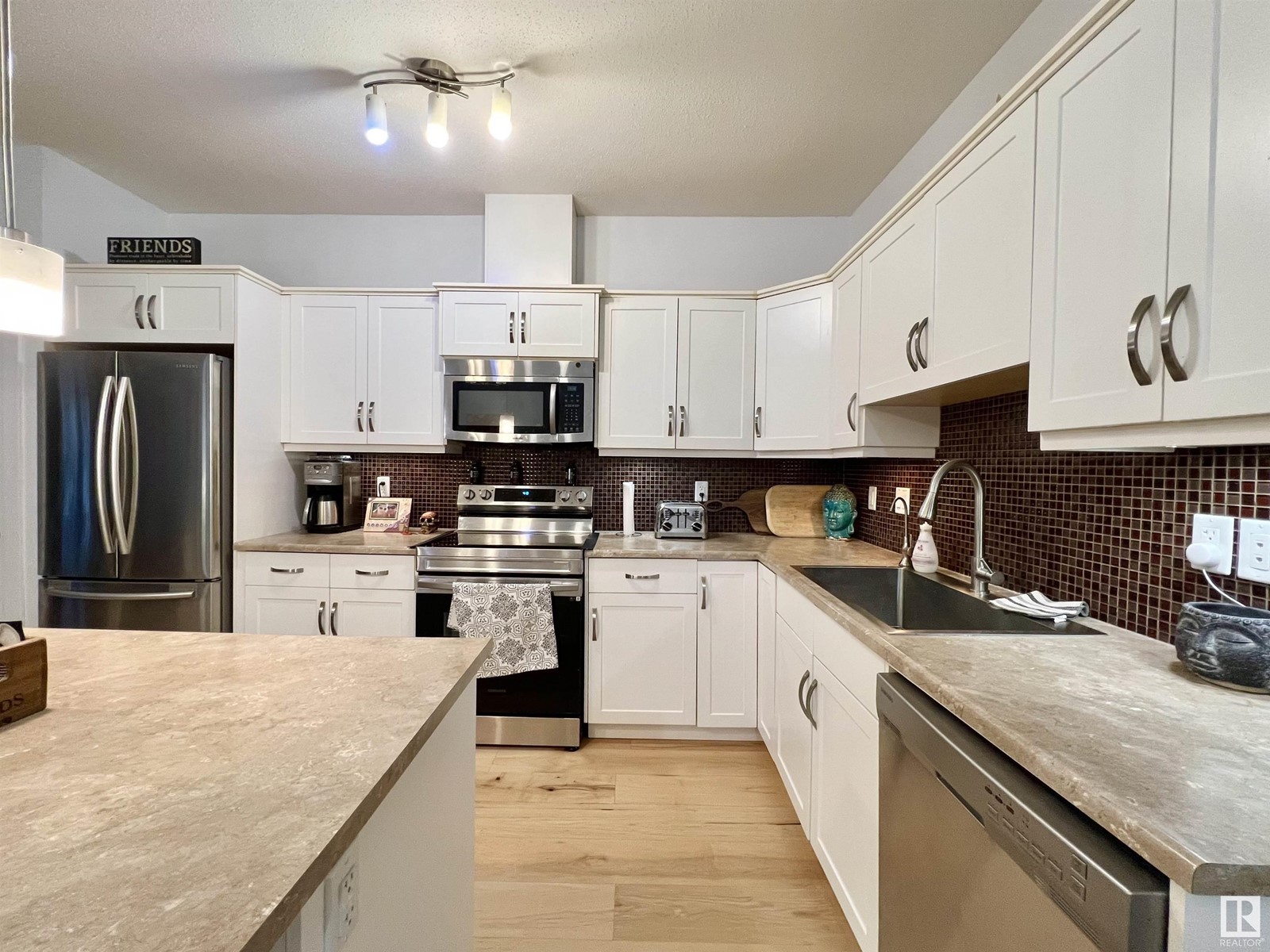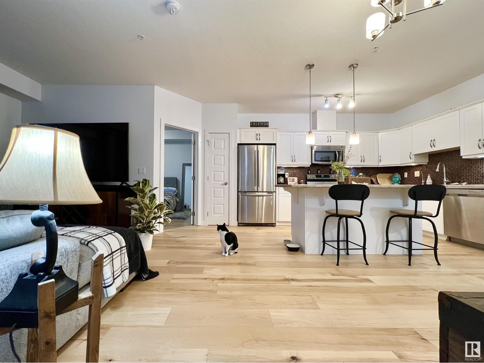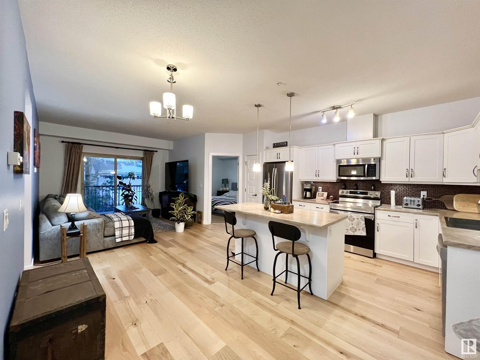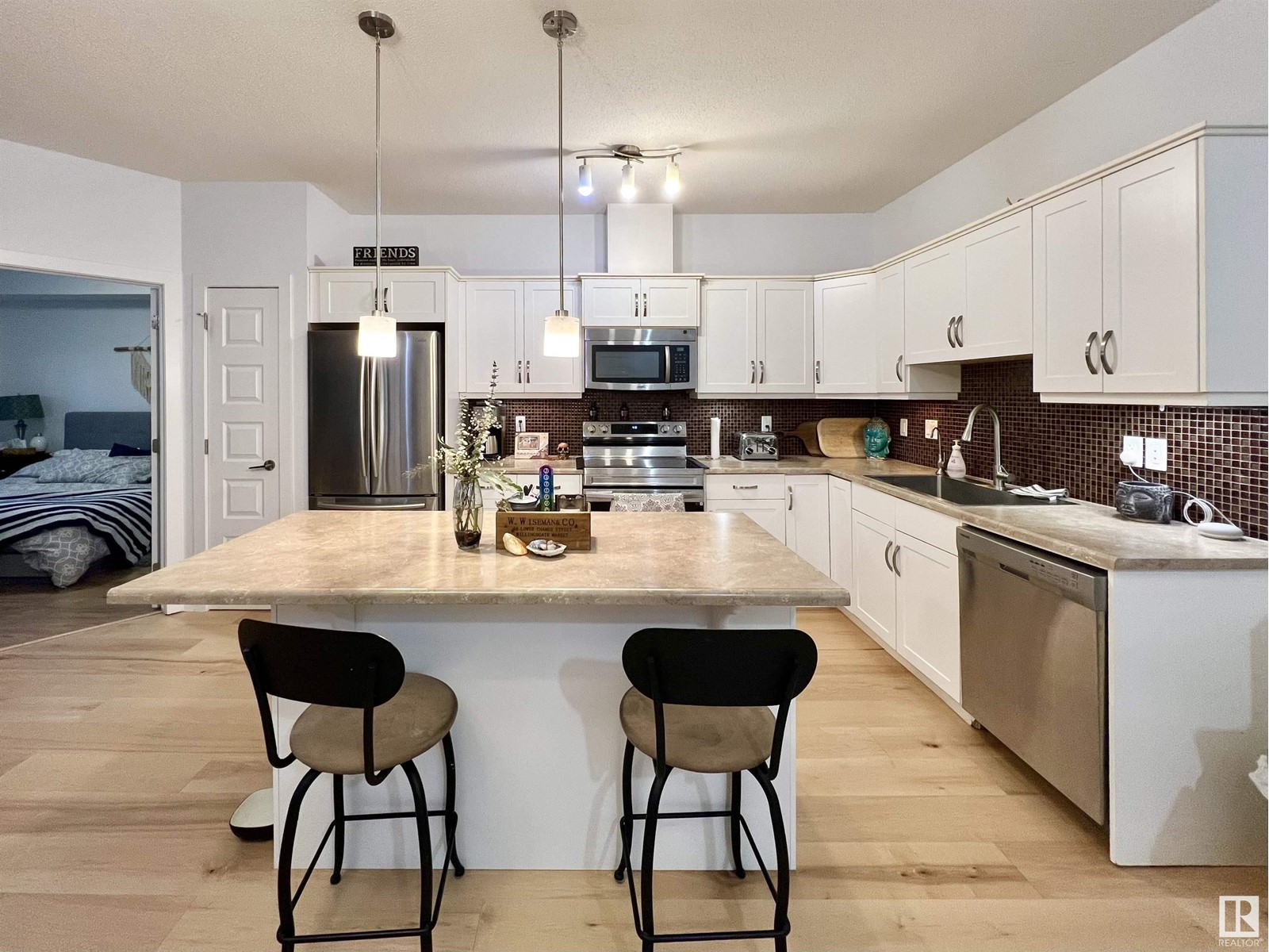 Welcome to the spacious luxury condos in the picturesque community of Bonnie Doon! This bright, open concept with tall ceiling unit is in perfect condition with pride and care throughout which has created beautiful, innovative living spaces. Offers 9 ft ceilings, 2 bedroom & 2 full baths, one assigned U/G parking (#60), A/C-central and In suite Laundry & storage. Open & spacious floor plan with white cabinetery, ss appliances, huge island with eating bar, glass backslash, porcelain tile floors & so much more. 2 larger sized bedrooms with plank flooring through out separated by the living room with own privacy. Patio doors just off the living room lead to a generous balcony with outlet. The ultimate in comfort and function, high-end developments feature thoughtful touches designed to make you feel at home. Walking distance to Whyte Avenue, Bonnie Doon Mall, Millcreek Ravine, and the future Bonnie Doon LRT Station. Minutes away from the University, River Valley, and Downtown. (id:22211)