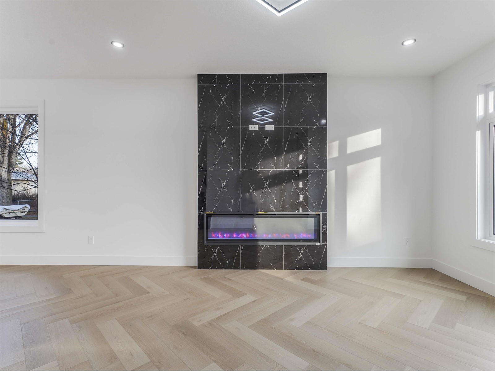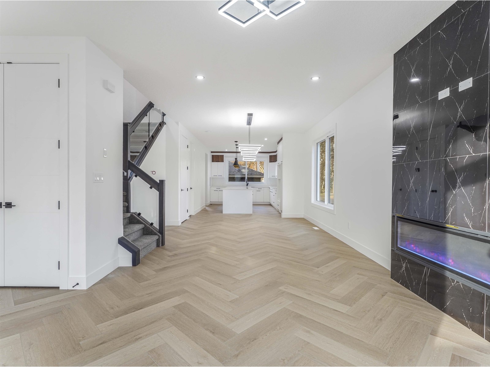 Centrally located in Idlywylde this executive built home is complete. Step inside to view the the open concept main floor living space with 9ft ceilings & vinyl plank flooring throughout. The front living space has large bright windows and a floor to ceiling electric fireplace with tile surround. The kitchen overlooks the yard & features an abundance of full height cupboards, quartz counter tops & an island with waterfall countertop. The dining space and main floor 2 pc bathroom complete this level. Upstairs includes the spacious primary master bedroom with walk in closet and 3 pc ensuite including a double tiled shower. There are 2 other good size bedrooms, bonus room, main bathroom & laundry closet. The unspoiled basement with side entry for suite potential, awaits your personal touch. Outside is a large deck, and double detached garage. Close to Vimy Ridge School, shopping, public transportation, parks etc. (id:22211)