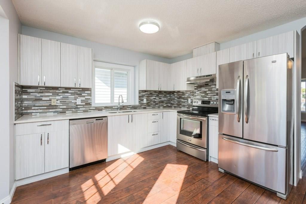 Beautiful, spacious ready to move in 4 bedrooms and 2 full bath with double attached garage is what your family is looking for! Featured high vaulted ceiling and spacious living room with large bay window, formal dining with elegant chandelier, brand new kitchen, quartz counter top through out, all stainless steel appliances, breakfast nook with patio that leads to an over-sized deck with a large yard with matured trees. Upstairs with 3 good sized bedrooms and a full bath. In the lower level family room with fireplace, bedroom and full bathroom with laundry room. Basement is fully finished with a large rec room. Recent upgrades included new paint, new kitchen, new doors and closets, new vanity, new garage door and a new over sized deck, all LED lightings, not to mention the newer windows, newer water tank and laminated floorings...the list goes on. Close to all amenities, shopping, transportation, lake, schools and park. Easy access to 97 ST and Anthony Henday. This is a must see on your list! (id:22211)