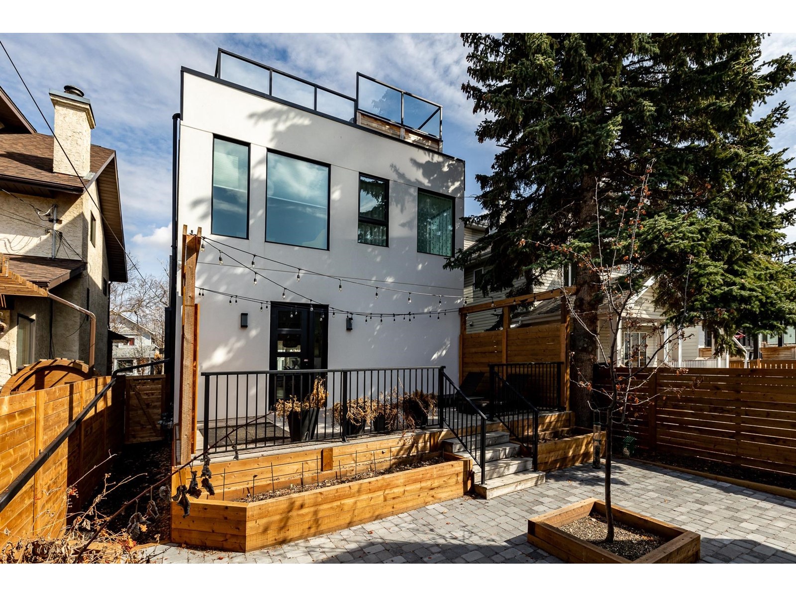 Panoramic downtown views & Meticulously designed with finishings thatll satisfy even the most discerning buyers hi-light this amazing home. A bright open floor plan, 10 ceilings & massive windows that flood the home with sunlight. The dream kitchen includes a Ceasarstone Suede waterfall island, Fulgor Milano Gas Cooktop, Liebherr built in fridge & freezer, butlers pantry W/ wine rack & beverage fridge! The dining room features a custom window seat, a gas fireplace. The artistic staircase invites you to an upper floor complete with a primary bedroom built like private oasis with an ensuite featuring an exquisite curbless shower and a soaker tub. 2 more bed rooms w/ Jack & Jill bath and laundry complete this floor. You wont believe the roof top patio where you can enjoy the lights of the Muttart pyramids and downtown Edmonton. Thats not all! The basement has a 2 more bedrooms & an ensuite, climbing wall, kids playhouse & above the double detached garage is a 1 bedroom suite that's generated $1400/month! (id:22211)