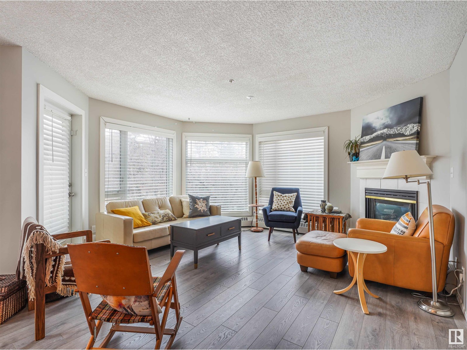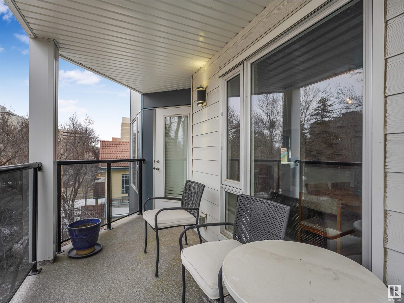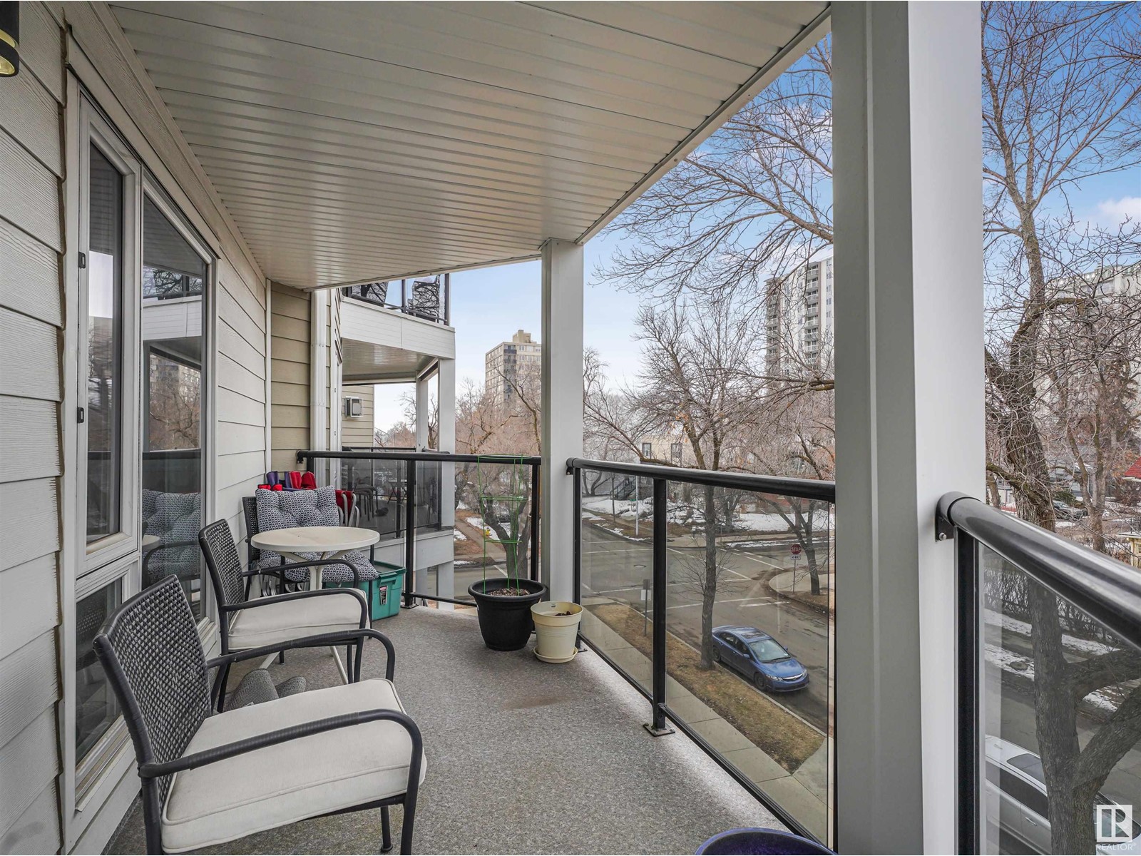 This fully renovated 18 PLUS condo building sits on a quiet tree-lined street across from a park in South Oliver. When you first walk up, you'll notice the new hardy board siding, new glass balconies plus new doors and windows which are still under warranty Check out this spacious open floor plan corner unit. This condo features 5 larger windows in the living & dining room allowing lots of natural light. Gas fireplace in the living room for those cool winter evenings. Entertaining size dining room.The bar type kitchen is open to the living and dining room and features lots of cupboards and counter space. NEW FLOORING THROUGHOUT.Good size master bedroom and a second bedroom or home office. Plenty of storage cupboards and full size washer & dryer in-suite. Garden door going onto a roomy west facing balcony. Underground heated parking. You will love the fact that within minutes you can walk to Grandin LRT station, Jasper Ave shopping & restaurants,River Valley walking trails,Kinsmen sports center and U OF A (id:22211)