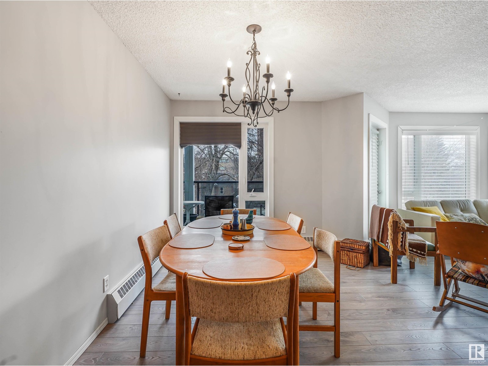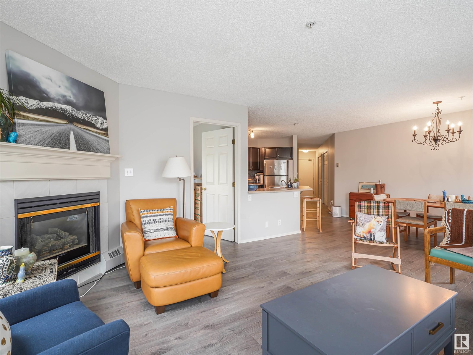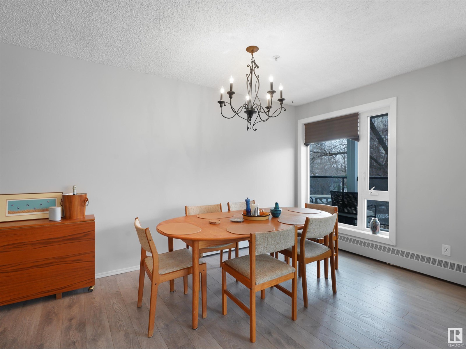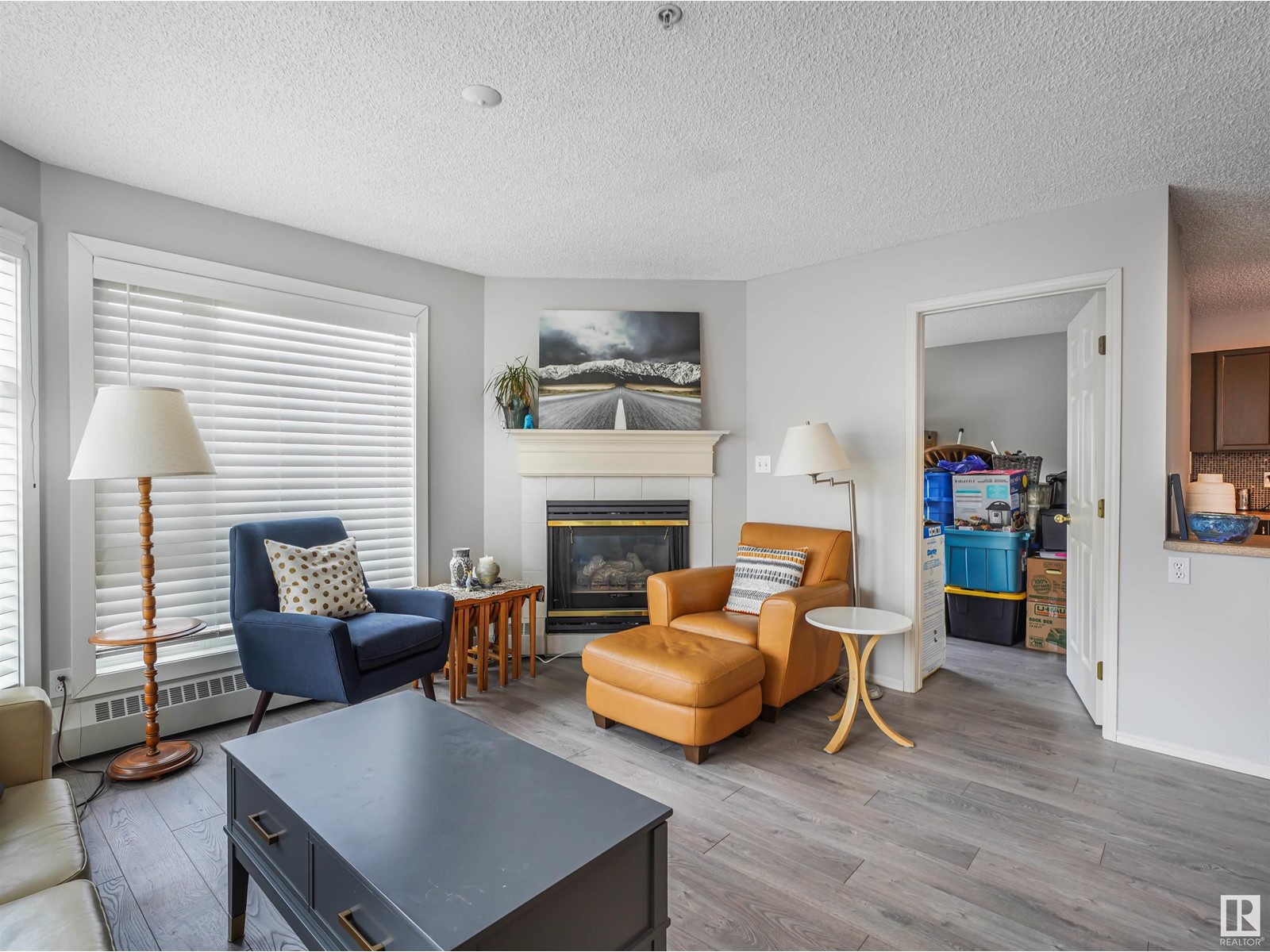This fully renovated 18 PLUS condo building sits on a quiet tree-lined street across from a park in South Oliver. When you first walk up, you'll notice the new hardy board siding, new glass balconies plus new doors and windows which are still under warranty Check out this spacious open floor plan corner unit. This condo features 5 larger windows in the living & dining room allowing lots of natural light. Gas fireplace in the living room for those cool winter evenings. Entertaining size dining room.The bar type kitchen is open to the living and dining room and features lots of cupboards and counter space. NEW FLOORING THROUGHOUT.Good size master bedroom and a second bedroom or home office. Plenty of storage cupboards and full size washer & dryer in-suite. Garden door going onto a roomy west facing balcony. Underground heated parking. You will love the fact that within minutes you can walk to Grandin LRT station, Jasper Ave shopping & restaurants,River Valley walking trails,Kinsmen sports center and U OF A (id:22211)