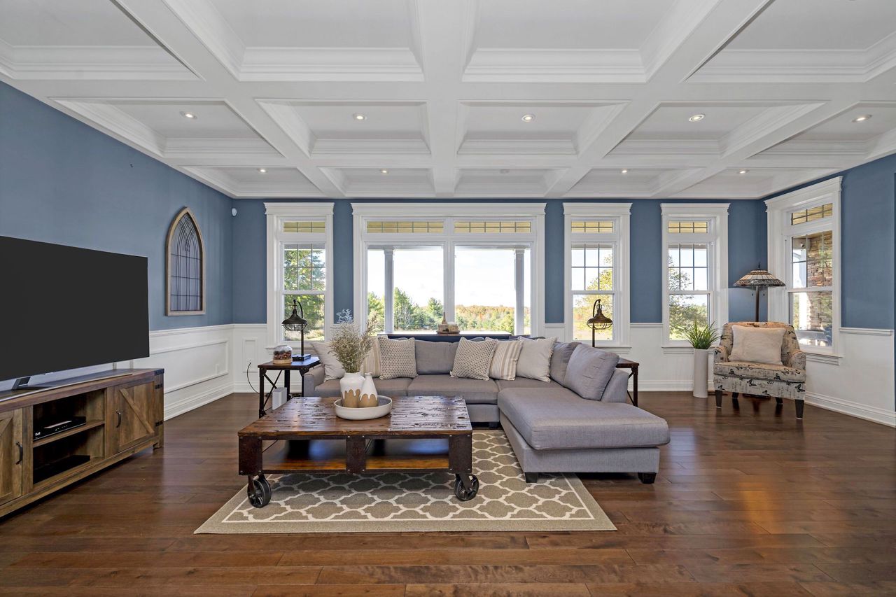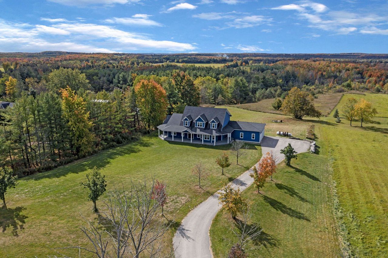 Well, it doesn’t come along very often, but lucky for you, it has. Just over 2 acres, but with a view of 20. This sensational 7-year-old custom build was designed with every detail thought through. Sensational custom kitchen opening to great room with coffered ceilings, custom cabinetry, hardwood floors and marble countertops, over 6000 square feet of living space. An incredible layout with main floor primary room, and a walk-in closet designed for a princess. Upstairs are 3 generous bedrooms with lovely decor and a modern family bathroom. Head on down to the lower level for the "ready for Saturday night" media room, HUGE rec room and basement gym (currently used as a play room), plus shower/bathroom attached. There are not enough spaces to talk about this gorgeous offering, it MUST be seen to appreciate.HE Furnace & AC, Spray Foam Insulation, 50 Year Shingles, Composite Deck, Paved Driveway, Graff Fixtures, Crown Moulding Throughout, Washer & Dryer (2022), GDO x2 (2022), Generator (2022), Hot Tub (2016)