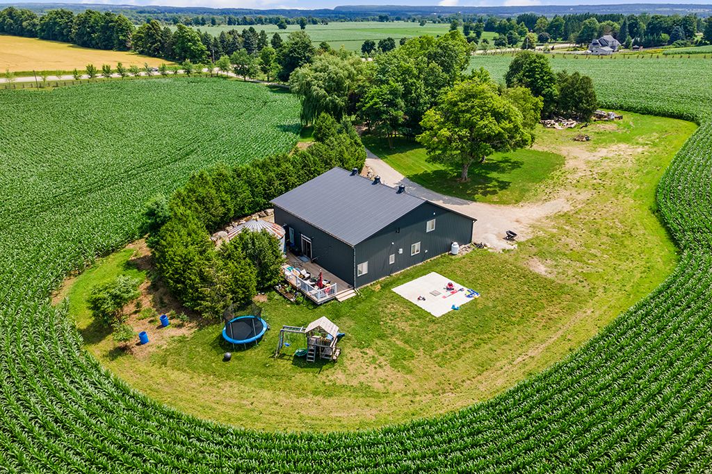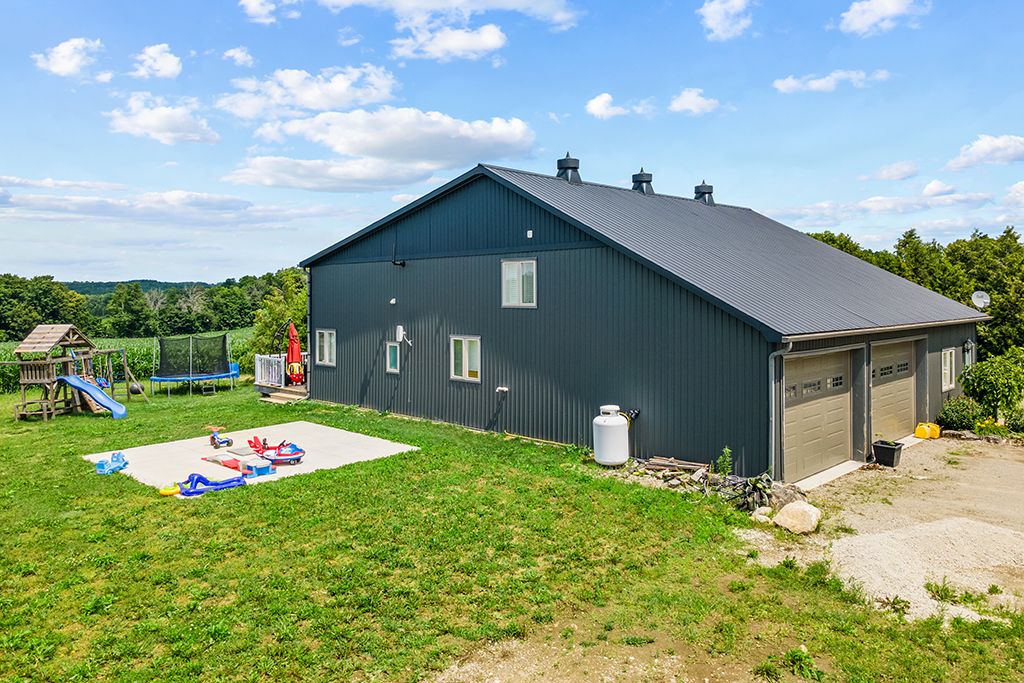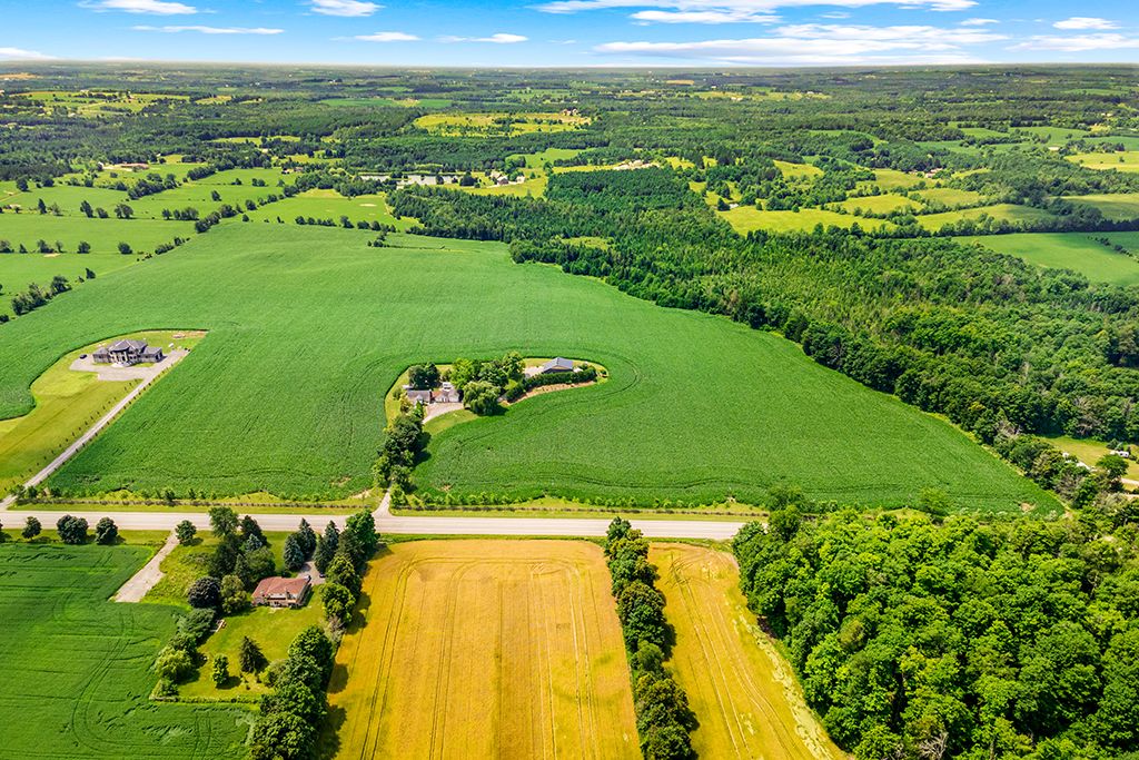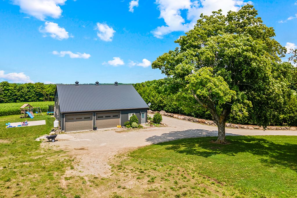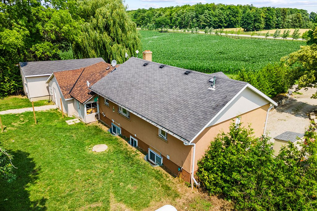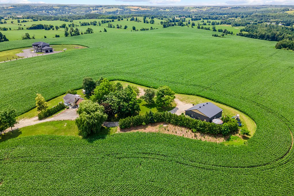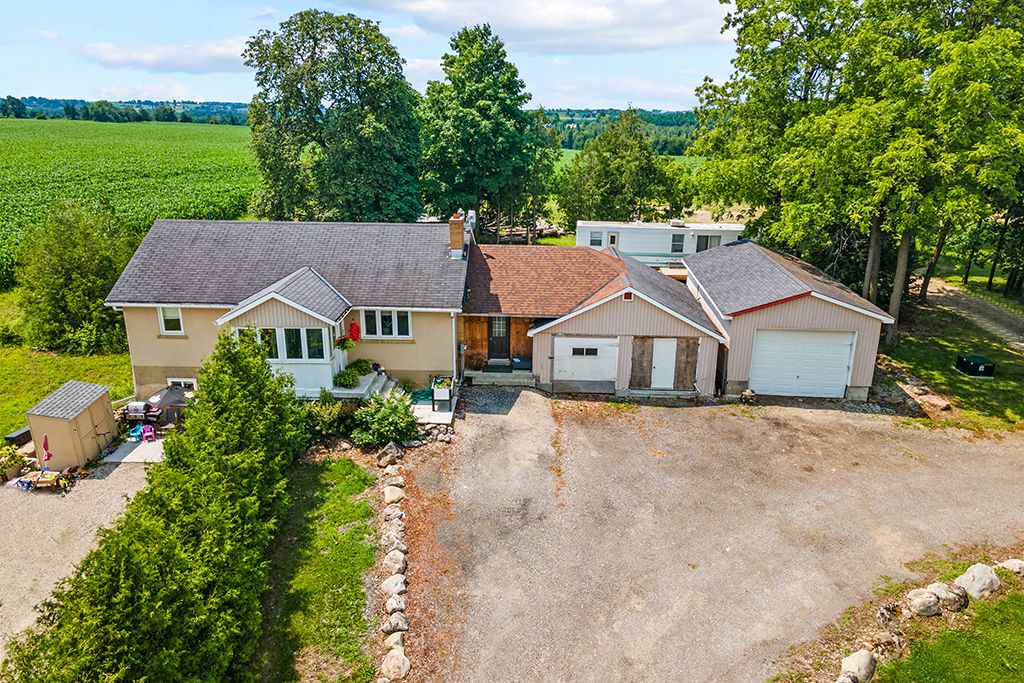 75 acre farm located on a quiet paved road just outside of downtown Erin. ~ 50 arable acres leased year to year at $150/acre. The workshop was reclad, spray foam insulated and converted to elegant living space ~10 years ago. The main level offers soaring 10 foot ceilings, engineered hardwood or ceramic floors, & a spacious den/home office with convenient separate entrance. The open concept kitchen offers abundant cabinetry, backsplash, island & granite counters & the dining room has a walk out to the 14' x 30' BBQ deck. All trim and doors are Poplar. There is also a 2-car garage with storage loft.Bungalow has two self contained 2 bedroom units with excellent tenants willing to stay. Each unit has separate entrance, parking, laundry, hydro meter & propane tank. This house was gutted to the studs ~ 8 years ago. Septic ~5 years new.