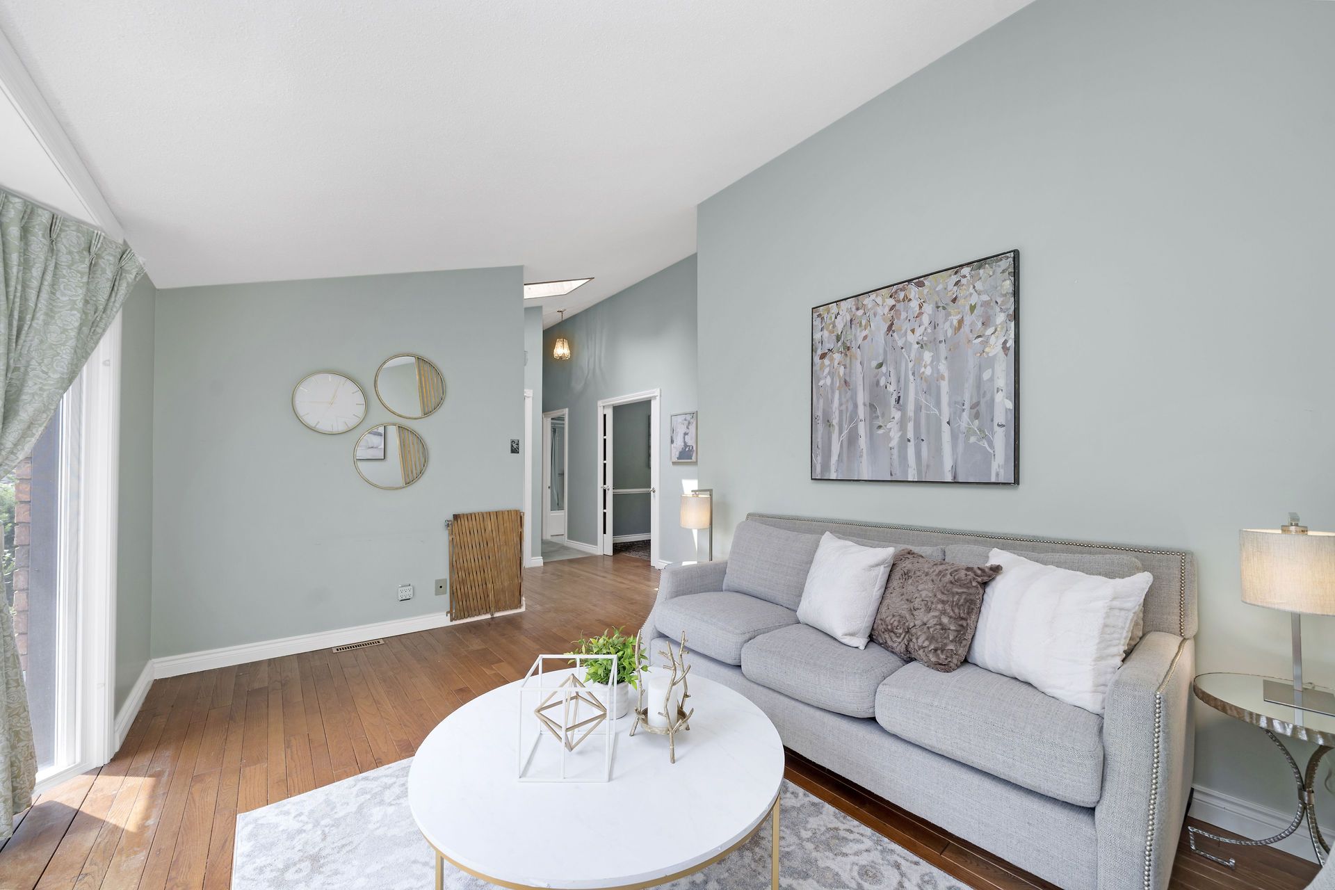 Hardwood Floor Bow Window Vaulted Ceiling