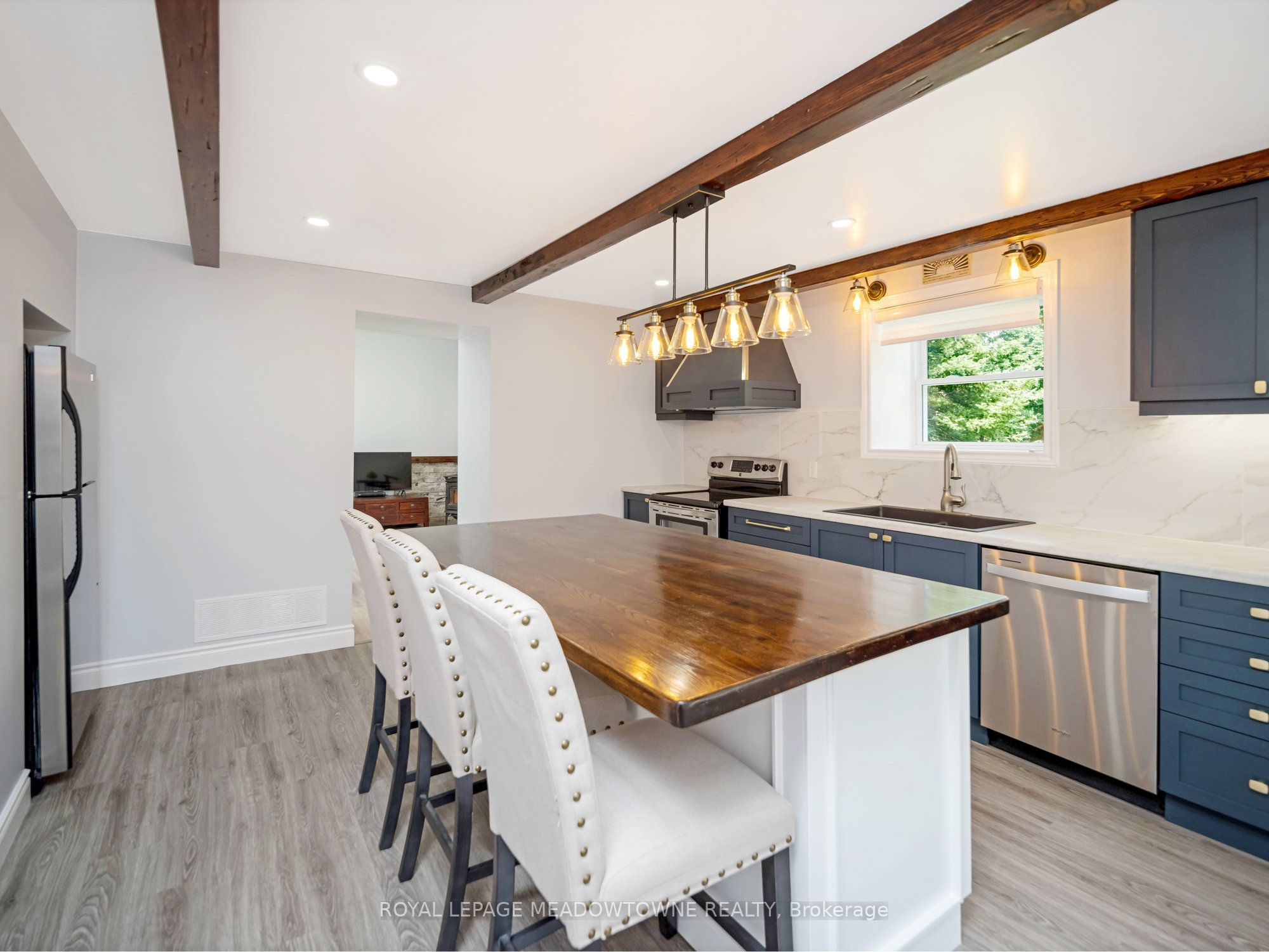 Are you looking for a private country property close to town with a shop? Your search ends here! This Absolutely gorgeous fully renovated century home with addition is just minutes to Georgetown. The home is completely renovated and features two large bedrooms, primary offering his and hers double closets, two bathrooms, stunning chefs kitchen with large island, wood beams on ceiling, pot lights, stainless steel appliances and porcelain backsplash. The main level further features large formal dining room for those family gatherings and a living room with woodstove, pot lights and walk-out to landscaped concrete patio, firepit and property. House roof shingles 2022. The detached two car garage/shop measuring 18.5 ft x 32.5 ft was re-built in 2011 with 2 x 8 walls and is fully insulated offers 40 amps of electrical service, electric baseboard heat, storage loft, windows and much more!