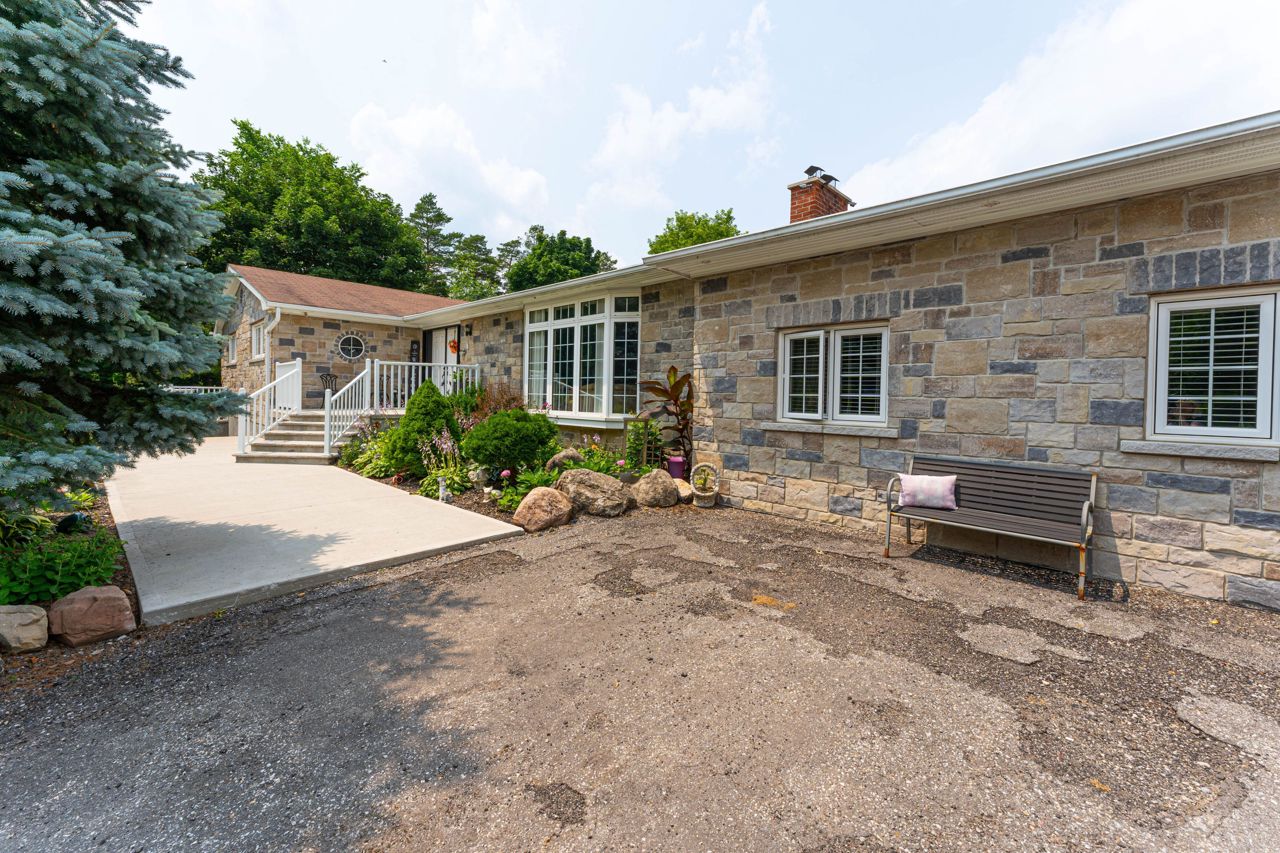 Welcome to this gorgeous country property Nestled On Secluded Picturesque 9 Acres (Approx), Only Minutes F/ Georgetown & Brampton. Well Set-Back F/Road W/Very Large Circular Driveway And 35 X 26 Ft Heated Double Car Garage. 3 Bedroom Bungalow Plus Den, Offers Main Level Open Concept Living Area, 2 Master Ensuites, 3 Full Baths On M/Level, Separate entrance to the finished basement , Offering Plenty Of Additional Living Space, Has Rec. Rm, 2 bedrooms , Eat In Kitchen, 4Pc Bath & Laundry Rm. Outdoor Big Patio, Out Door Swimming Pool, Out Door Bar with Washroom and Storage Area, New Windows , New Roof, New 2 Furnace and A/C Unit