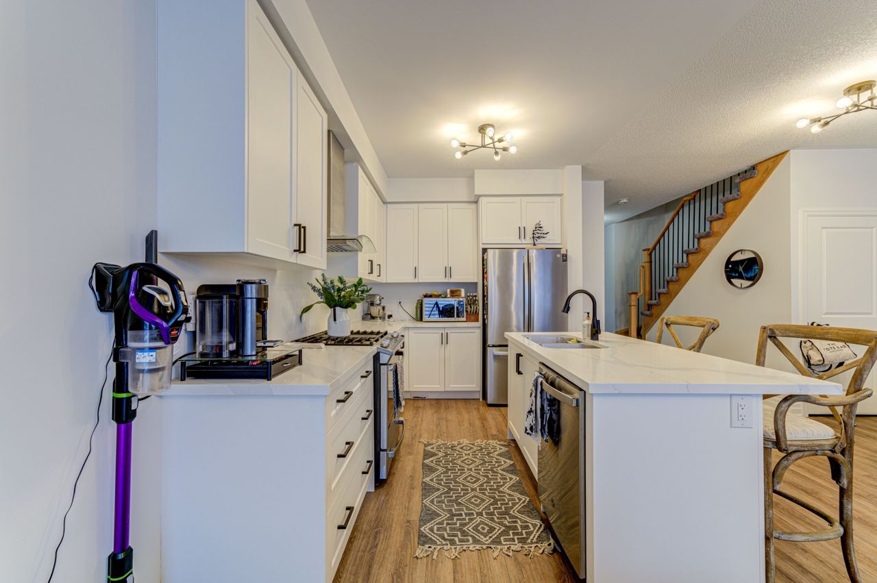 THIS UPGRADED TOWNHOUSE WAS BUILT NEW IN 2021 BY LANCASTER HOMES AND ITS LOCATION CONNECTS DIRECTLY TO A TRAIL SYSTEM THROUGH THE BOB GEDDES PARK WITH DIRECT ACESS TO THE NOTTAWASAGA RIVER FOR CANOEING, KAYAKING, PADDLE BOARDING, & FISHING. KNOWN AS 'THE TULIP' MODEL THIS HOME IS BRIGHT AND MODERN FEAUTURING 3 BEDROOMS AND 2.5 BATHROOMS WITHIN 1560 SQ. FT. OF FINISHED LIVING AREA, PLUS A FULL UNFINISHED BASEMENT, AND INSIDE ETRY TO GARAGE. WHITE KITCHEN INCLUDES ALL STAINLESS STEEL GE APPLIANCES. (INCLUDING A GAS RANGE STOVE WITH STAINLESS CROWN HOOD), QUARTZ COUNTERTOPS, ADDED POTS & PANS DRAWERS, BLACK HADWARE, AND A FRIDGE CABINET ENCLOSURE. THE MAIN LEVEL FLOORING WAS UPGRADED TO A VERY DURABLE AND COSMETICALLY APPEALING VINLY PLANK, PLUS 70/30 (BRICK) PATTERN TILES IN THE WASHROOMS/LAUNDRY ROOM, AND UPGRADED 12X16 TILES IN THE PRIMARY ENSUITE WALK-IN GLASS SHOWER. NATURAL GAS LENNOX FURNACE, CENTRAL AIR CONDITIONING, HRV, WATTS EXPANSDION TANK + DRAIN WATER HEAT RECOVERY SYSTEM.THE HONE COMES WITH THE WASHER/DRYER BEING STORED IN THE BASEMENT (BRAND NEW, FULL SIZE TOP LOAD WASHER AND DRYER).TENANT OWNS THE WASHER/DRYER IN THE MAIN FLOOR LAUNDRY ROOM AND WILL BE TAKING THEM UPON MOVING.**THE LAKELANDS R. E. ASSOC**