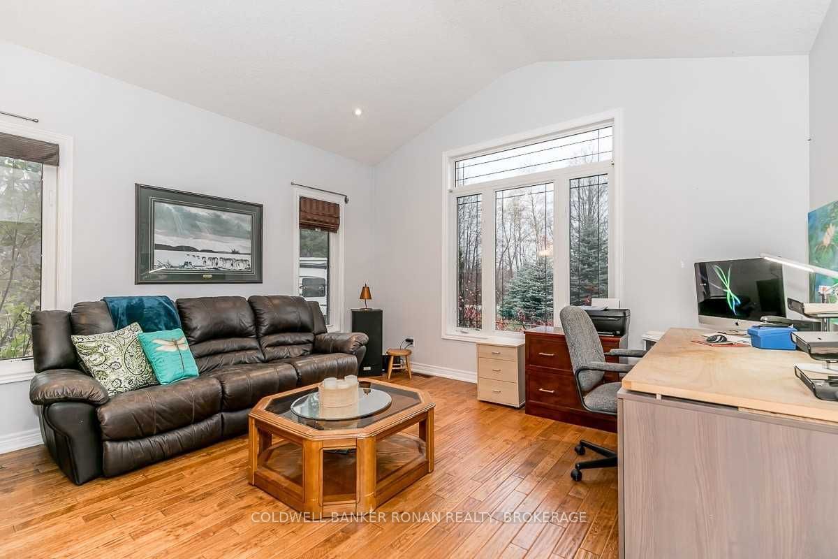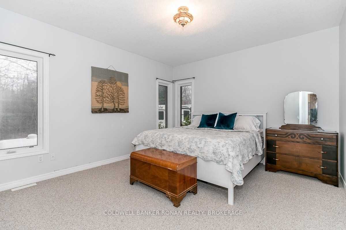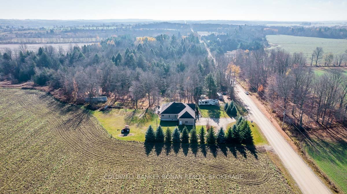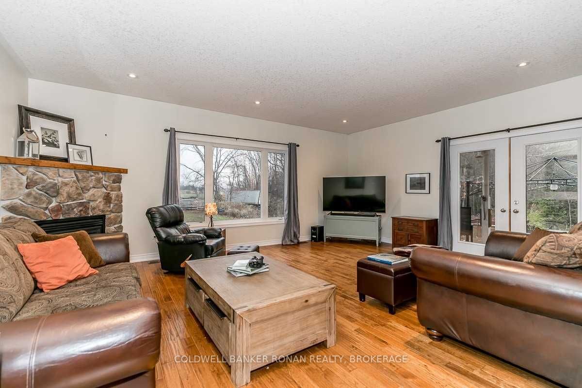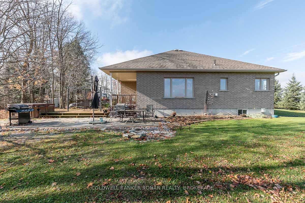Brick Bungalow On 1.9 Acres. Located On A Quiet Country Road Just West Of Egbert In Essa Township. Short Drive To All Amenities Of Both Barrie & Alliston, And Only 11 Minutes To Honda. This Property Offers Peace And Tranquility With Plenty Of Open Yard Space And Large Forested Area With Stream Running Through It. The Home Presents An Open Concept Main Living Area With Tile And Hardwood Flooring In The Main Areas, A Spacious Kitchen Showcasing Granite Counter Tops And S/S Appliances, Living Room With Vaulted Ceiling, Stone Fireplace, Huge Bay Window And French Doors Leading To A Private Deck & Patio With Hot Tub. Two Large Bedrooms + Main Floor Den Which Could Easily Be A 3rd Bedroom. Two Car Garage With Interior Access To House. Sprawling Basement To Finish To Your Liking/Needs. Covered Front Porch, And Plenty Of Parking For Rv's, Toys And Trailers.