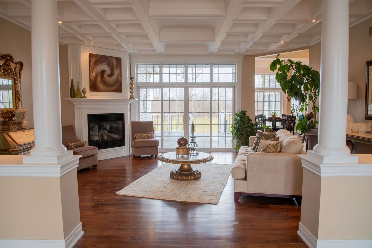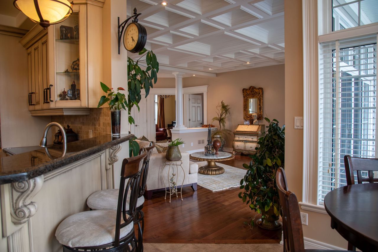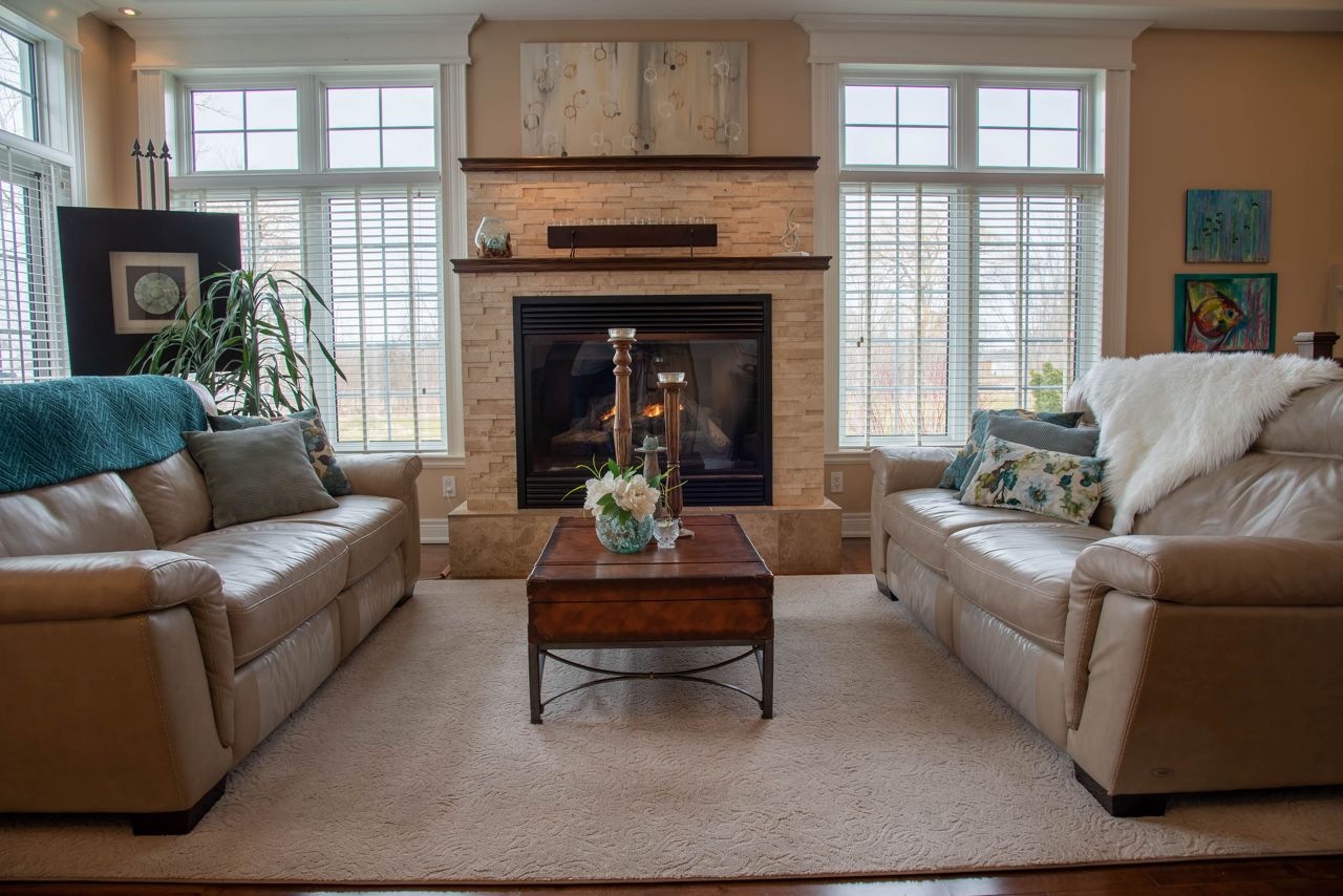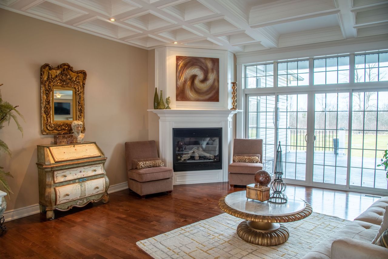 This stunning 3140 Sq. Ft. One of a Kind home features 10-foot recessed ceilings, a stunning coffered ceiling, and rich hardwood floors. The open concept design flows seamlessly into the family/dining room, with the largest fireplace and mantle, another patio door, and separate rear entrance. The chef's kitchen boasts granite countertops, custom cabinets, 7 burner Viking gas stovetop with commercial grade fan, double oven, and side-by-side fridge/freezer. The massive master suite offers a large ensuite, walk-in-closet, 3-sided fireplace, and patio door. The home office can be converted into a 4th bedroom and offers a professional atmosphere for clients. Two additional bedrooms and 4-piece bathroom create a separate wing for guests. The clean unfinished basement has rough-ins for bathrooms and plenty of storage space.