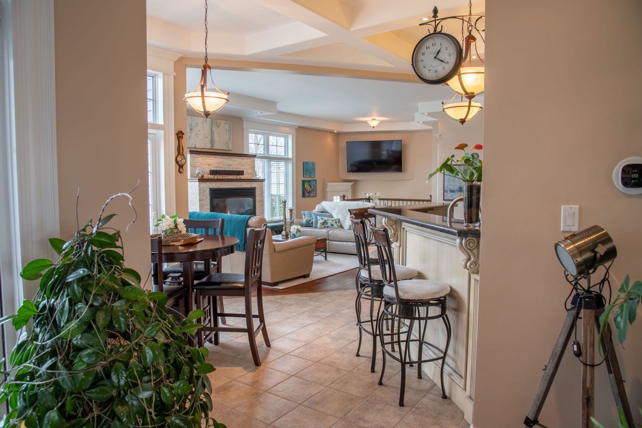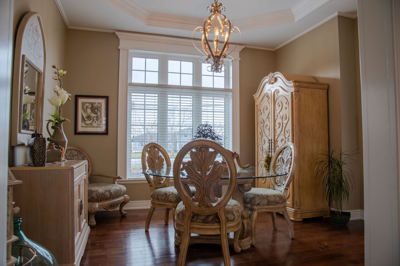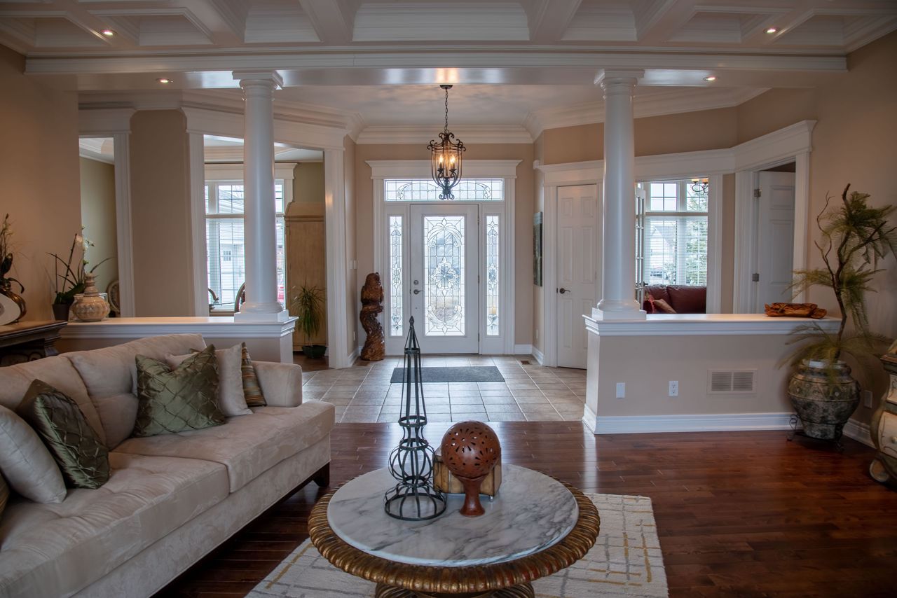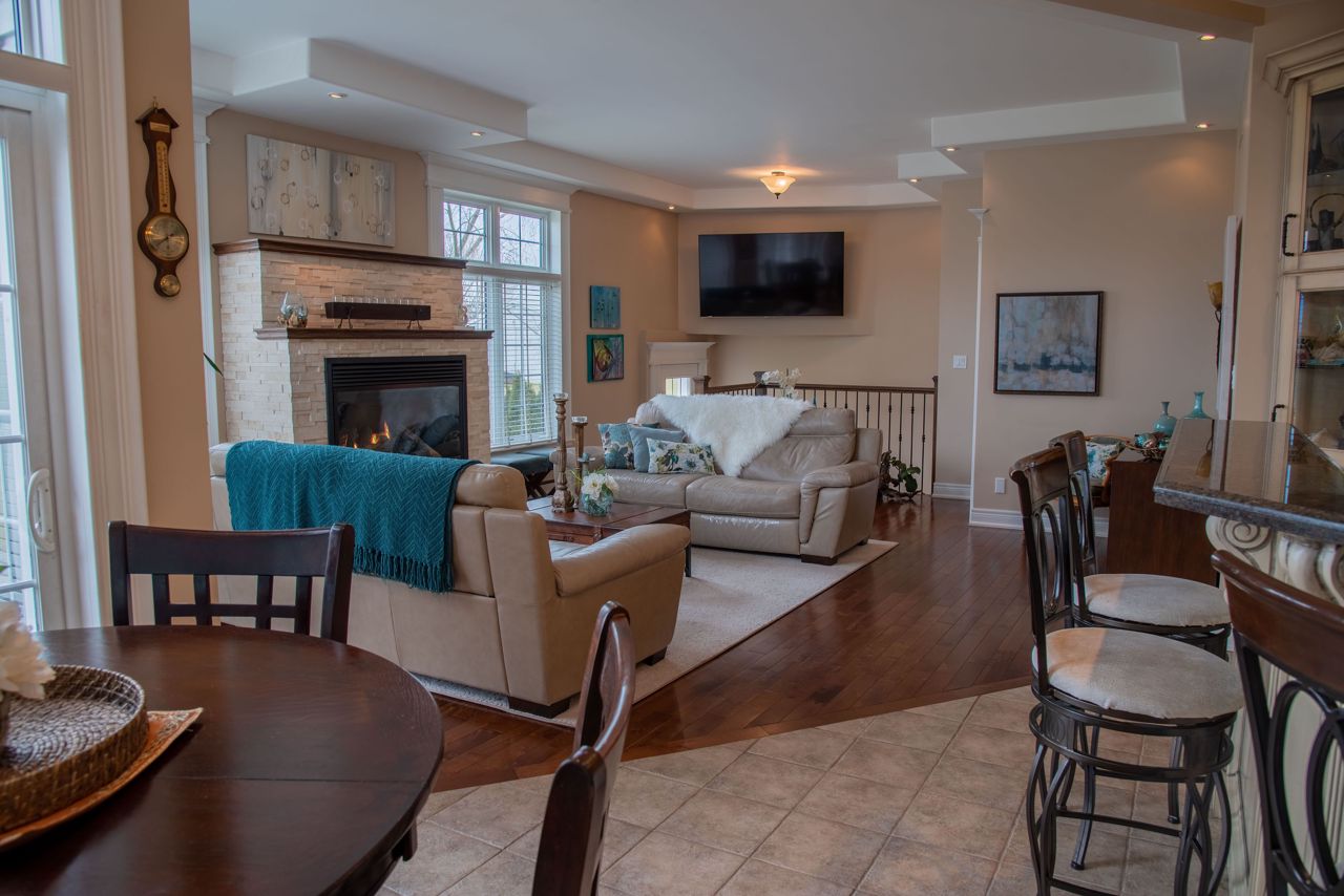 This stunning 3140 Sq. Ft. One of a Kind home features 10-foot recessed ceilings, a stunning coffered ceiling, and rich hardwood floors. The open concept design flows seamlessly into the family/dining room, with the largest fireplace and mantle, another patio door, and separate rear entrance. The chef's kitchen boasts granite countertops, custom cabinets, 7 burner Viking gas stovetop with commercial grade fan, double oven, and side-by-side fridge/freezer. The massive master suite offers a large ensuite, walk-in-closet, 3-sided fireplace, and patio door. The home office can be converted into a 4th bedroom and offers a professional atmosphere for clients. Two additional bedrooms and 4-piece bathroom create a separate wing for guests. The clean unfinished basement has rough-ins for bathrooms and plenty of storage space.