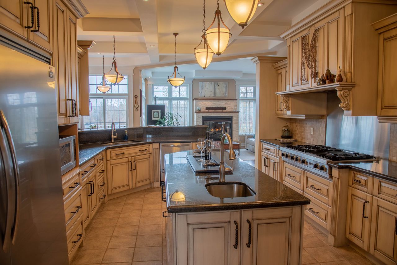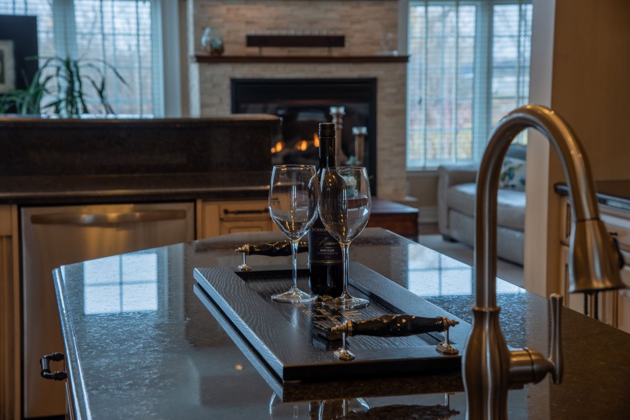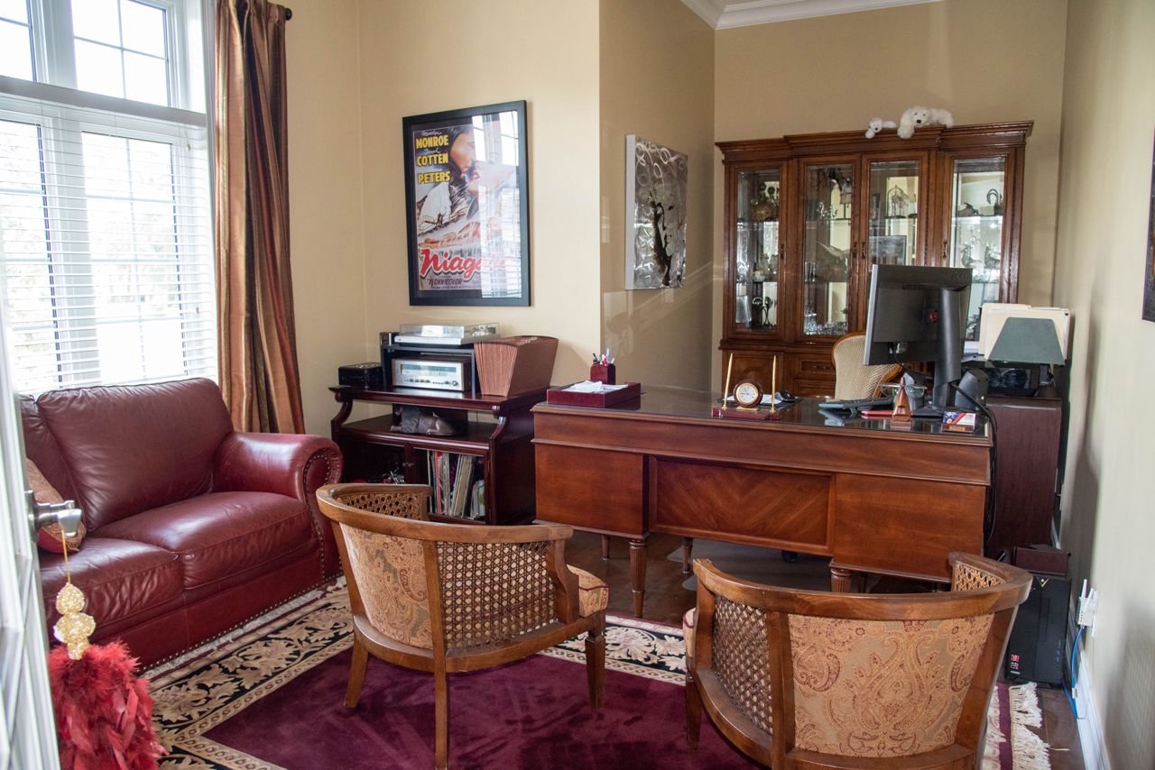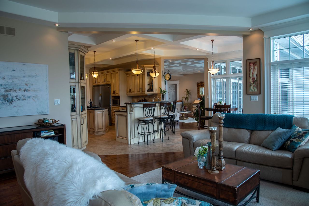 This stunning 3140 Sq. Ft. One of a Kind home features 10-foot recessed ceilings, a stunning coffered ceiling, and rich hardwood floors. The open concept design flows seamlessly into the family/dining room, with the largest fireplace and mantle, another patio door, and separate rear entrance. The chef's kitchen boasts granite countertops, custom cabinets, 7 burner Viking gas stovetop with commercial grade fan, double oven, and side-by-side fridge/freezer. The massive master suite offers a large ensuite, walk-in-closet, 3-sided fireplace, and patio door. The home office can be converted into a 4th bedroom and offers a professional atmosphere for clients. Two additional bedrooms and 4-piece bathroom create a separate wing for guests. The clean unfinished basement has rough-ins for bathrooms and plenty of storage space.