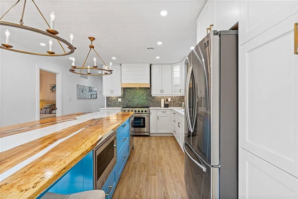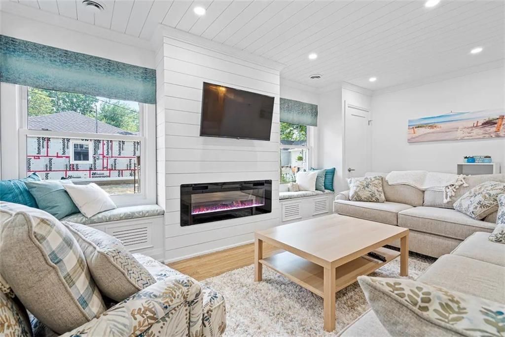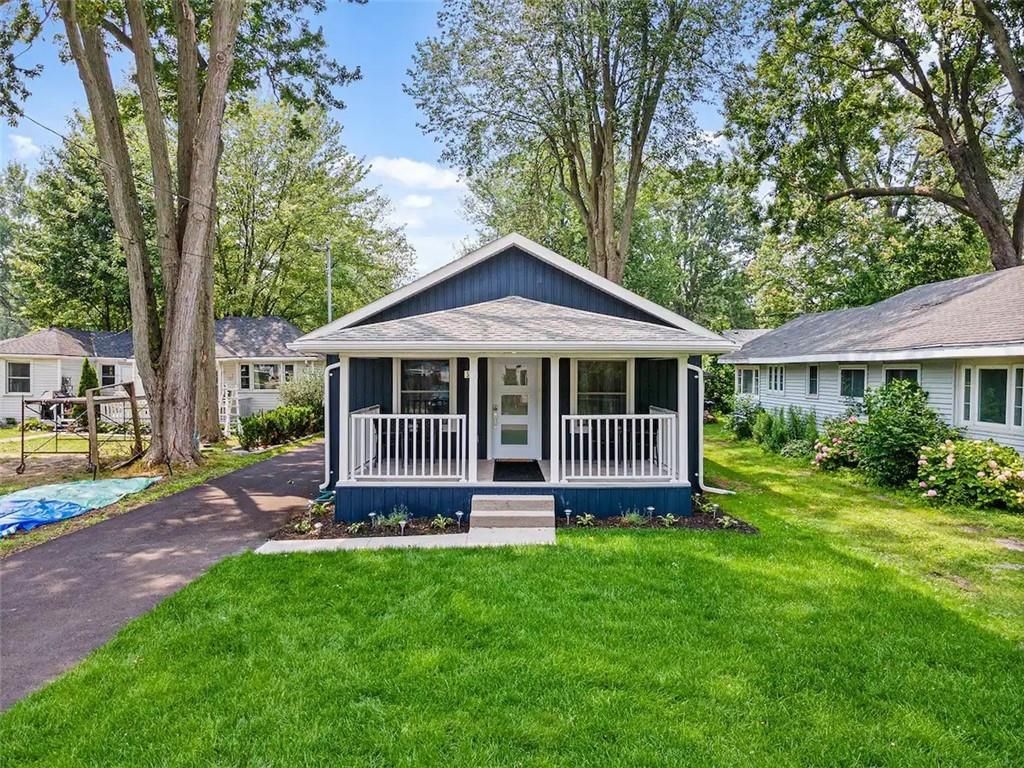 Escape to your dream 4-season cottage or home in the highly sought-after Bay Beach area, just a stone's throw from the enchanting Crystal Beach. This stunning 3-bedroom, 2-bathroom bungalow has been lovingly rebuilt, with meticulous attention to every detail, giving you the perfect escape. The transformation was completed between 2020-2021 and includes a brand-new Helical Piles foundation and enchanting interior and exterior upgrades. Outside, you'll be welcomed by an inviting 10'x18' front porch adorned with 24""x24"" tiles. Inside, the living room, hallway, and kitchen boast stylish shiplap ceilings, crowned with tasteful crown molding that gracefully extends throughout the living room and hallway. The interior doors, crafted from solid wood, add a touch of rustic charm, elevating to pure luxury. Designer Riobel plumbing fixtures ensure that every aspect of your home exudes quality and sophistication. The gourmet kitchen is the heart of this escape, perfect for entertaining.**** EXTRAS **** It features a one-of-a-kind oversized live edge epoxy island, quartz countertops, stainless steel appliances, and recessed lighting, ensuring your culinary adventures are as delightful as your beach days