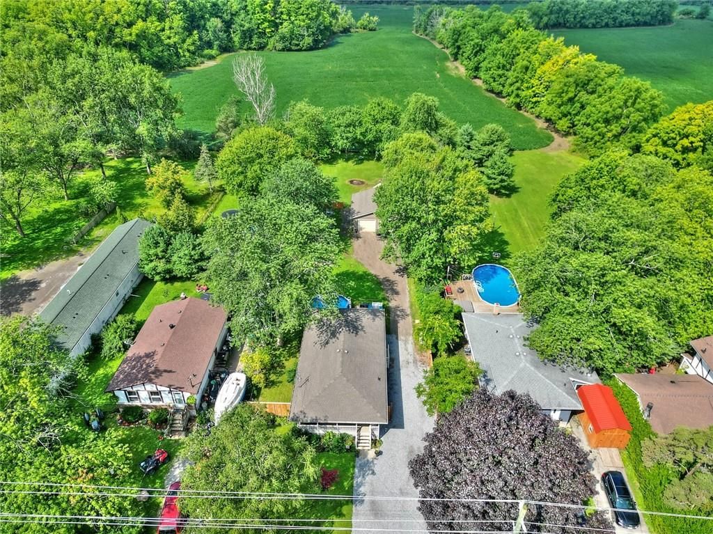 Located on a massive 60ft x 290ft lot, this 3–bedroom, well maintained home has updated features and finishes. The main level features hardwood flooring throughout, an expansive kitchen island with a 4-seat breakfast bar and spacious open concept living area with fireplace. Also located on the main floor are 2 bedrooms and a 4-piece bathroom with a tiled shower giving the home a more modern feel. The basement level includes a rec room area, fitness room, 4pc bathroom and a laundry room that is also a utility and storage area. Outside there is plenty of room for relaxing and entertaining on the expansive front porch or in the massive backyard with above ground pool, patio, fire pit area beyond the fence and mature trees. Beyond the property line are more trees and a farmer's field without rear neighbours. The detached heated double-car garage is well suited for a workshop or extra storage of machines and toys. Centrally located to Downtown Ridgeway and Crystal Beach’s restaurants, shops