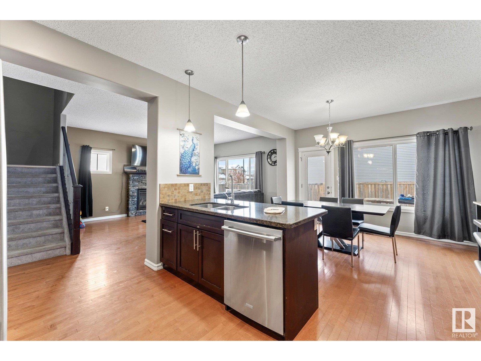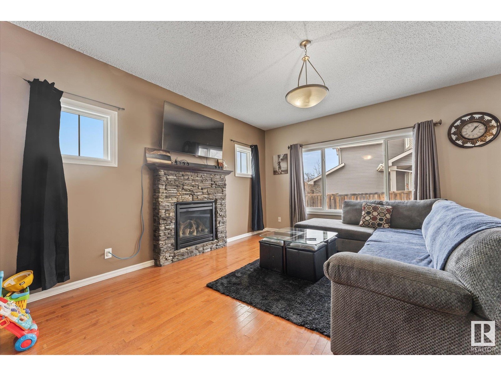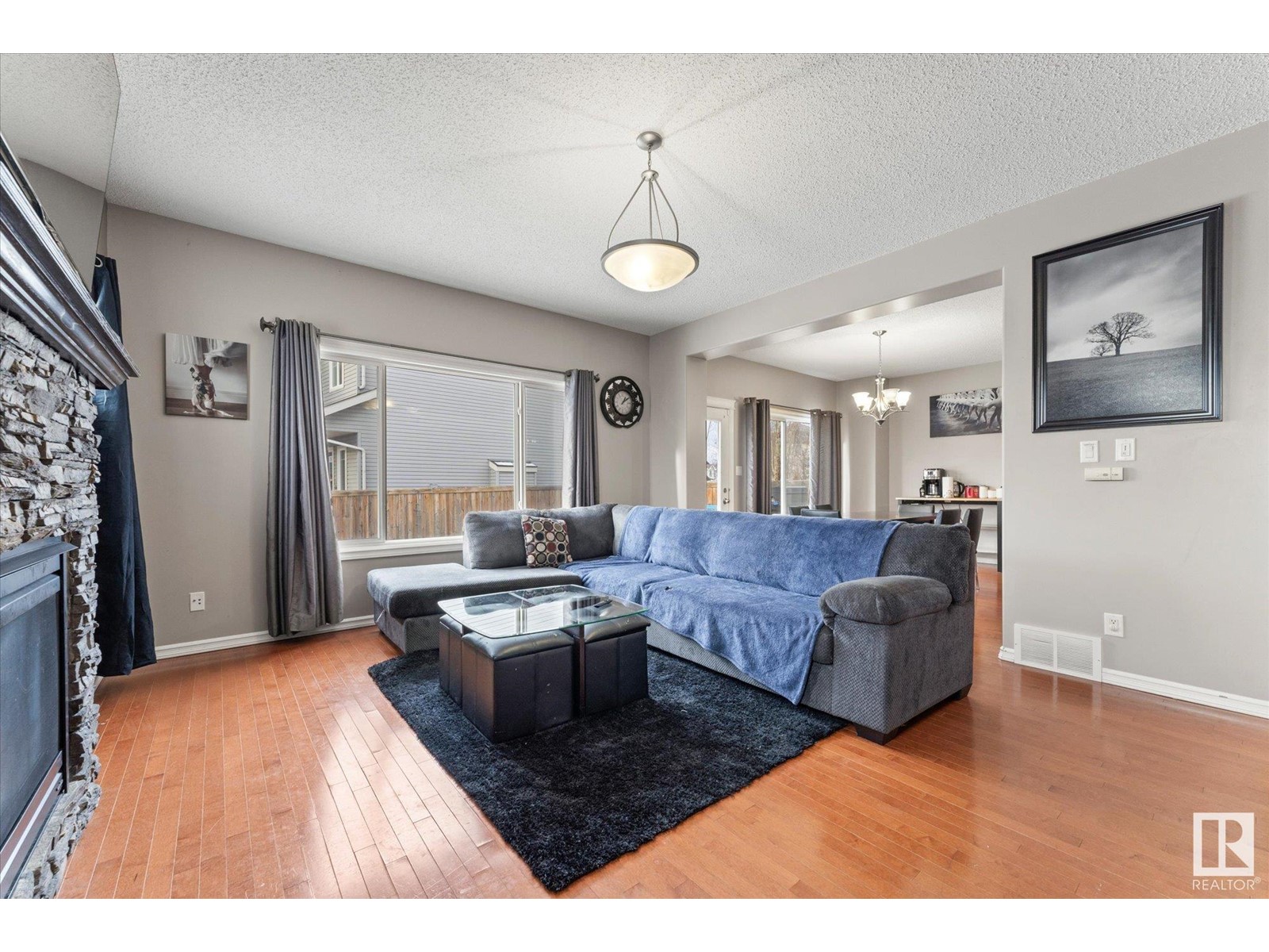 Welcome to this 2115 sq ft home on a coveted corner lot in the South Fort neighbourhood of Fort Saskatchewan. An inviting entrance welcomes you to a versatile den, leading down the hall the kitchen with granite countertops, stainless steel appliances, and a walk-through pantry. The expansive dining area and family room with a fireplace create an inviting space, complemented by hardwood flooring throughout. The main floor laundry area leads to the double car attached garage. Upstairs, you will find four spacious bedrooms, including a master retreat with a walk-in closet and ensuite with a corner tub. The fourth bedroom can double as a flexible bonus room. The unfinished basement invites your personalized touch, and the large backyard ensures outdoor enjoyment. With a new roof providing peace of mind, this home is ready to welcome your family. Plus this home is right around the corner from shopping, schools, trails, and more. Don't miss the chance to make it yours. (id:22211)