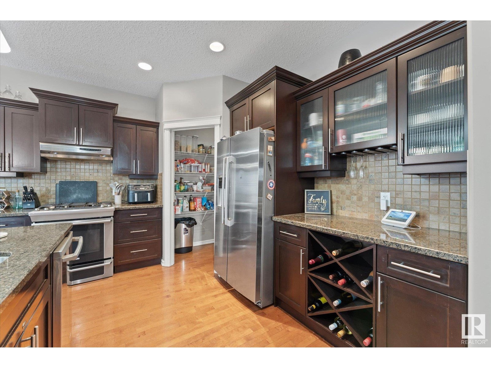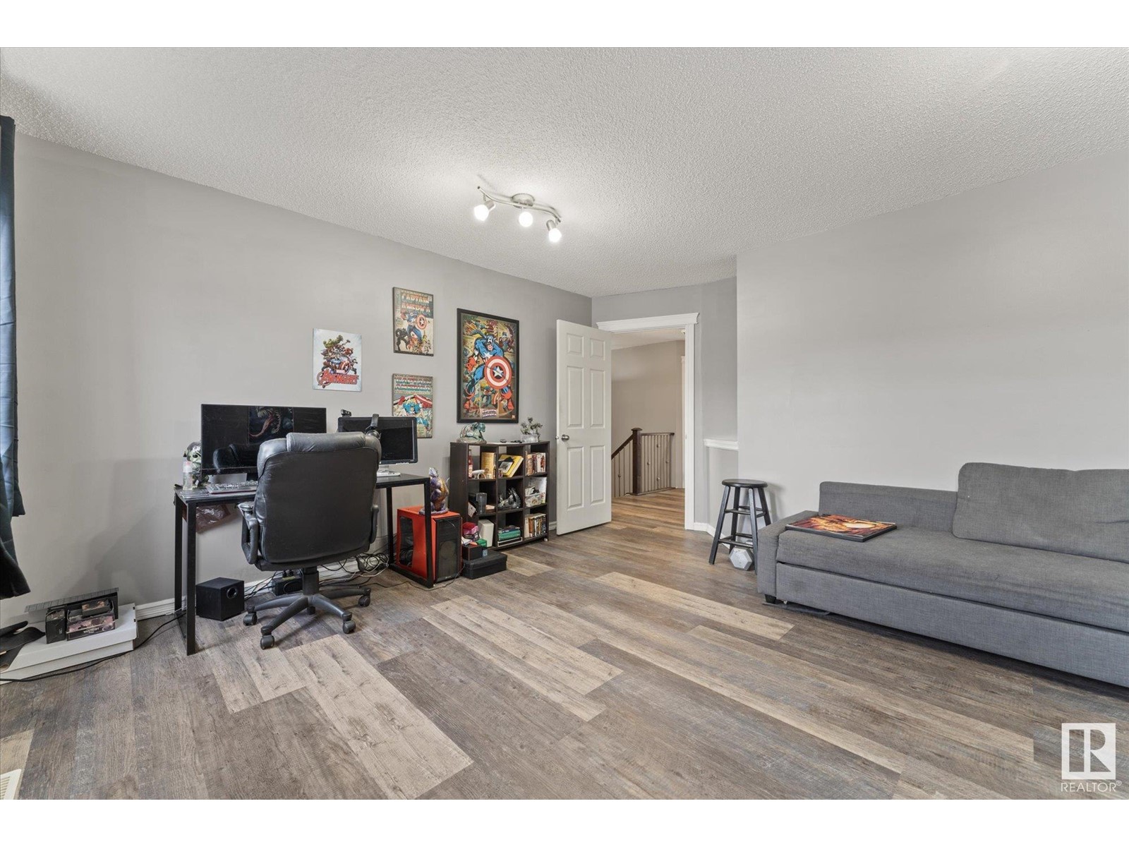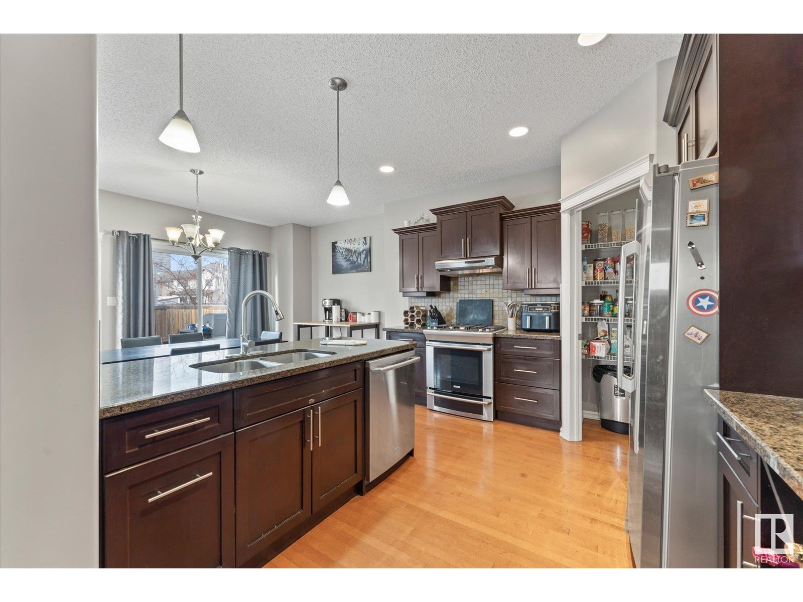 Welcome to this 2115 sq ft home on a coveted corner lot in the South Fort neighbourhood of Fort Saskatchewan. An inviting entrance welcomes you to a versatile den, leading down the hall the kitchen with granite countertops, stainless steel appliances, and a walk-through pantry. The expansive dining area and family room with a fireplace create an inviting space, complemented by hardwood flooring throughout. The main floor laundry area leads to the double car attached garage. Upstairs, you will find four spacious bedrooms, including a master retreat with a walk-in closet and ensuite with a corner tub. The fourth bedroom can double as a flexible bonus room. The unfinished basement invites your personalized touch, and the large backyard ensures outdoor enjoyment. With a new roof providing peace of mind, this home is ready to welcome your family. Plus this home is right around the corner from shopping, schools, trails, and more. Don't miss the chance to make it yours. (id:22211)