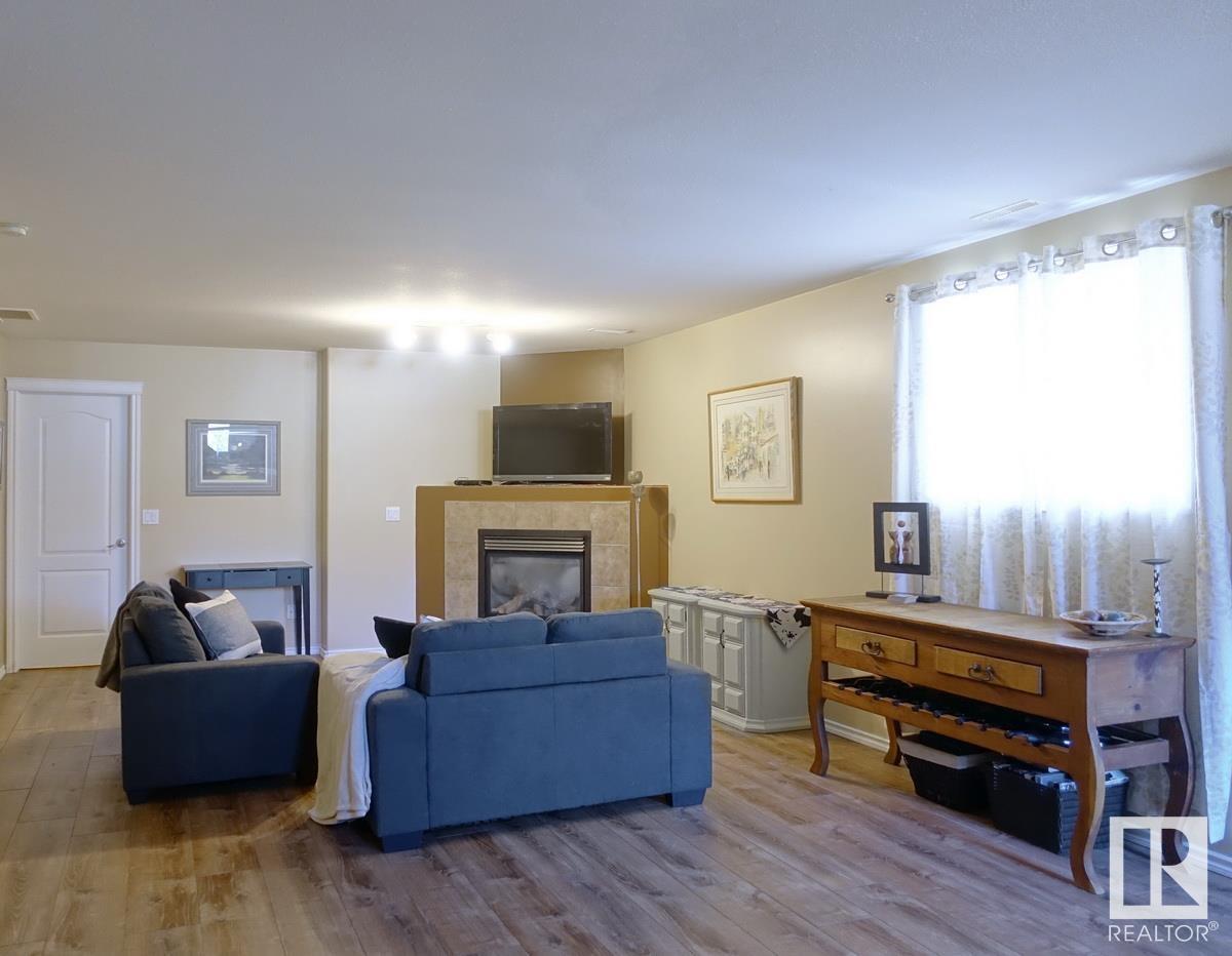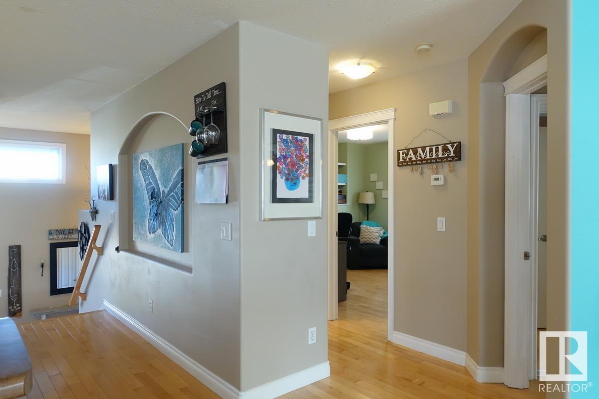 This bright & spacious home is a great place to entertain friends & family with a fully finished basement for over 2200 sf of living space with 2+2 bedrooms & 3 full baths. The open concept features a huge kitchen with lots of counter space & storage, eating bar island, corner pantry + a second eating bar next to the large dining area. The living room has big windows for natural light, maple hardwood floors. The main bedroom suite has a walk-in closet and freshly reno'd bathroom. A 2nd bedroom & 4 pc bathroom round out the main floor. The open front entrance is big & bright & leads to the mudroom & large laundry room. The fully finished basement has a huge recroom with a corner gas fireplace, 2 spacious bedrooms & 3rd full bathroom. Roughed-in in-floor heat & lots of storage. The South-facing backyard has a private deck, shed and fire-pit area. Heated double garage. Well kept, quiet location, conveniently close to shopping, playground / spray park, the extensive trail system + easy access to Hwy 15 & 21. (id:22211)