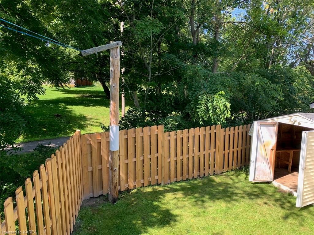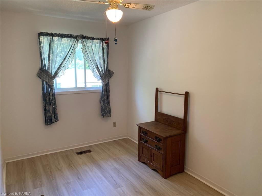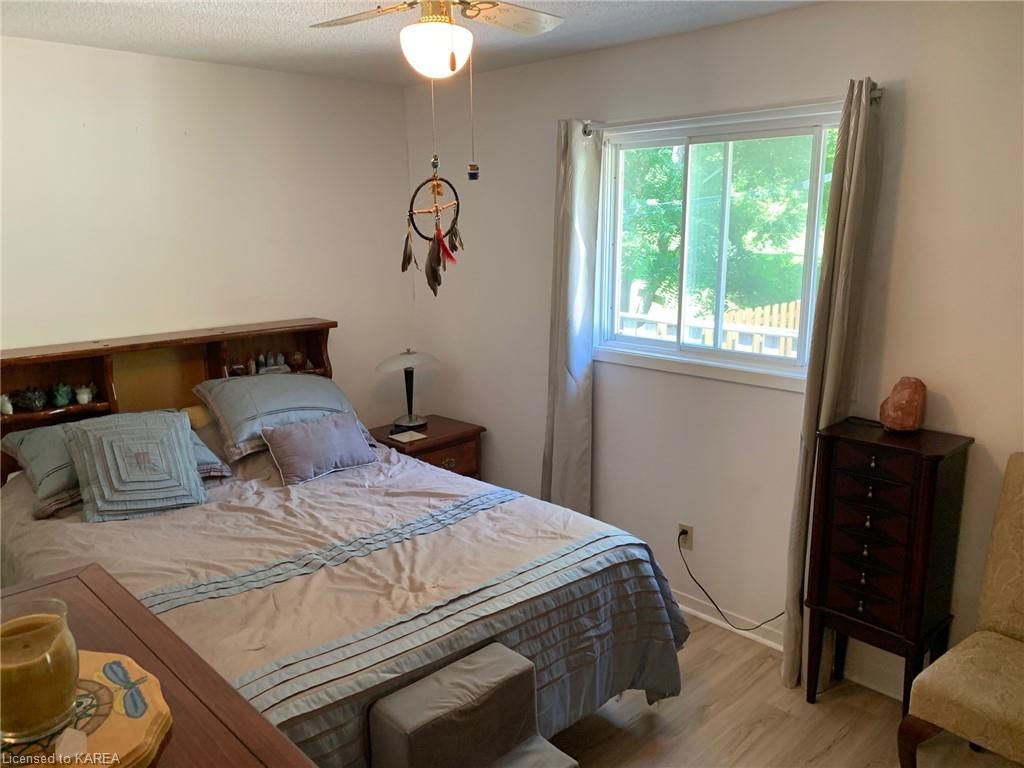 Very popular but hard to find in this market is this 3+1 bedroom semi detached bungalow with open concept design and an abundance of natural light. The main level offers new laminate flooring with a living/dining room combination, an eat-in kitchen, 3 bedrooms and the main bath. The finished lower level houses another bathroom, a 4th bedroom and large rec room. The lower level would certainly work for an in-law suite if needed as plumbing for a kitchenette has been installed. The utility room houses the laundry, the gas furnace and gas hot water tank, HRV, and tons of storage. Central air to keep you cool in the summer months. Outside you will find a newly fenced rear yard, large deck, clothesline and storage shed. Backing directly onto nature trails and lovely walks and hikes. Double wide paved drive will comfortably hold 4 cars. Walking distance to schools, Gananoque's downtown amenities, and the beautiful waterfront.