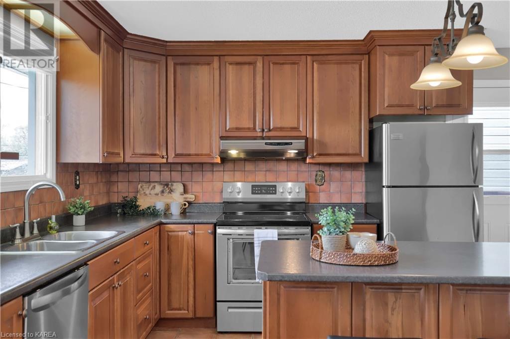 Overlooking the Gananoque River is this well-maintained elevated bungalow - perfect for anyone looking to add to their investment portfolio or live upstairs and rent the lower unit for additional income. Located just off the highway and only a few minute walk to historic downtown Gananoque, only adds to the appeal of this already enticing home. Upstairs consists of 3 large bedrooms, updated kitchen, living room and basement storage. Downstairs consists of separate entrance, 2 bedrooms, kitchen, living room and a ton of light. Two separate driveways, 2 electrical meters, large front and back yards, schools within walking distance, and walking trails nearby... what more could you ask for? Whether you have a large family or are looking for an income opportunity, you don't want to miss out on this truly unique property! (id:22211)