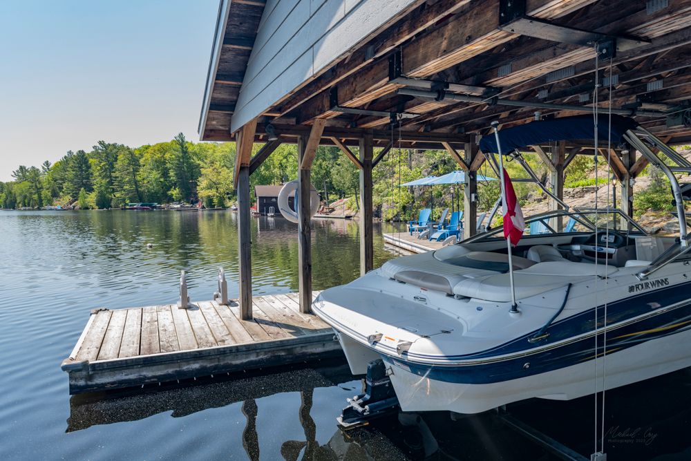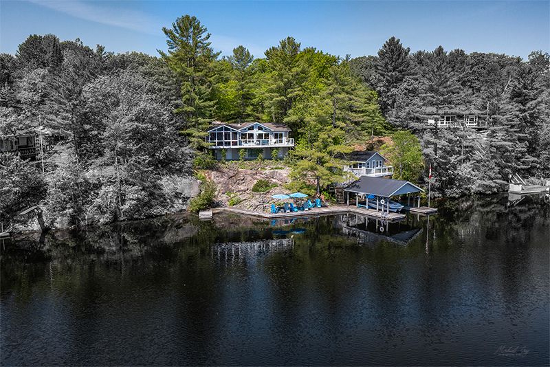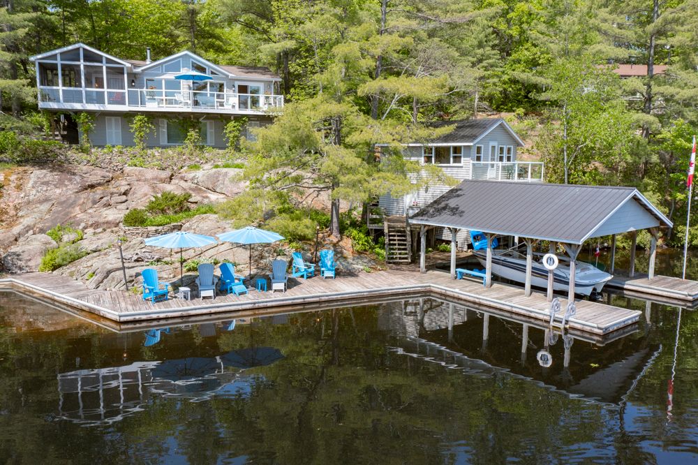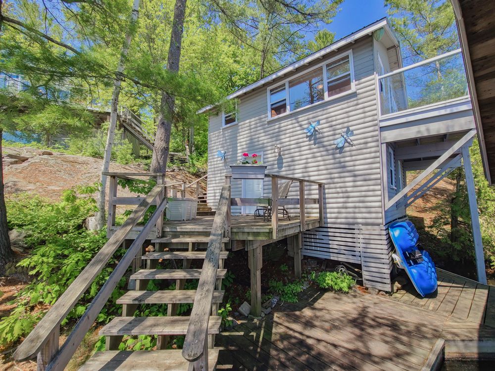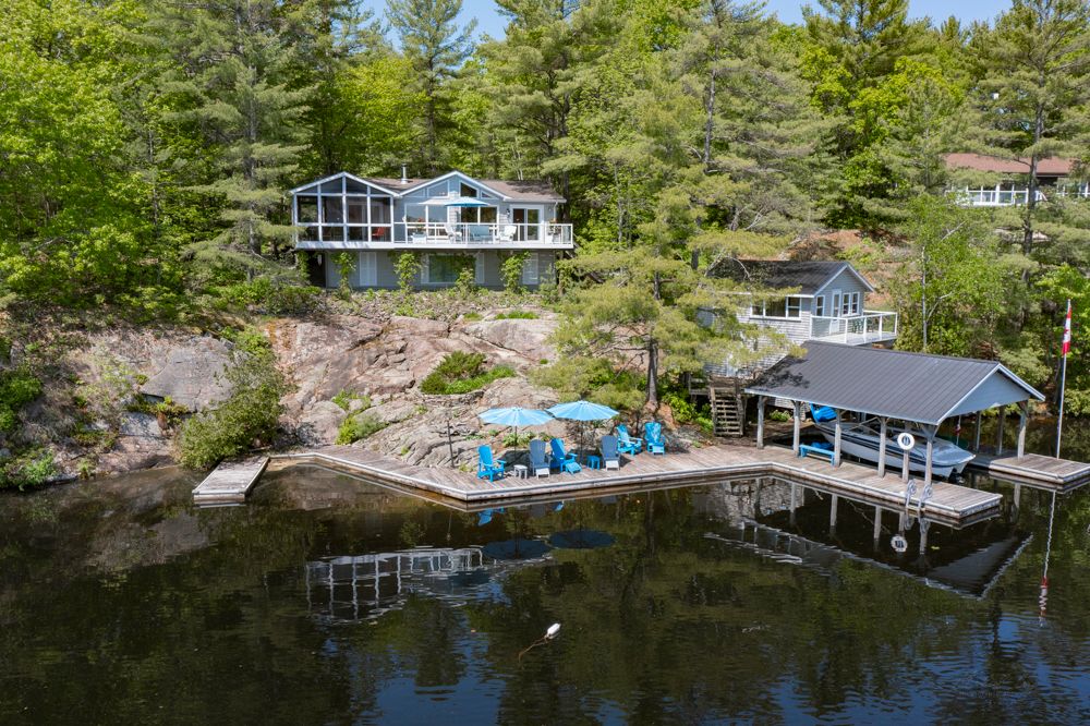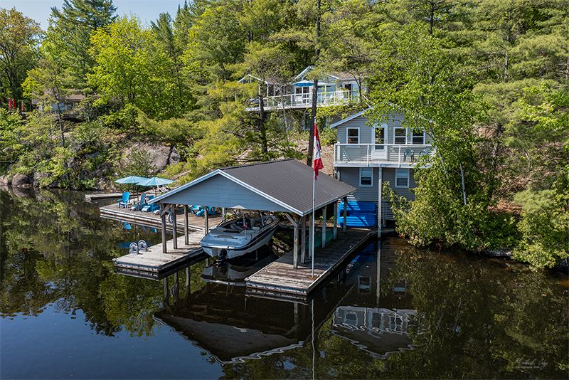 LITTLE GO HOME BAY OF GLOUCESTER POOL - OH WHAT A VIEW and The Walls are Western Red Cedar.... 'Oh, What a Smell'. It is an Original Panabode Design Build The 4 Seasons Cottage Guest Cabin Grandfathered Living Quarters Above a Dry Boathouse Waterside. Private Road Access Cottage/Home with 190ft of Waterfront. ***THE DETAILS*** 4 Bedroom Cottage + 2 Baths+ 1 Bedroom Guest Cabin & 3 pc Bath. Main Cottage w/Open Concept Great Rm/Living Room Area all Walking out to Large Primary Deck Area w/Great Privacy. A Covered Boat Port w/ Lift and an Amazing Dock & Waterside Entertainment Area. Screened in Muskoka Rm on the right of the Cottage Deck also w/Access directly from The Primary Bedrm. Second, Large, Private Decking Area off the Family/Dining Area. Walk In/Out Lower Level Providing Great Storage. This Property has a Self-Contained Guest Cabin at The Water’s Edge with Living Quarters including Great Room and Dining area, plus its Own Private Deck out Front. Deep, Clear Water Off The Dock.***MORE INFO***This is a Boaters Paradise just off The Trent Severn Waterway. Big Chute Marine Railway Lock 44 & Port Severn Lock 45 & The Water Levels are Maintained for a Consistent Level Every Day of The Year w/Access to Georgian Bay.