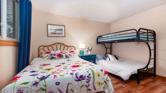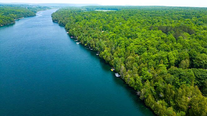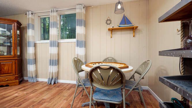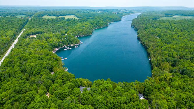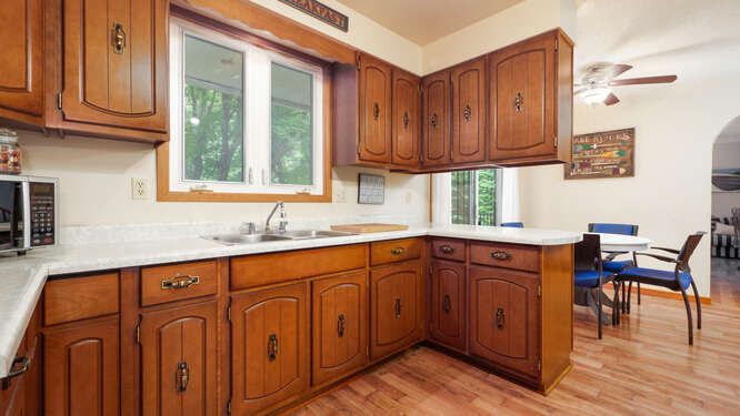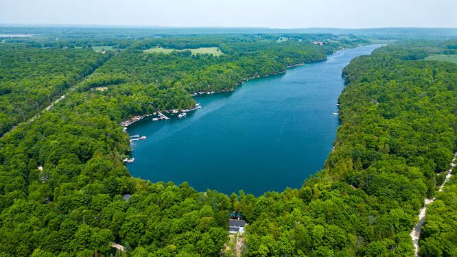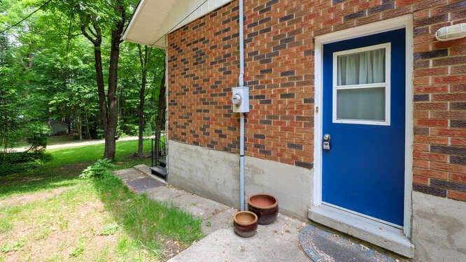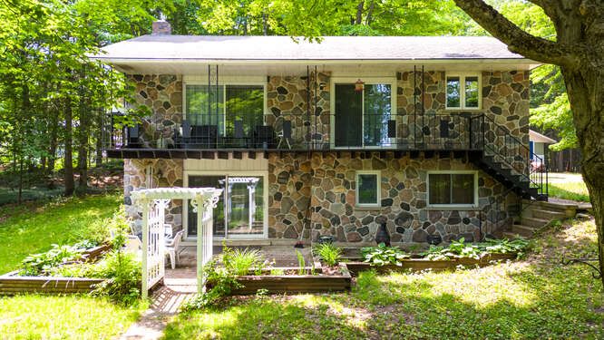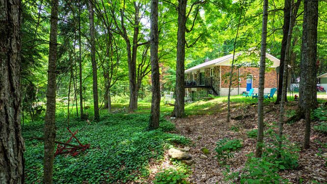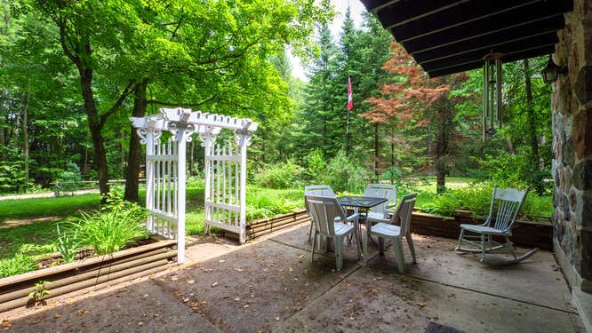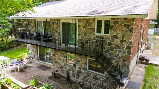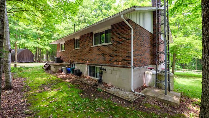 Private Oasis steps from Bass Lake. 3 Bed, 2 Bath. 1700 sq ft liv. Double wide lot.Stone Firplace in large family room. Bathrooms renovated. Furnace and AC are new. Centennial windows. Balcony overlooking property. Extra room for a bunkie beside massive garage. 10 minutes from Wiarton, 12 minutes from Cobble Beach, 20 minutes from Owen Sound and steps away from the Bruce Trail