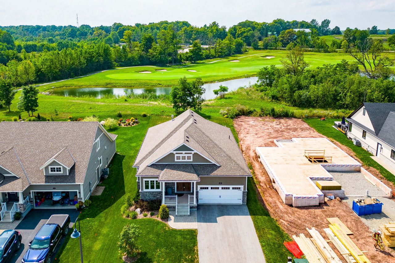 Welcome to Cobble Beach & this stunning 1,715 sq ft Bungalow on a 60 x 131 ft lot backing on to the 12th hole of this extraordinary Golf Course. This 4 year old open concept Providence model is done to perfection w/ approx $180,000 worth of upgrades, evident as soon as your enter the home. The Great room w/ elegant 2 storey coffered ceiling & floor to ceiling stone fireplace is very bright & is centred on the beautiful view of the golf course and surrounding green space. The chefs kitchen is an entertainers dream w/ high end appliances (built in), quartz counters, multiple pantries, oversized island & so much more. The main floor Master suite boasts 9ft coffered ceilings, a walkout to the rear patio, & a large walk-in closet, along w/ additional his & hers closets offering so much great storage. The spa like ensuite is spacious w/ glass enclosed walk in shower, & oversized vanity. Rounding out the main floor is a den/office which could also be used as second bedroom.Outside this property is fully landscaped with irrigation, natural gas fire pit, and large interlocking stone patio where you can enjoy a glass of wine