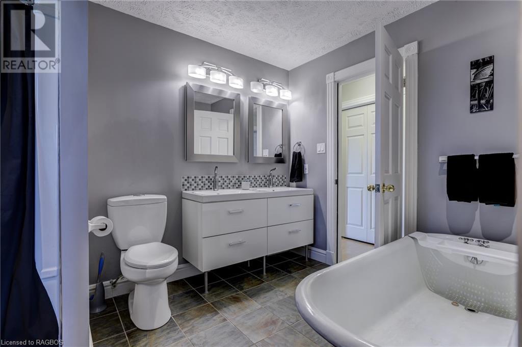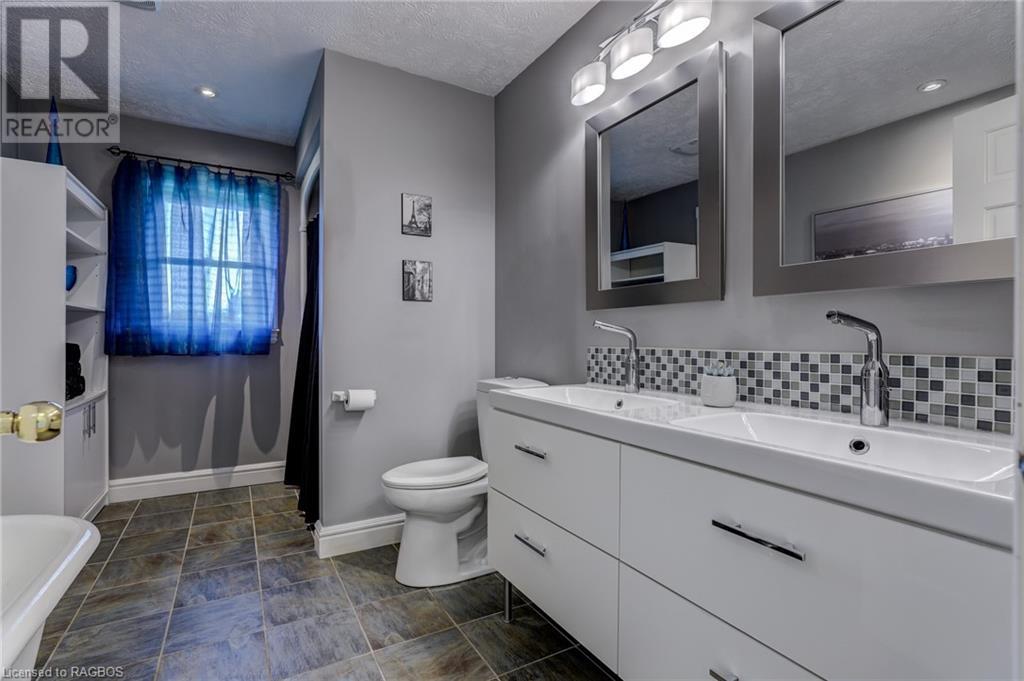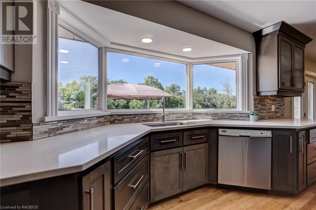 *new roof will be included. This incredibly spacious side split is just minutes to the city, located in a peaceful country setting where homes rarely come on the market. Situated on 2 acres, this 4 bedroom, 3 bathroom custom build has over 3300 square feet of finished space for the whole family. As you drive up you will immediately fall in love with the curb appeal, perennial gardens and a spacious laneway leading up to the two car garage. When you enter from the covered porch you are met with a stylish and comfortable interior, that flows through the bright and spacious floor plan. The formal family room with wood fireplace flows into the dining area and the beautifully renovated kitchen. Complete with high end finishes including custom maple floor to ceiling cabinetry, stunning silk stone countertops, stainless steel appliances, large island and a stunning panoramic view of the backyard. Further on the main floor you have a convenient updated powder room, mudroom space located just off the entrance to the garage, and access to a bonus feature, the loft space perfect for a studio, play room or extra space for guests. Heading up to the second level you will find 4 incredibly spacious bedrooms including a primary suite connected to the 5 piece bath, complete with luxurious soaker tub and double vanity. heading down to the lower level rec room you will find the heart of the home, a perfect place for enjoying movies, games and family time with walk-out access to the backyard. Completing this level we have an additional three piece bath, flex space for an office, studio or den and access to a full height unfinished space for storage or a workshop. Any great home deserves a well thought out and spacious exterior and this property does not disappoint, with the multi level deck space, stamped concrete patio, gardens and pond. With lots of lawn space and views of the wooded area this is the perfect backyard for summer living! (id:22211)