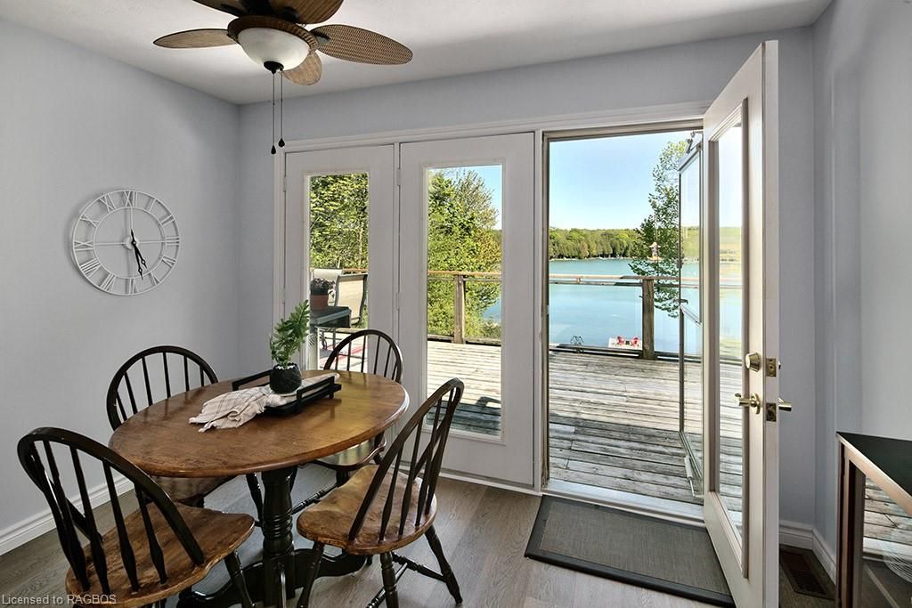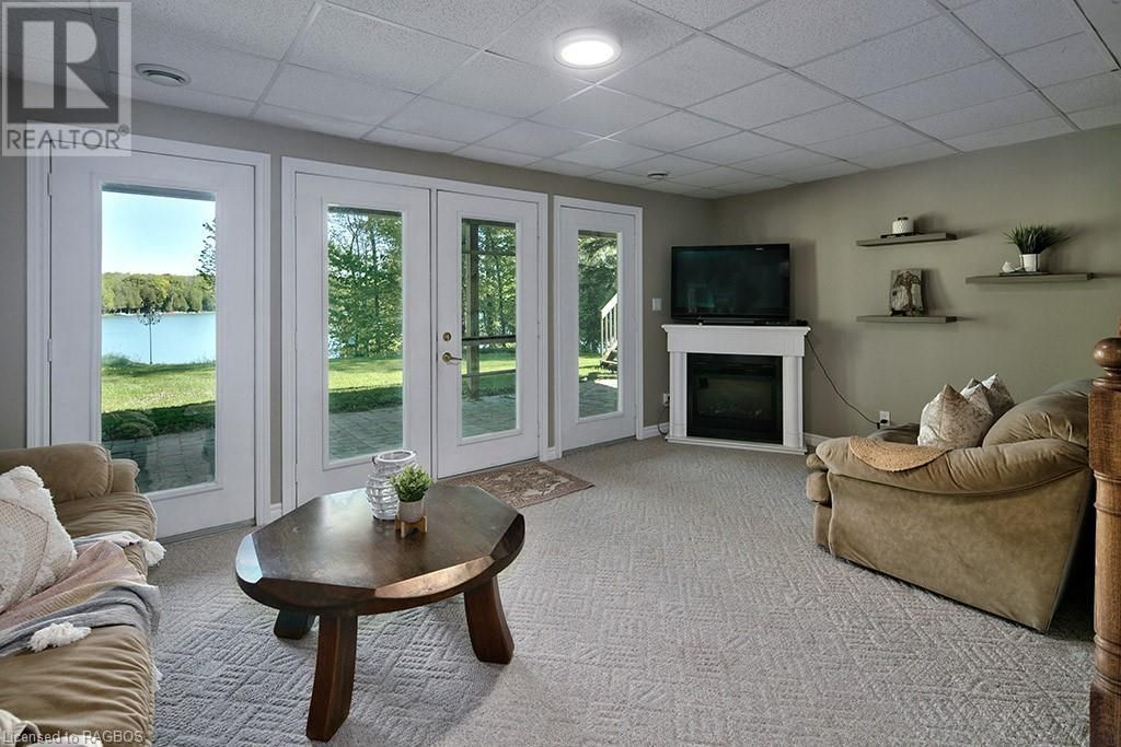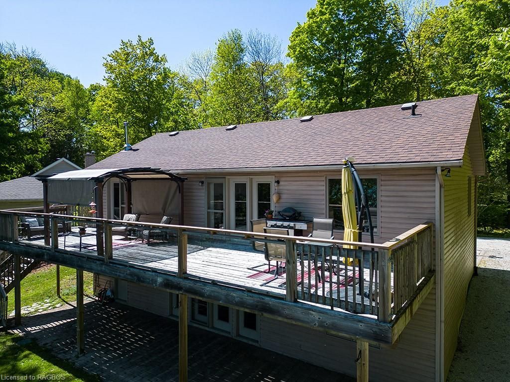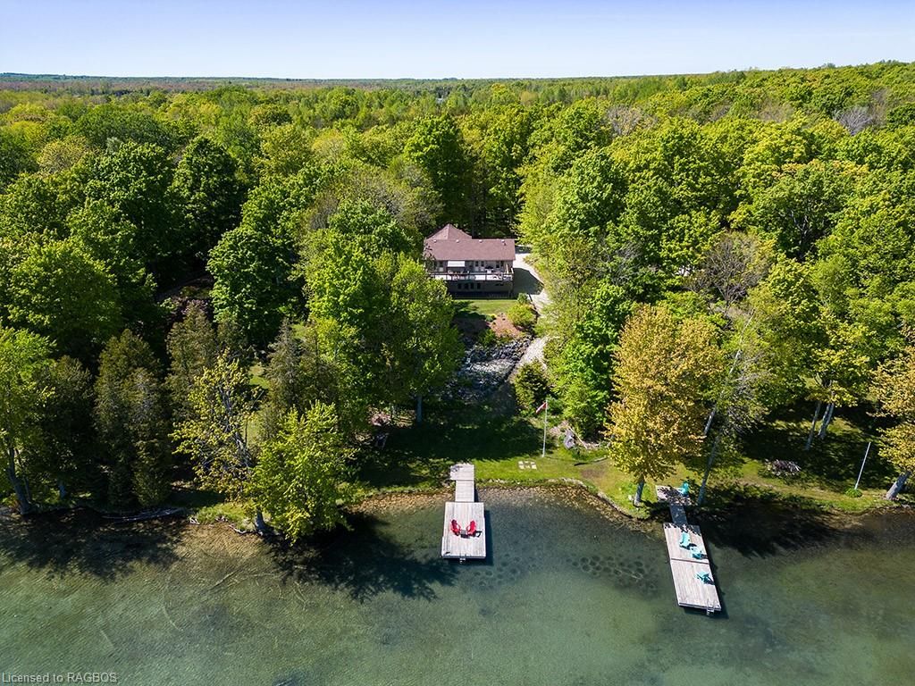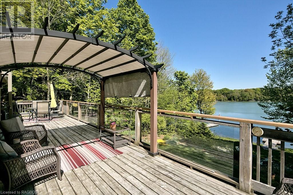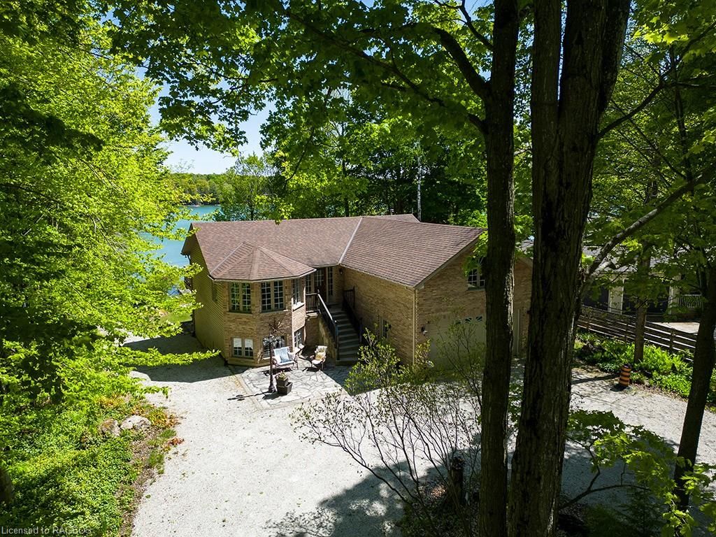 This 3 bedroom, 3 bathroom. custom built, brick 2 storey with a walk out, over looks the lake and offers a great home or exceptional cottage! Ample room to entertain on the massive 12 x 43 ft deck, or the fire pit level, or down at the water. Inside offers great space with large rooms and multiple living/ rec rooms. Drive up the private dead end road to the circular driveway, where you will see the 2 car attached garage and the commanding staircase up to main level.Grey Road 170. to Big Rock Road, go as far as you can and turn right, follow to 296 on your left. **INTERBOARD LISTING: GREY BRUCE OWEN SOUND R. E. ASSOC**